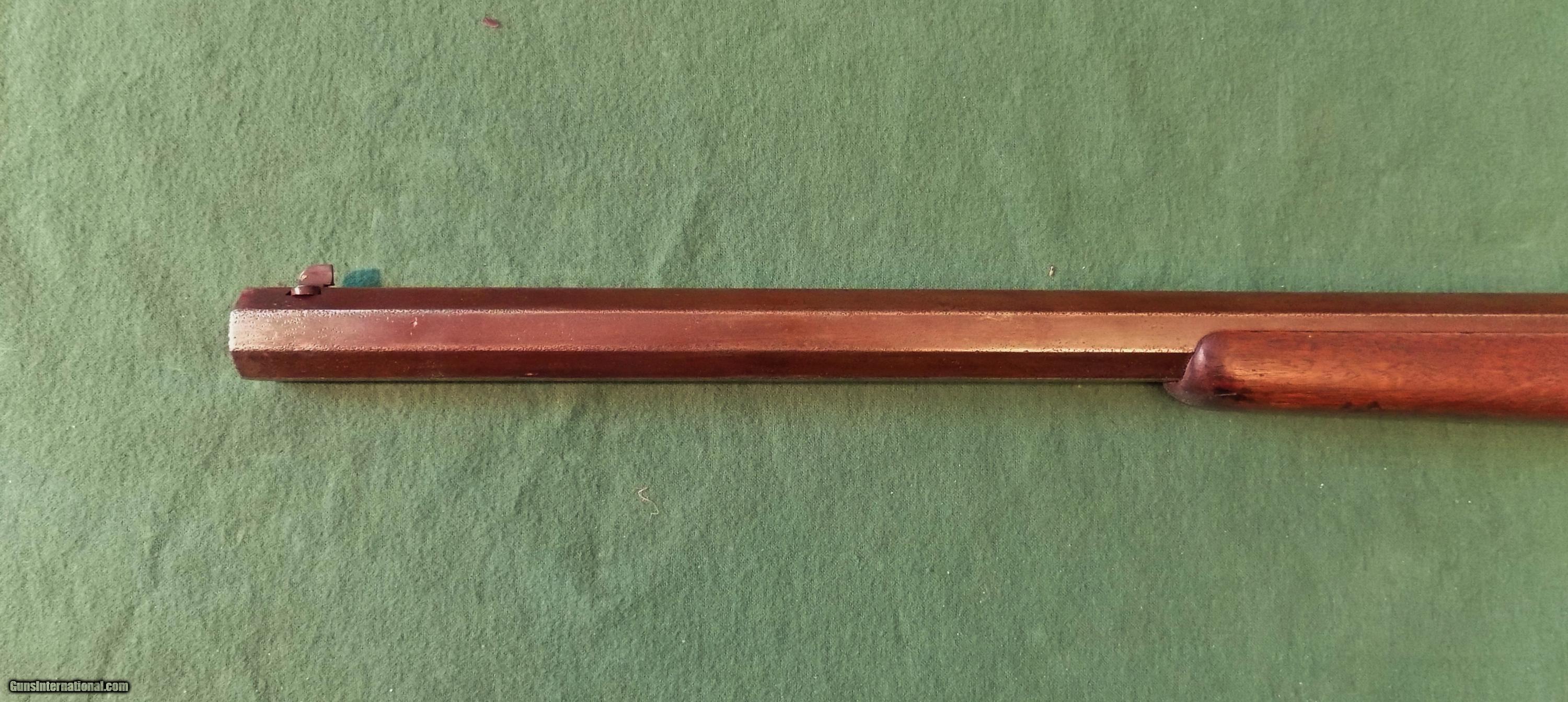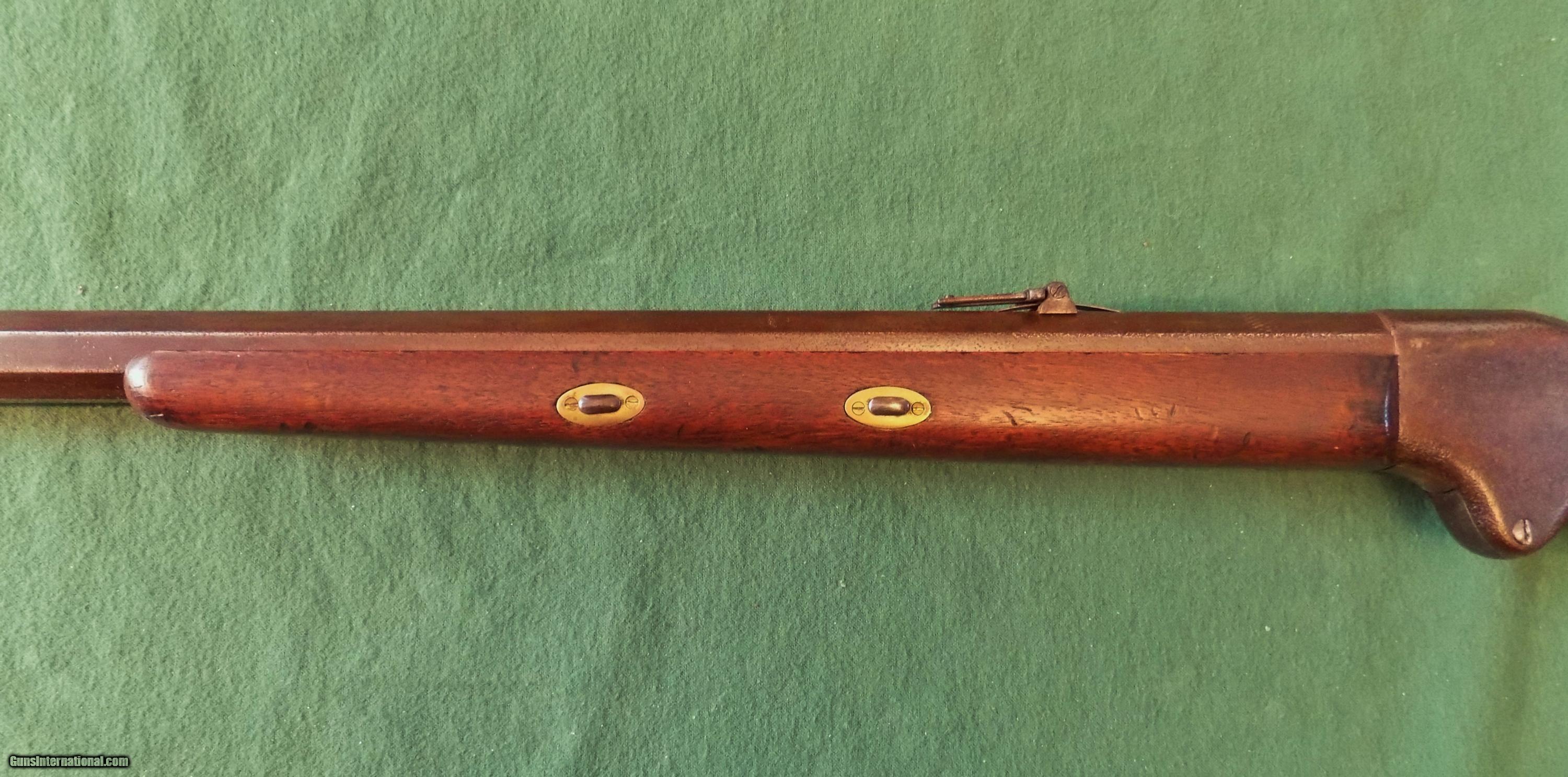 Description: Spencer "Buffalo" rifle, sn 60391, caliber 52-56. Heavy octagon barrel, 29 1/2" in length, 1 1/8" across flats. Stamped J. P. Gemmer, who worked for the Hawken Brothers in St. Louis and eventually bought the company. It has the typical two wedge key forearm found on the heavy caliber Hawkens. Very good bore, of the many Spencers I've owned, this one is the most accurate. Centerfire conversion and cartridges available. Spencer and Sharps rifles were the main rifles used in the bison killings. I would love to know this rifle's history. SOLD Antique: Yes |