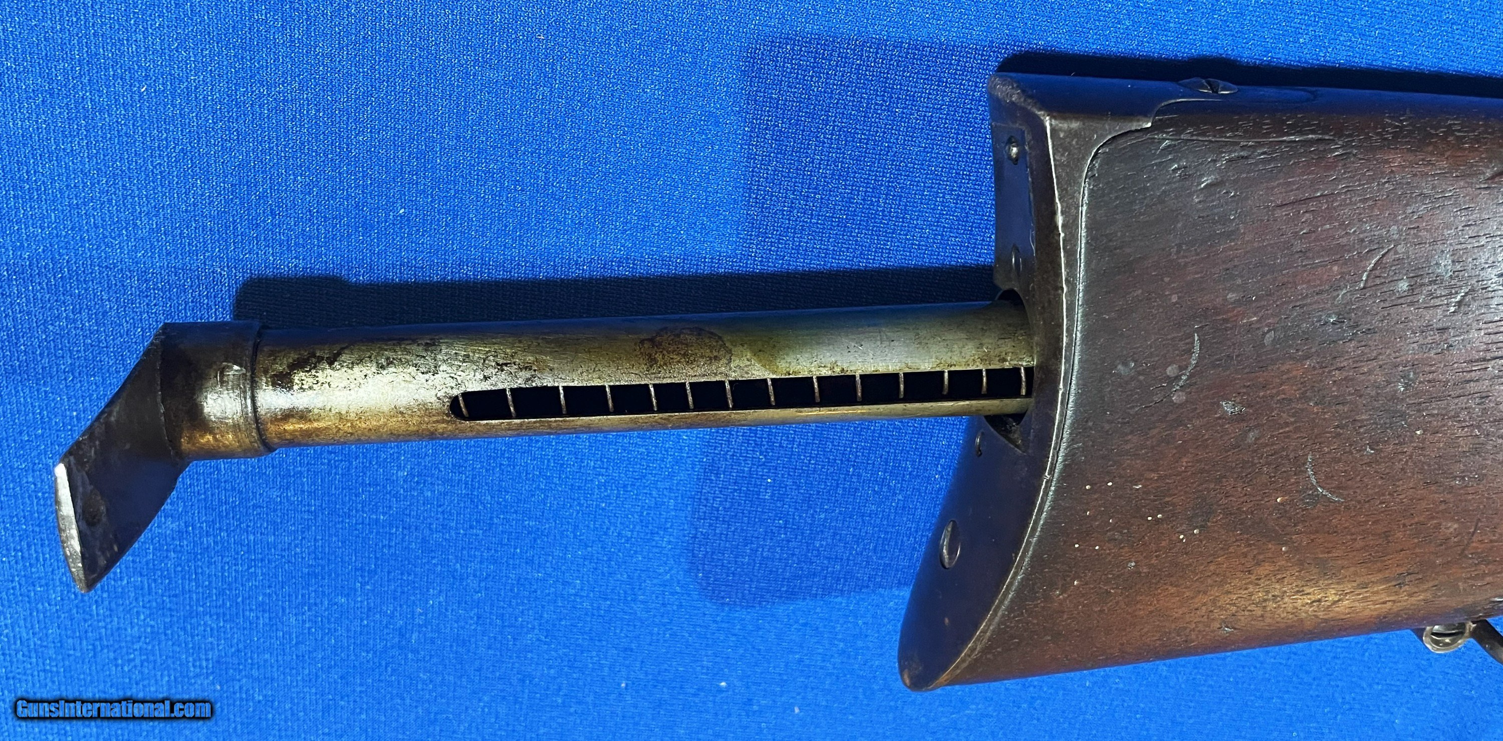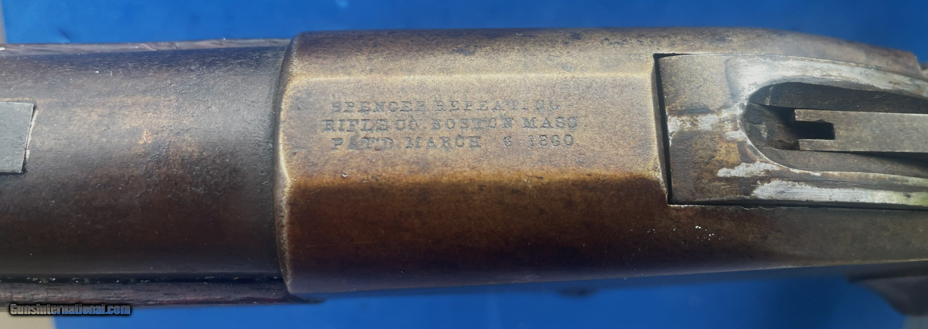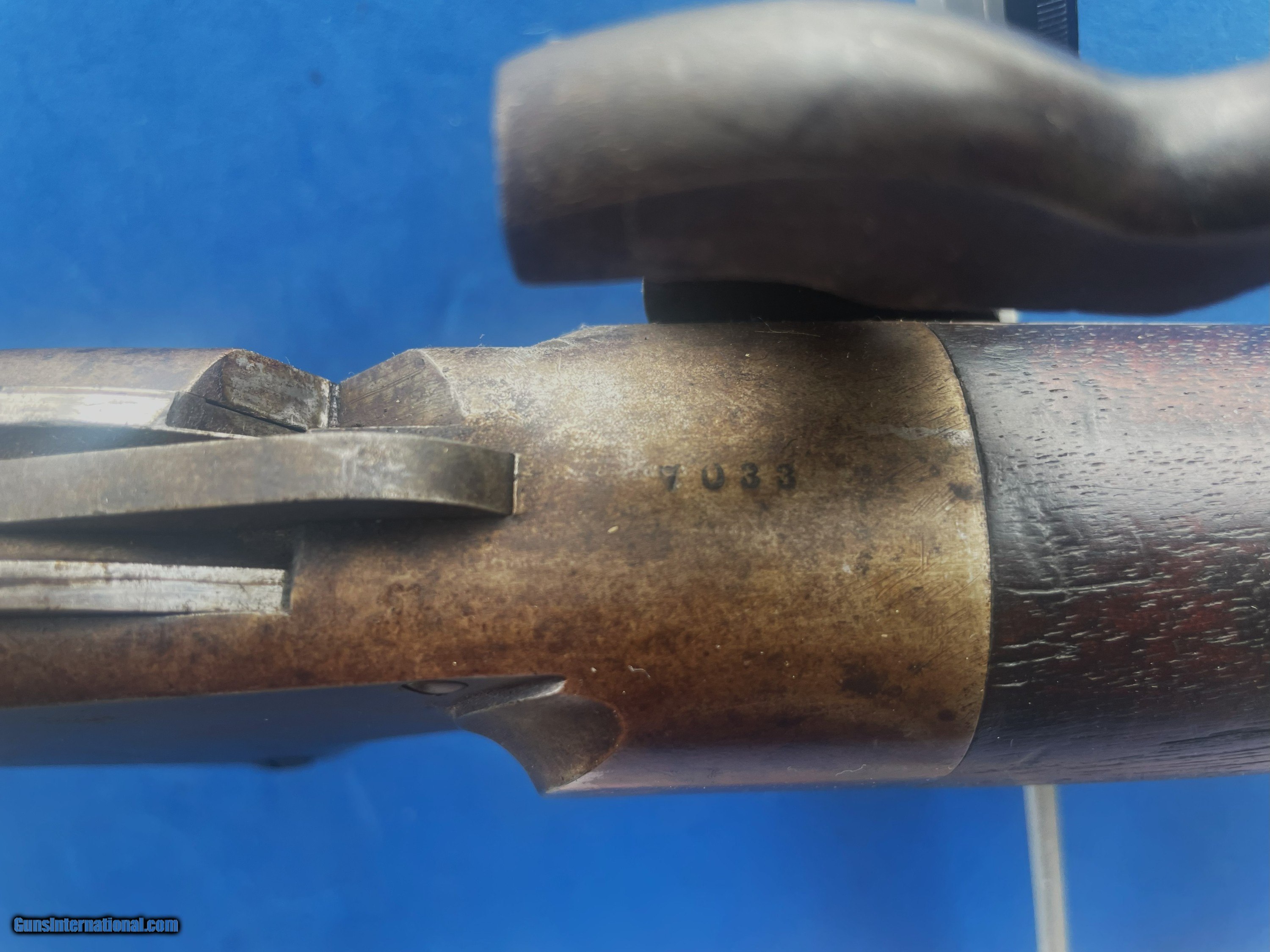 Description: ANTIQUE SPENCER REPEATING RIFLE Co. MILITARY RIFLE MADE IN BOSTON, MA . ABOUT 47" WITH 30" .52 CALIBER BARREL, VERY GOOD BORE, STRONG RIFLING, SCATTERED LIGHT AND SOME MODERATE PITTING. METAL SURFACES HAVE ORIGINAL FINISH THAT HAS AGED TO A SMOOTH BROWNISH COLOR SHOWING SCATTERED FRECKLING. WALNUT STOCK & FOREND RATE VERY GOOD PLUS HAVING ORIGINAL FINISH AND ONLY A COUPLE BRUISES WORTH MENTIONING ( PIC 8, 16 ) ACTION IS CRISP & TIGHT WITH 2 CLICK HAMMER. A VERY HONEST UNTOUCHED RIFLE, AS FOUND & PICTURED IN OLD TIME NEW ENGLAND ACCUMULATION. A VERY NICE ADDITION FOR YOUR COLLECTION & SHOULD BE A GOOD SHOOTER IF WANTED. TAKE A LOOK AT MY OTHER LISTINGS IF YOU HAVE TIME. THIS MUST BE SOLD. FAIR SENSIBLE OFFERS WELCOME. SHOP AROUND THIS IS A VERY FAIRLY PRICED RIFLE CONSIDERING CONDITION. QUESTIONS ? JUST ASK. $60.00 S&H INSURED FOR $100.00 ADDITIONAL INSURANCE SUGGESTED AT POSTAL RATES. SOLD Antique: Yes Rifle Caliber: .52 Manufacturer: SPENCER Model: RIFLE Serial Number: 7033 Barrel Length: 30 Bore: SCATTERED PITTING Chambers: CLEAR Ejectors: WORKING Condition: VERY GOOD to FINE Metal Condition: AGED ORIGINAL Wood Condition: AS PICTURED Bore Condition: STRONG RIFLING Barrel Type: ROUND Action: VERY GOOD WORKING ORDER Stock: WALNUT Fore End: WALNUT Butt Pad: ORIGINAL Finish: ORIGINAL AGED Sights: ORIGINAL Manufacture Date: CIVIL WAR ERA |