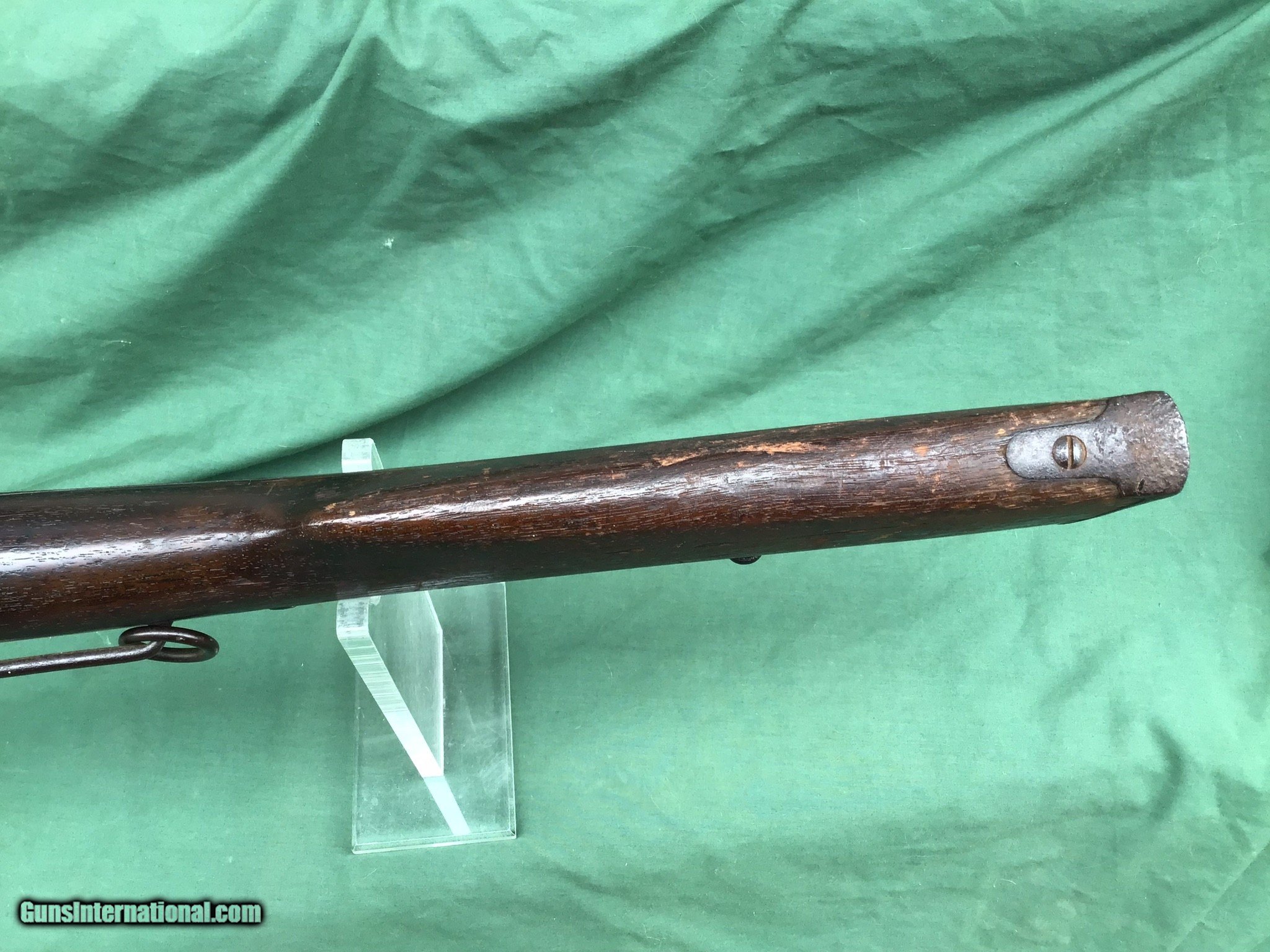 Description: Civil War 1860 Spencer serial # 54213, weighs 8 lbs. 4 oz., and has an overall length of 39”. Carbine has a 22” long round barrel fitted to a two-piece, oiled walnut stock / forend that is in very used condition with dings, dents, chips, cracks, gouges, and missing pieces scattered throughout. Believe it or not the stock has very faint cartouche mark visible. The bore is rough but not as bad as the outside of the guns metal condition. Barrel retains a heavy dark brown finish overall; also has the original folding rear sight and small brass blade front sight (looks like maybe a 1/2 of a coin). The original, steel, tubular loading magazine located in the buttstock is stuck in the stock and is missing the lever. Top flat on the receiver, forward of the hammer, is faded but might reveal the markings if cleaned properly (I wanted to leave this carbine in its original condition). A strongly stamped serial # 54213 on the top of frame behind the hammer. The heavy-style Spencer carbine sling bar and sling ring are tightly attached to the stock’s left side. Remaining metal surfaces of the carbine are again a heavy brown patina. Carbine exhibits crisp, strong mechanics and retains its single sling swivel under the stock near the toe. The story on this carbine is short. It was bought from a lady who received it from her brothers estate after he passed. The brother always told the sister that this carbine was a battlefield pick up but never informed the sister on the exact battlefield. So unfortunately the exact battlefields location was lost when the owner passed away. The one thing I will say is that after studying this carbine for a while it sure looks like it was laying around somewhere for an extended length of time. I wish I had a better story but unfortunately that's all I have. Cavalry regiments who were issued the M1860 Spencer carbine were: 1st Connecticut Cavalry, 1st, 2nd, 4th, 5th, 6th, 7th Michigan Cavalry, 4th US Cavalry, 5th New York Cavalry, 1st New York Veteran Cavalry, 2nd Wisconsin Cavalry, 8th Indiana Cavalry, and the 1st New Jersey Cavalry. Antique and can be shipped directly to your doorsteps. Please feel free to ask questions. SOLD Antique: Yes |