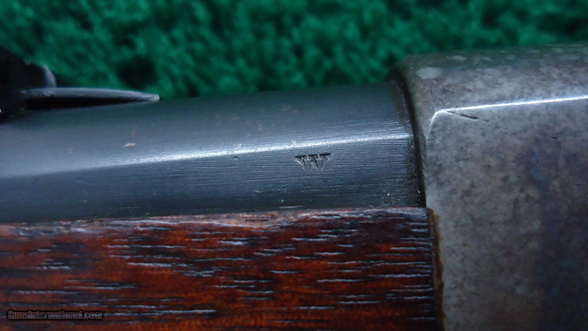 Description: 20 inch round barrel with an excellent bright shiny bore. About 95% original blue the barrel. Original sights. About 90% slightly thinning case color. Smooth action. Original saddle ring. Original sling swivels.Gun is in very nice condition with 2 sharp cartouches and several inspector marks. No splits or cracks. A very clean early number Spencer in the 4k serial range. Very hard to find in this condition. Leroy Merz Antique Firearms specializes in antique and vintage Winchesters and other fine American firearms. Since 1965 Mr. Merz has taken part in the world of firearms and has been a contributor to many well known reference books. We have hundreds of additional guns in every price range at our home online. Search for Merz Antiques in google. SOLD Antique: Yes |