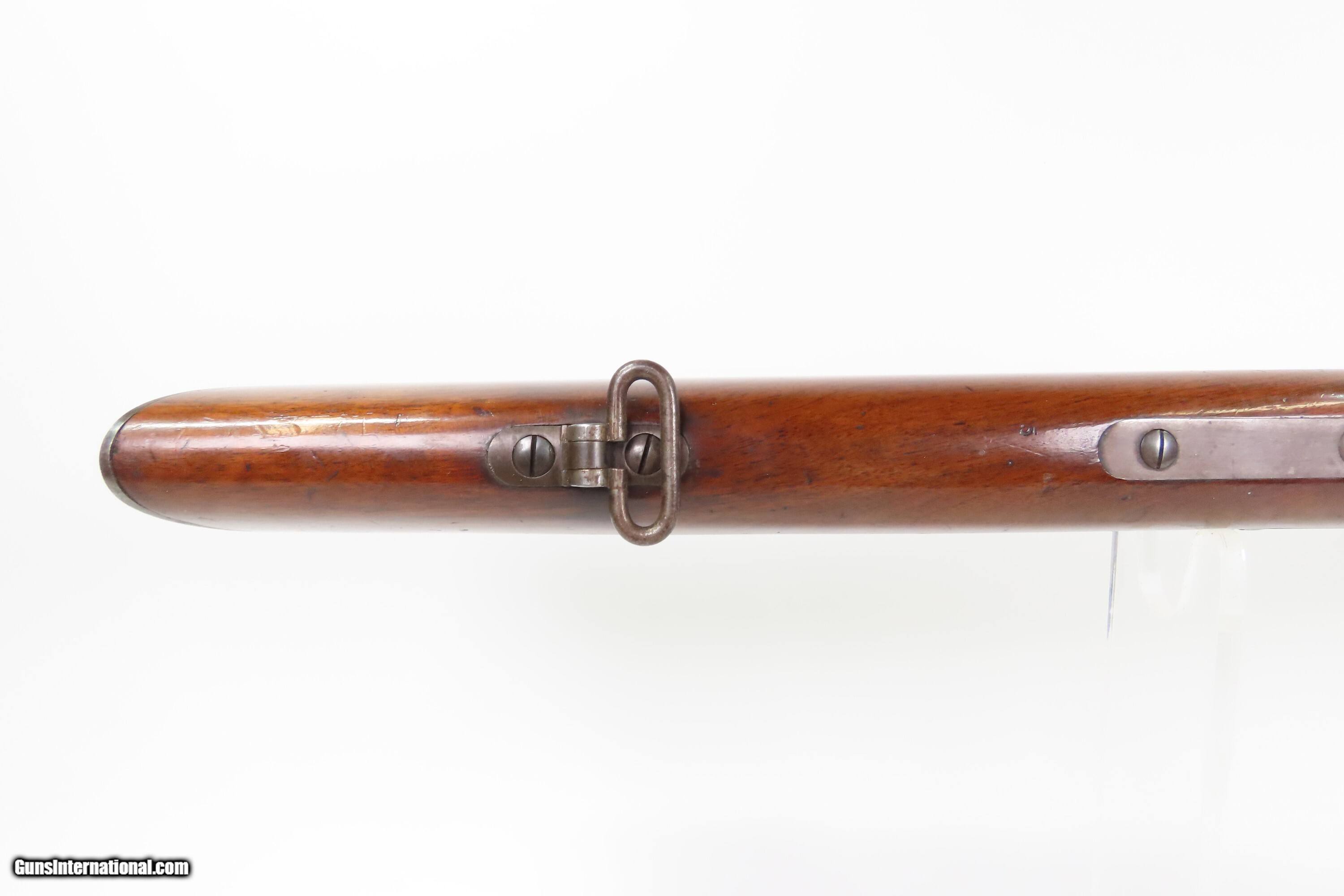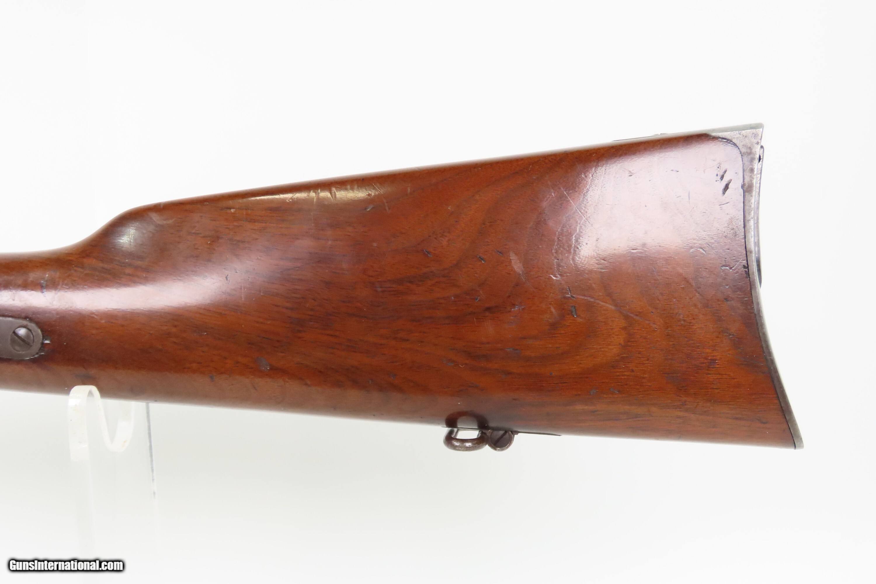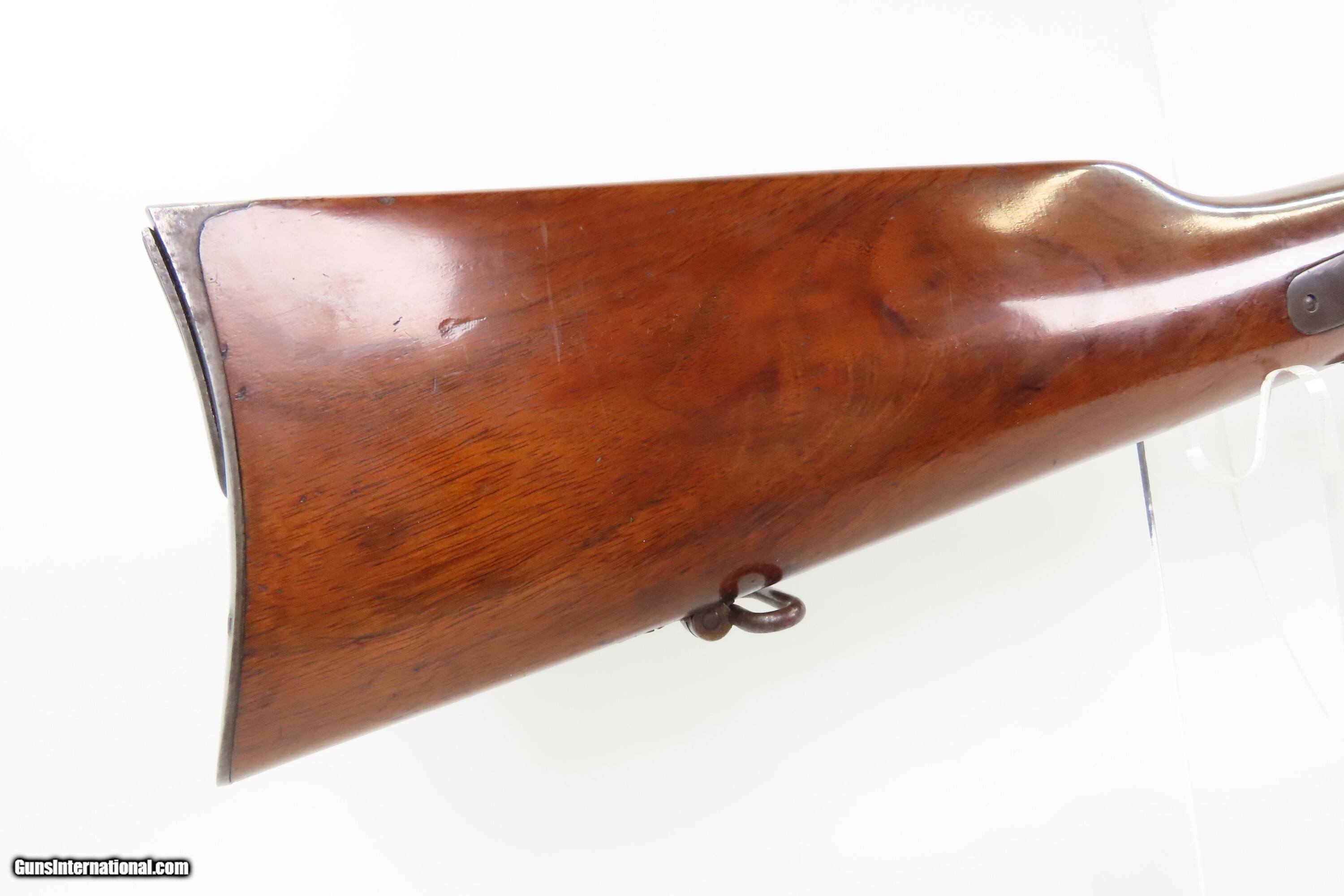 Description: Fine INDIAN WAR|FRONTIER Antique SPENCER 1865 Repeating SADDLE RING CARBINE 1 of 24,000 Post-Civil War Carbines Produced Here we present an antique Spencer Repeating Rifle Co. Model 1865 Repeating Saddle Ring Carbine, made circa late 1865-1866 in Boston, Massachusetts, just after the close of the Civil War. The Model 1865 carbines were lever-operated, breech-loading rifles that were marvels of the time and had a lasting impact on how war was to be fought in the future. Though their service life in the U.S. military was relatively short, the Spencer story includes Christopher Spencer, the inventor of the rifle, demonstrating and shooting with President Abraham Lincoln, who gave his full endorsement of the piece. The Spencer was the world’s first military metallic cartridge repeating rifle, and over 200,000 examples were manufactured in the United States by the Spencer Repeating Rifle Co. and Burnside Rifle Co. between 1860 and 1869. The Spencer repeating rifle was adopted by the Union Army, especially by the cavalry, during the American Civil War but did not replace the standard issue muzzle-loading rifled muskets in use at the time. Among the early users was George Armstrong Custer. This Spencer carbine was a shorter and lighter version designed for the cavalry. Many a buffalo were taken off the plains during westward expansion by the Spencer rifle. The overall condition is fine. Original blue and case colored finishes. The bore is bright with crisp rifling. Excellent action. The walnut stock is in fine condition with superior grain and a nicer “piano” finish. This carbine was made with a higher degree of fit and finish than the usual military carbine and does not show US Ordnance proof markings, indicating that it was a special piece made for the commercial market or perhaps for a specific customer. Own the original! This is a legitimate antique and not a reproduction. Barrel is 20 inches. Caliber: .50 Spencer Overall condition as seen in photos. Very Fast. Very Safe. FREE SHIPPING WORLDWIDE. Delivered directly to your door by express mail! Guaranteed AUTHENTIC & Includes CERTIFICATE OF AUTHENTICITY. ancestryguns $5400 #259590 SOLD Antique: Yes |
