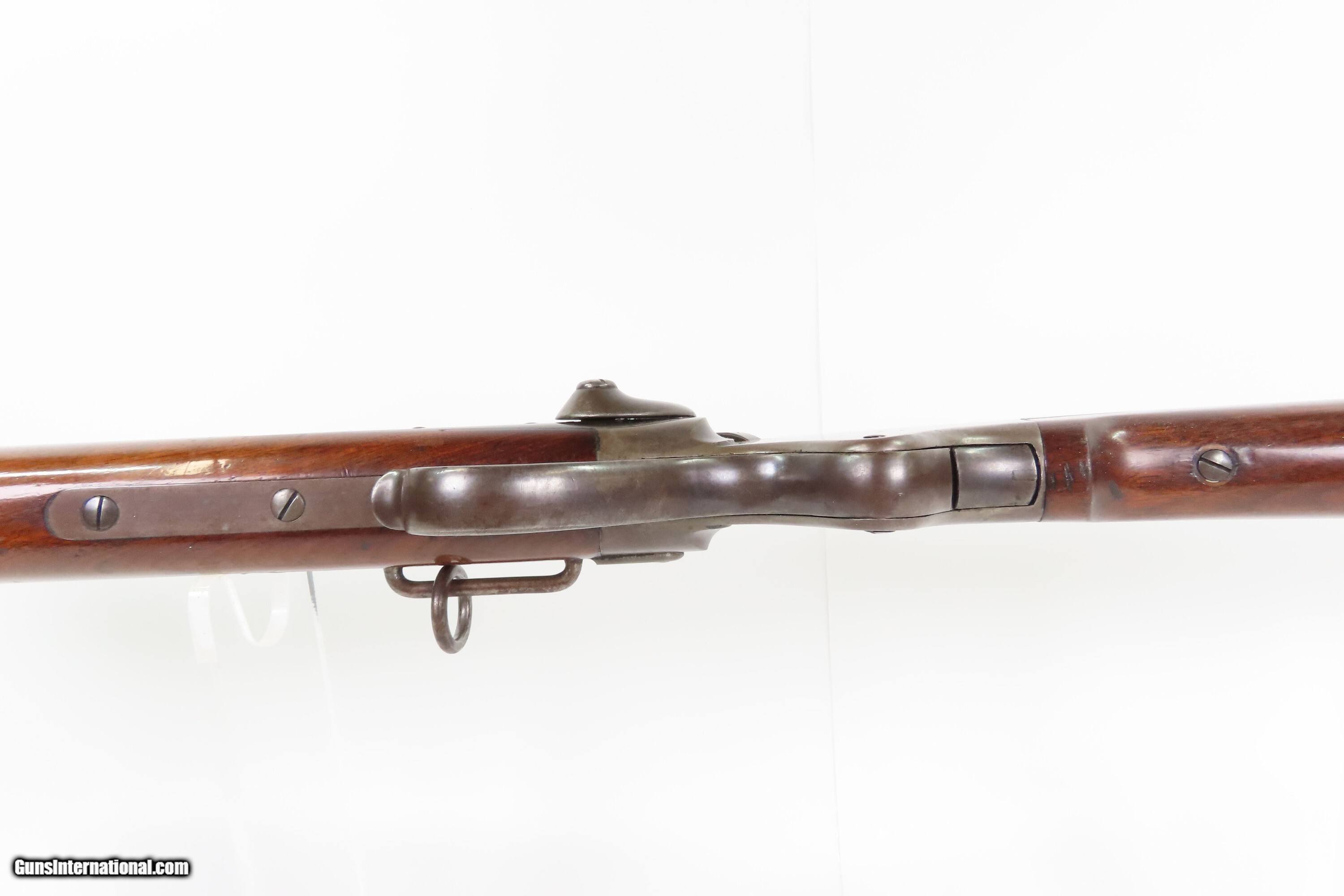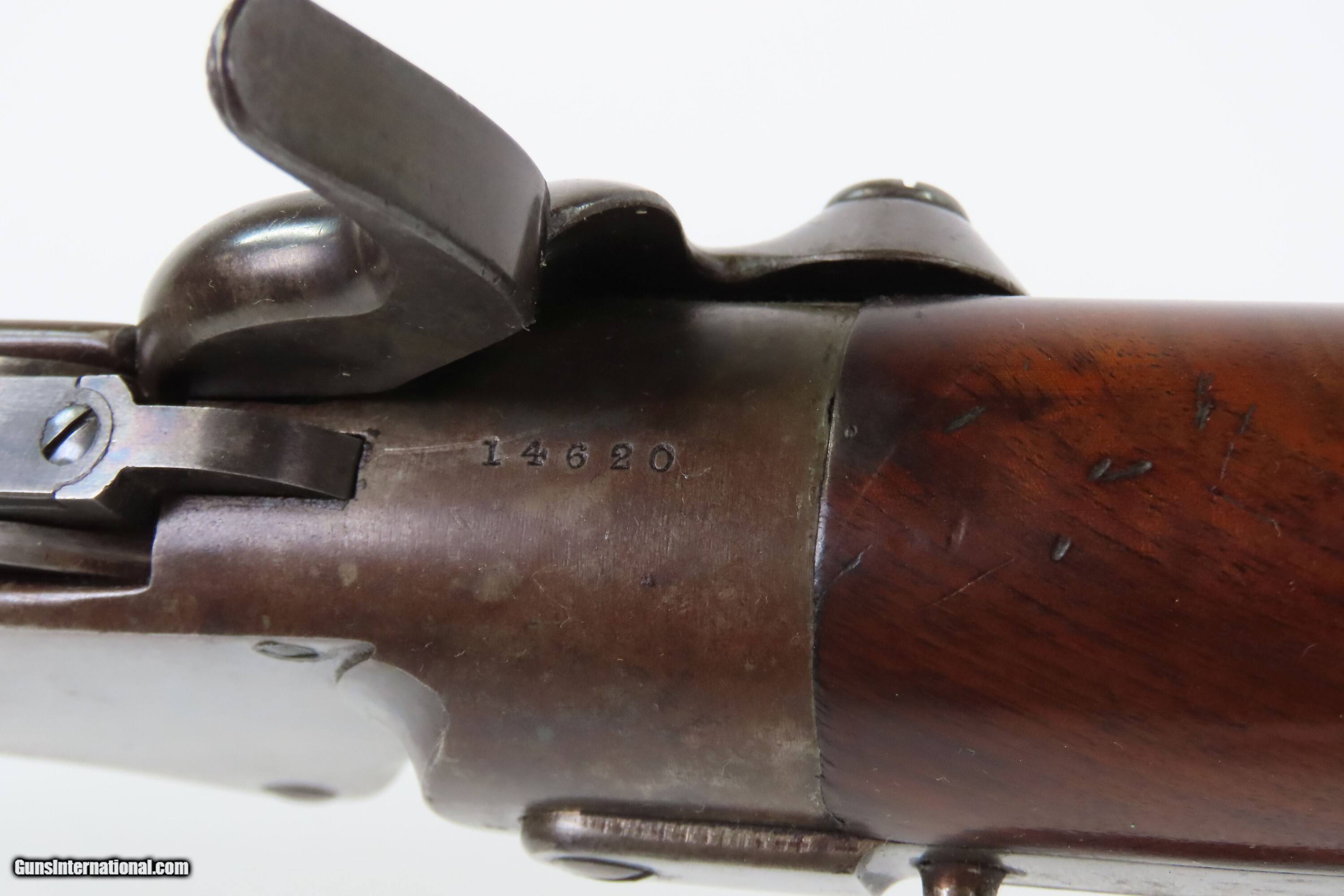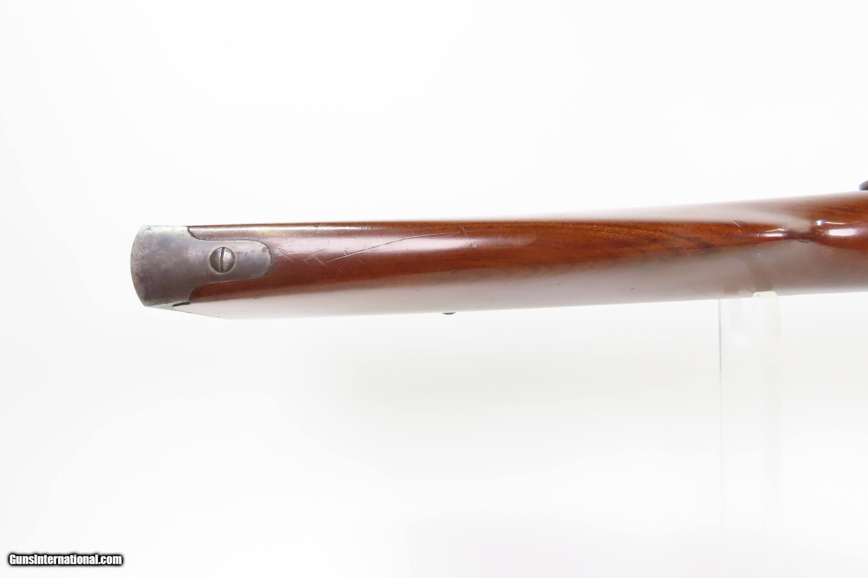 Description: Fine INDIAN WAR|FRONTIER Antique SPENCER 1865 Repeating SADDLE RING CARBINE 1 of 24,000 Post-Civil War Carbines Produced Here we present an antique Spencer Repeating Rifle Co. Model 1865 Repeating Saddle Ring Carbine, made circa late 1865-1866 in Boston, Massachusetts, just after the close of the Civil War. The Model 1865 carbines were lever-operated, breech-loading rifles that were marvels of the time and had a lasting impact on how war was to be fought in the future. Though their service life in the U.S. military was relatively short, the Spencer story includes Christopher Spencer, the inventor of the rifle, demonstrating and shooting with President Abraham Lincoln, who gave his full endorsement of the piece. The Spencer was the world’s first military metallic cartridge repeating rifle, and over 200,000 examples were manufactured in the United States by the Spencer Repeating Rifle Co. and Burnside Rifle Co. between 1860 and 1869. The Spencer repeating rifle was adopted by the Union Army, especially by the cavalry, during the American Civil War but did not replace the standard issue muzzle-loading rifled muskets in use at the time. Among the early users was George Armstrong Custer. This Spencer carbine was a shorter and lighter version designed for the cavalry. Many a buffalo were taken off the plains during westward expansion by the Spencer rifle. The overall condition is fine. Original blue and case colored finishes. The bore is bright with crisp rifling. Excellent action. The walnut stock is in fine condition with superior grain and a nicer “piano” finish. This carbine was made with a higher degree of fit and finish than the usual military carbine and does not show US Ordnance proof markings, indicating that it was a special piece made for the commercial market or perhaps for a specific customer. Own the original! This is a legitimate antique and not a reproduction. Barrel is 20 inches. Caliber: .50 Spencer Overall condition as seen in photos. Very Fast. Very Safe. FREE SHIPPING WORLDWIDE. Delivered directly to your door by express mail! Guaranteed AUTHENTIC & Includes CERTIFICATE OF AUTHENTICITY. ancestryguns $5400 #259590 SOLD Antique: Yes |