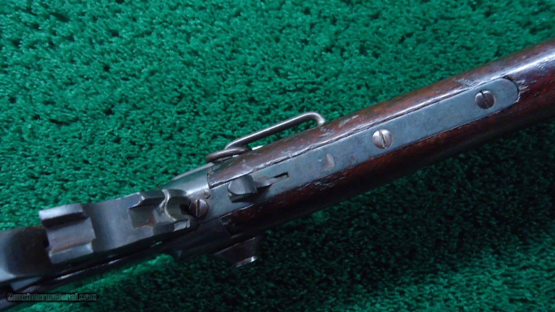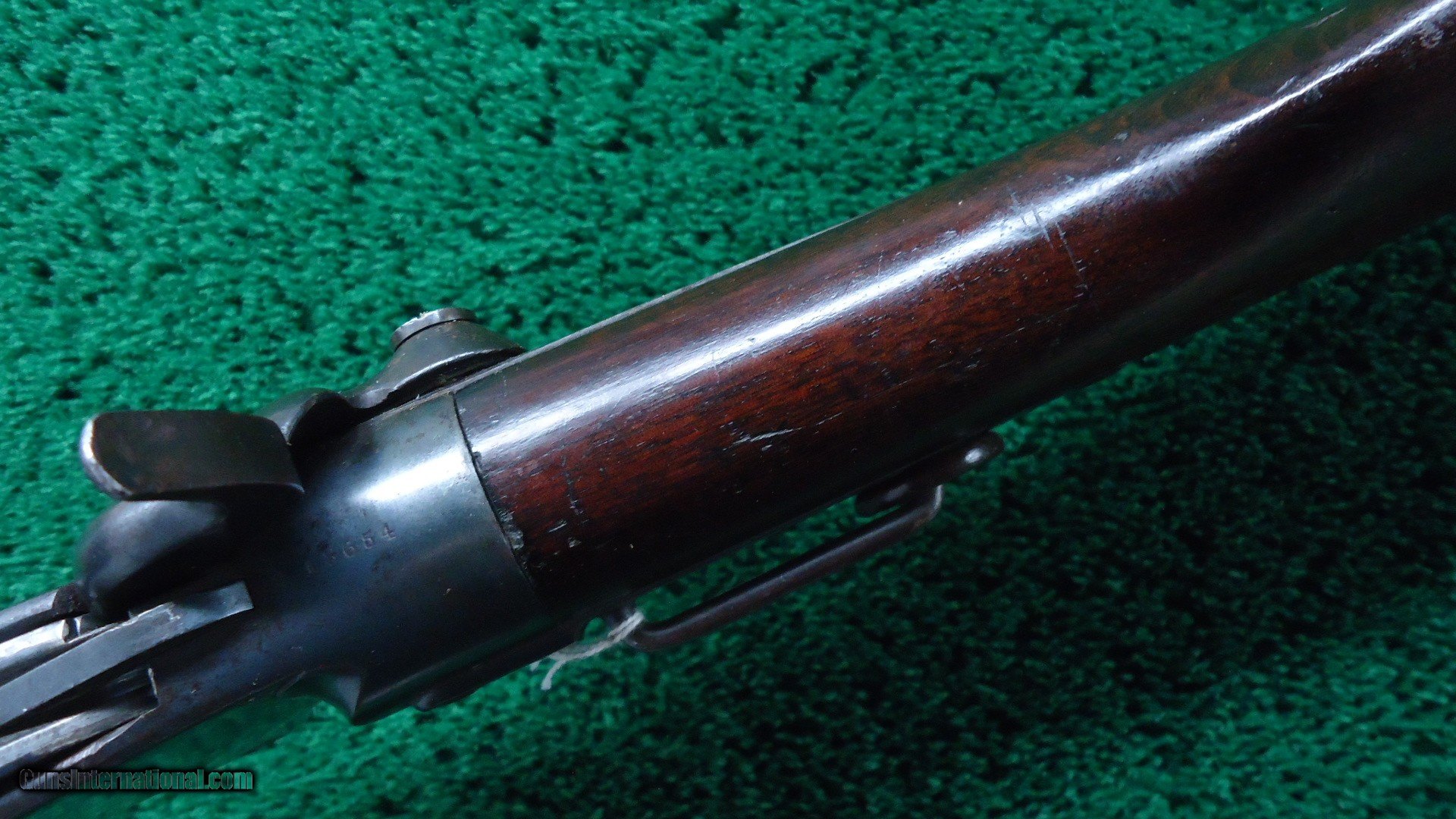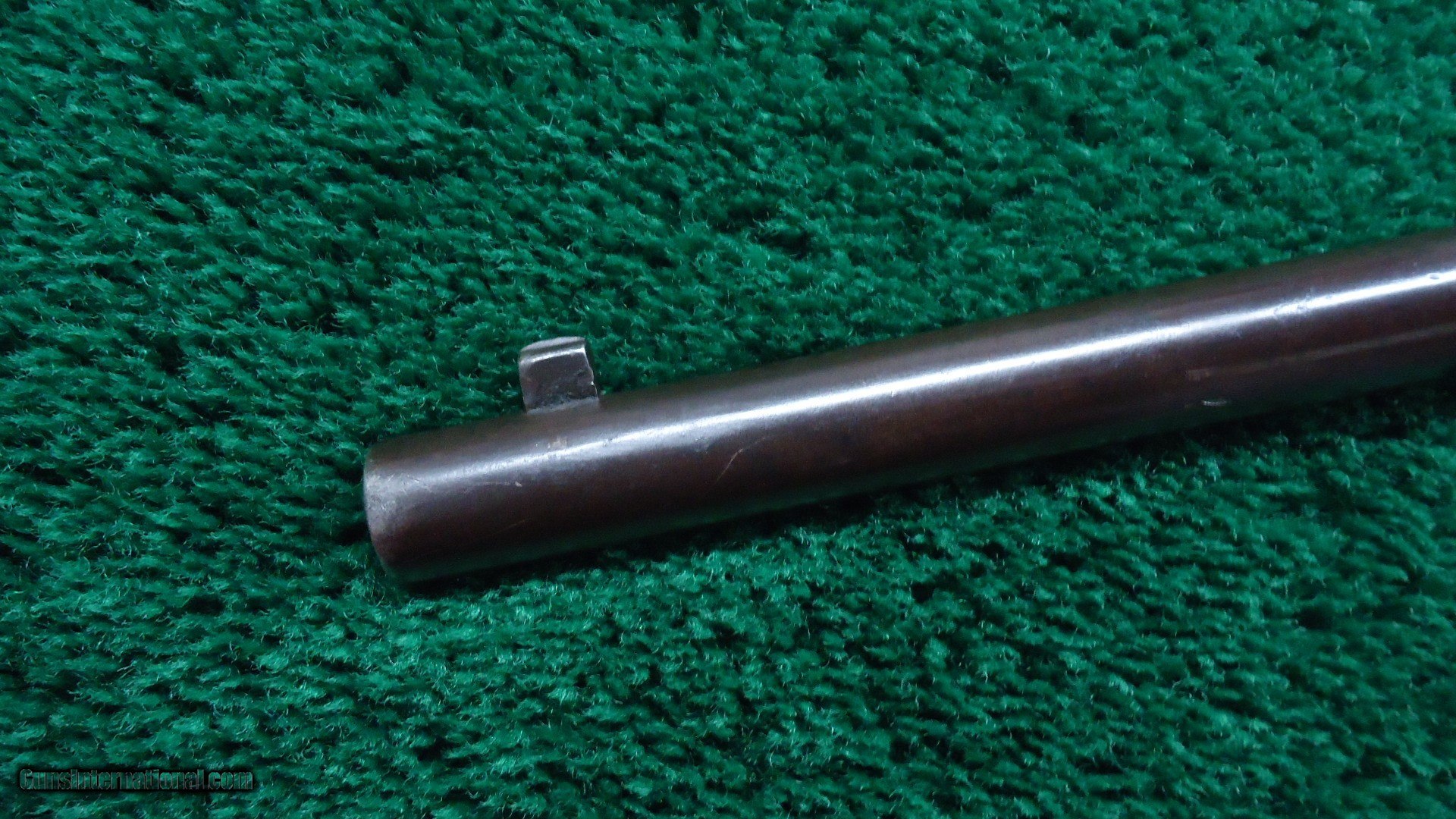 Description: 20 inch round barrel with 3-groove rifled bore chambered in 56-50 RF caliber. Good bore with some good shine but scattered fine roughness throughout. Sights include a post blade front and flip up carbine rear. Barrel is a brown patina with a few scattered spots of oxidation. Receiver retains most of a glossy re-blued finish as do hammer and lever. Original saddle ring is present. Various inspector marks and the number 48 on the lever. Wood looks a little rough with some handling mars and abrasions but is sound and solid. Nice functioning action. This is a good example piece made in 1865. Leroy Merz Antique Firearms specializes in antique and vintage Winchesters and other fine American firearms. Since 1965 Mr. Merz has taken part in the world of firearms and has been a contributor to many well known reference books. We have hundreds of additional guns in every price range at our home online. Search for Merz Antiques in google. SOLD Antique: Yes Rifle Caliber: .56-50 Spencer |