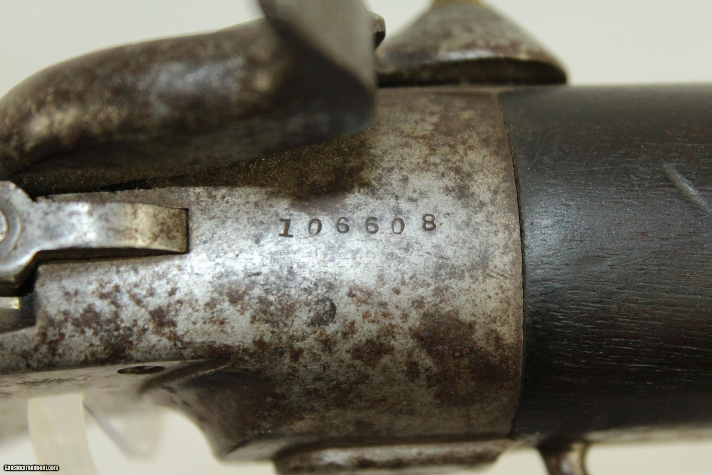 Description: RARE Spencer NEW MODEL 1868 Saddle Ring Carbine 1 of Only 2,500; Trialed by President Lincoln Here we present an antique Spencer Repeating Rifle Co. Saddle Ring Carbine, made circa 1868 in Boston, Massachusetts. These lever operated, breech-loading rifles were marvels of the time and had an impact on how war was to be fought in the future. Though their service life in the U.S. military was relatively short, the Spencer story includes Christopher Spencer, the inventor of the rifle, demonstrating and shooting with President Abraham Lincoln, who gave his full endorsement of the piece. Supposedly, during the Battle at Gettysburg, a captured Rebel said one could “load in the morning and fire all day!” This was due to the Spencer’s most endearing quality: a 7 round magazine tube in the butt of the gun. This gave the shooter phenomenal firepower in a day when most soldiers were muzzle-loading single shots or even singly loading their breech-loading carbines. This specimen represents a rare variant known as the New Model or the Model 1868, of which only 2,500 were produced. This was the last variant of Christopher Spencer’s famed rifle before the company went into bankruptcy and was sold at to Oliver Winchester. Two key features differentiate this model from others: 1) the “N.M.” New Model marking at the top of the breech, and 2) the presence of the Spencer Patent cut off device. In 1865, many Spencer rifles and carbines received the Stabler Patent cut off device, which was a small switch behind the trigger which prevented access to the magazine tube when enabled and forcing the shooter to single load to conserve ammunition. This was to prevent rapid fire in a military context until the order was given to open up. The Spencer cutoff achieved the same end by simply pushing the top leaf of the device over slightly, not allowing the breech-block to pick a cartridge up from the magazine. Since the U.S. government opted for the powerful single-shot trapdoor rifles and carbines after the American Civil War, this Spencer was not government inspected, instead being sold on the commercial market. Many Spencers were sold to France during the Franco-Prussian War in 1870, and became so popular that licensed copies were also made in Belgium. This specimen is in very good condition. The markings on the metal surfaces remain crisp and clear. The patina on the metal surfaces are an even dark gray. The walnut stock is solid. The action is excellent. The bore is very good, shiny with good rifling. Own the original! This is a legitimate antique and not a reproduction. Barrel is 20 inches in length. Caliber: 56-50 (rimfire) Bore is in very good condition, mostly shiny with good rifling. The firing mechanism is excellent. Overall condition as seen in photos. Here is a great example of a Civil War carbine taken into the West after the war! Very Fast. Very Safe. FREE SHIPPING WORLDWIDE. Delivered directly to your door by express mail! Guaranteed AUTHENTIC & Includes CERTIFICATE OF AUTHENTICITY. ancestryguns $4000 #10367 SOLD Antique: Yes |