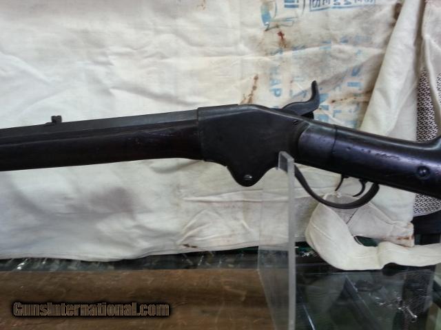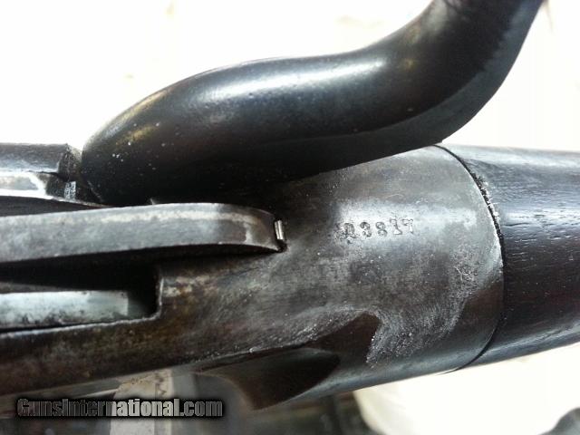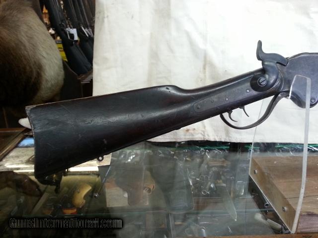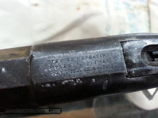 Description: This 52 caliber Spencer Rifle is a frontier conversion of a civil war Spencer musket w/ heavy octagon barrel. Rifle has a silver Rocky Mountain front sight and has original black horn rear sight. This rifle is a really crisp, nice patina, unmessed with Frontier Buffalo Rifle. The stock still has the majority of the original varnish. This rifle can be shipped directly to your home or business.