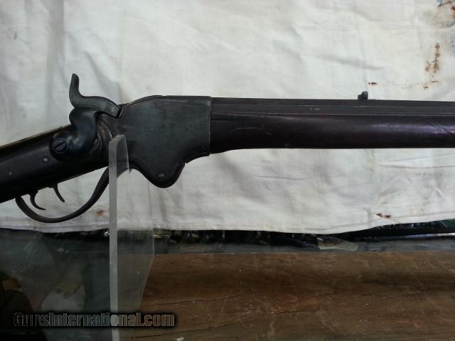 This 52 caliber Spencer Rifle is a frontier conversion of a civil war Spencer musket w/ heavy octagon barrel. Rifle has a silver Rocky Mountain front sight and has original black horn rear sight. This rifle is a really crisp, nice patina, unmessed with Frontier Buffalo Rifle. The stock still has the majority of the original varnish.