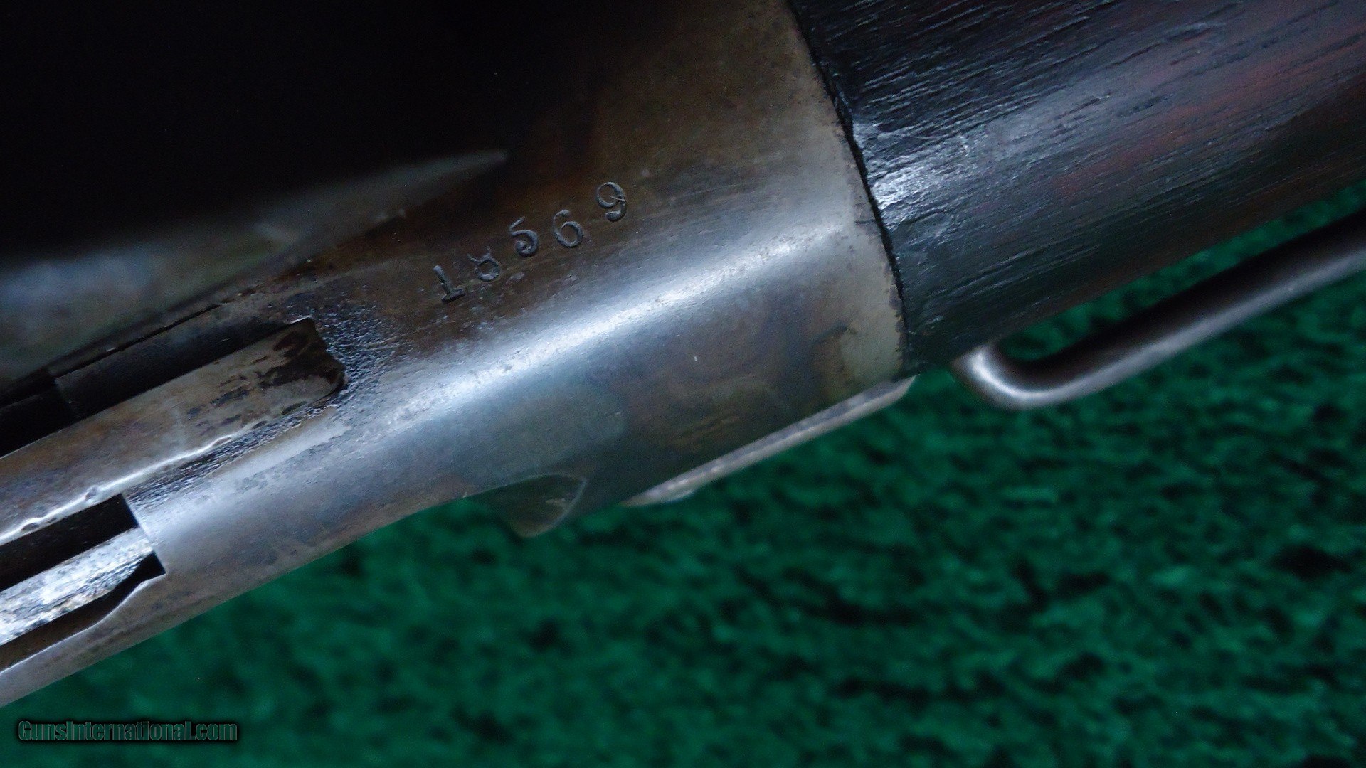 Description: 20 inch blued barrel features a blade front and folding ladder rear sights with a very good bore. Retains about 90% arsenal refurbished blue finish on the barrel with scattered moderate freckling. 85% original case colors remain on the action and buttplate. Stabler cutoff. Wood is in good condition with some scattered handling mars. Small single letter inspection initials marked on various components, and "J.L.C" inspection initials on the left of the barrel at the breech. "80/G" is branded into the right side of the buttstock. Most of the Model 1865 Spencer carbines were manufactured in 1865 and 1866 after the end of the Civil War. Many were used during Reconstruction and in the Indian Wars before the Springfield Trapdoors were widely issued. This carbine would make a great addition to any US Martial collection. Leroy Merz Antique Firearms specializes in antique and vintage Winchesters and other fine American firearms. Since 1965 Mr. Merz has taken part in the world of firearms and has been a contributor to many well known reference books. We have hundreds of additional guns in every price range at our home online. Search for Merz Antiques in google. SOLD Antique: Yes |
