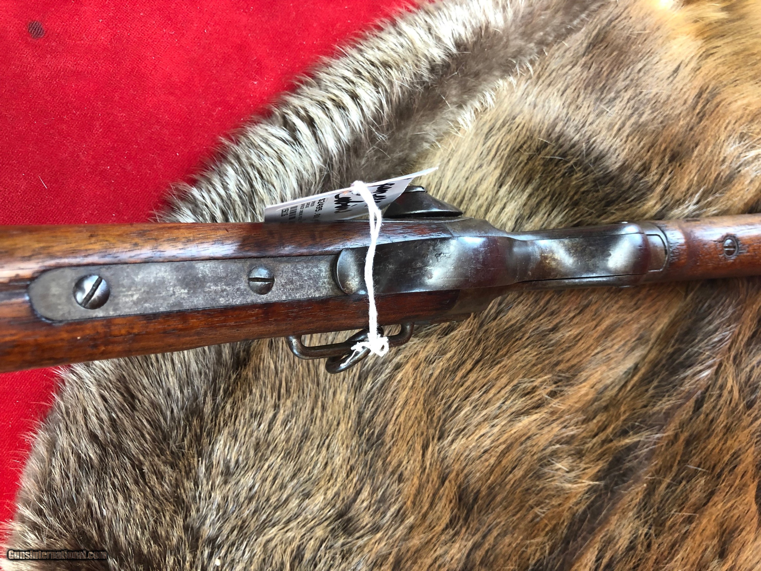 Description: We have a 1865 Spener Carbine in great shape. These rifles where the second most issued rifles in the Civial War and typically chamered in 56-56 rimfire or 56-50 rimfie. SOLD Rifle Caliber: .56-56 Spencer Manufacturer: Spencer Model: 1865 Barrel Length: 21 |