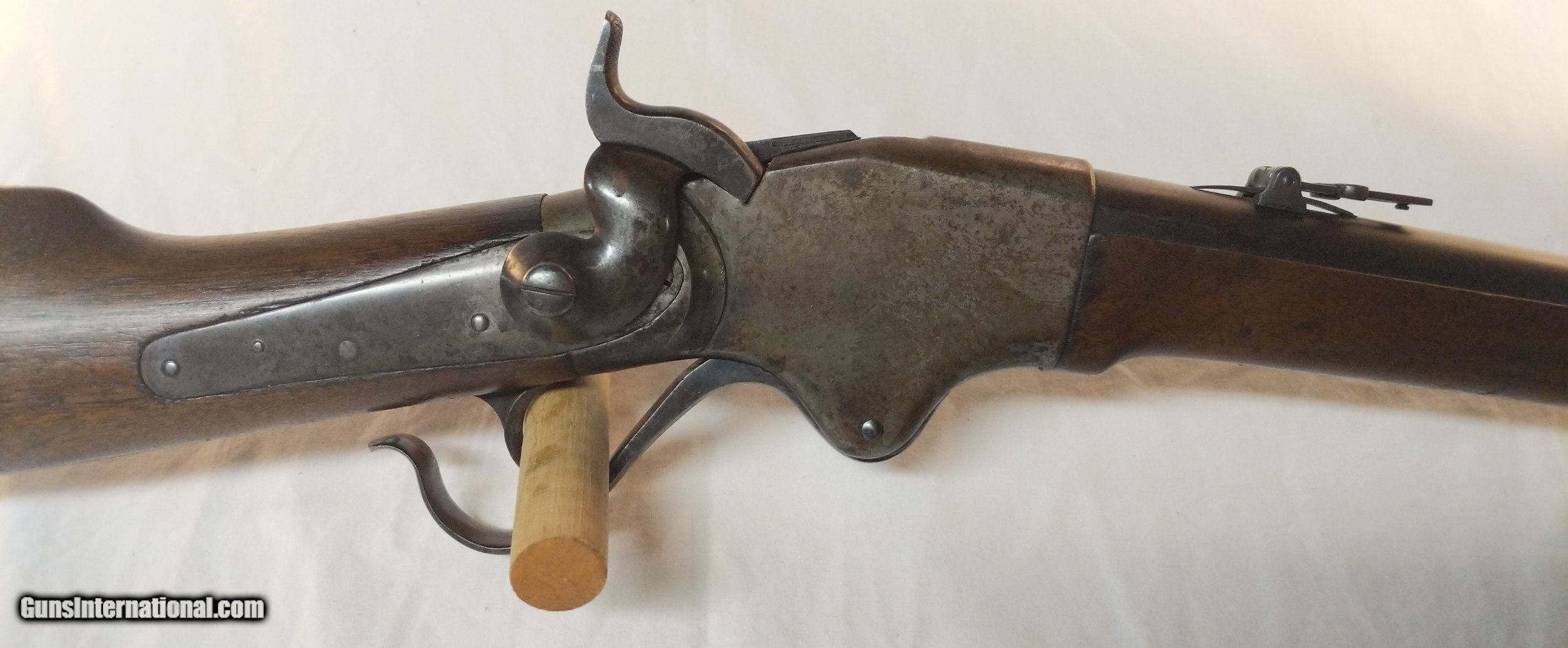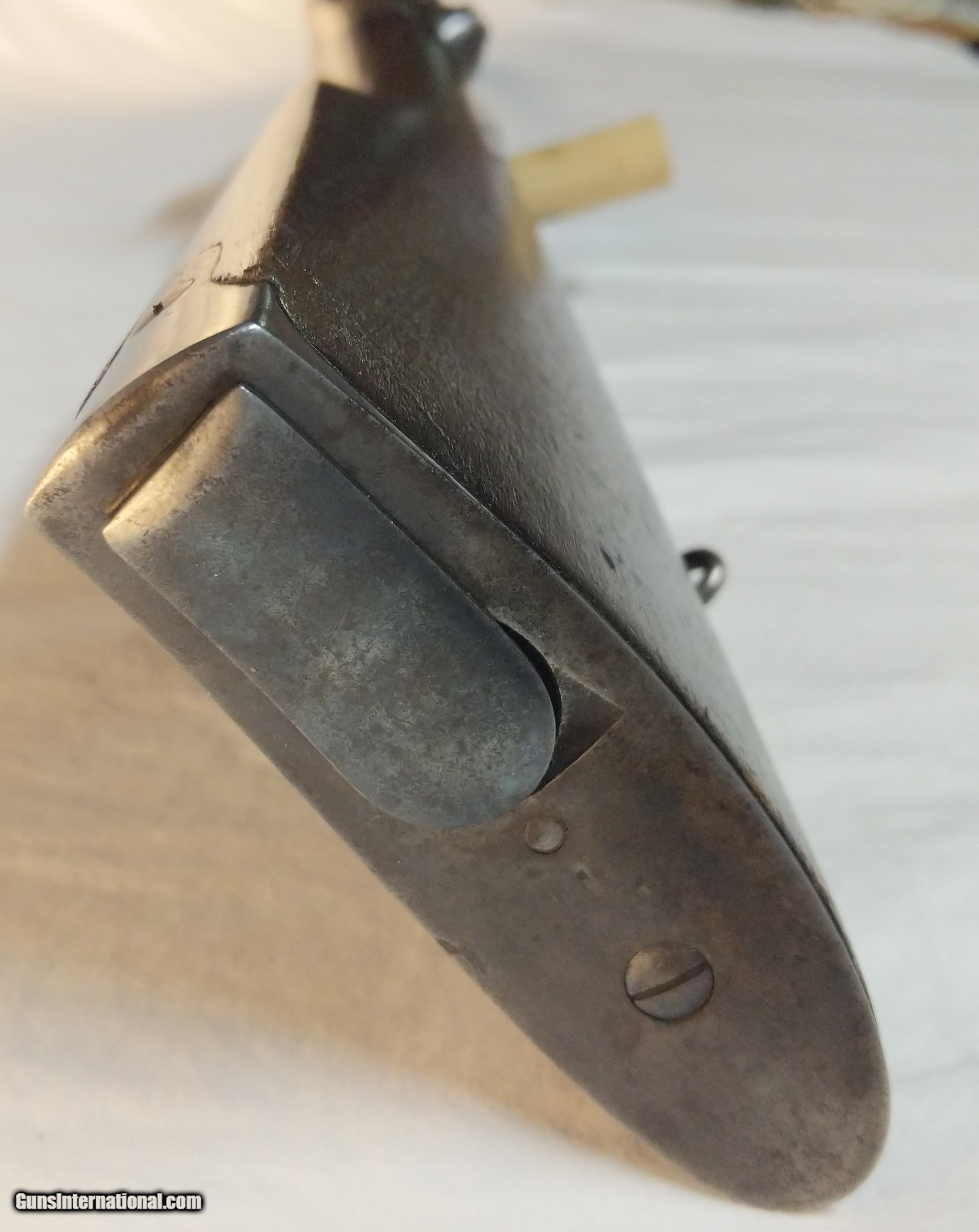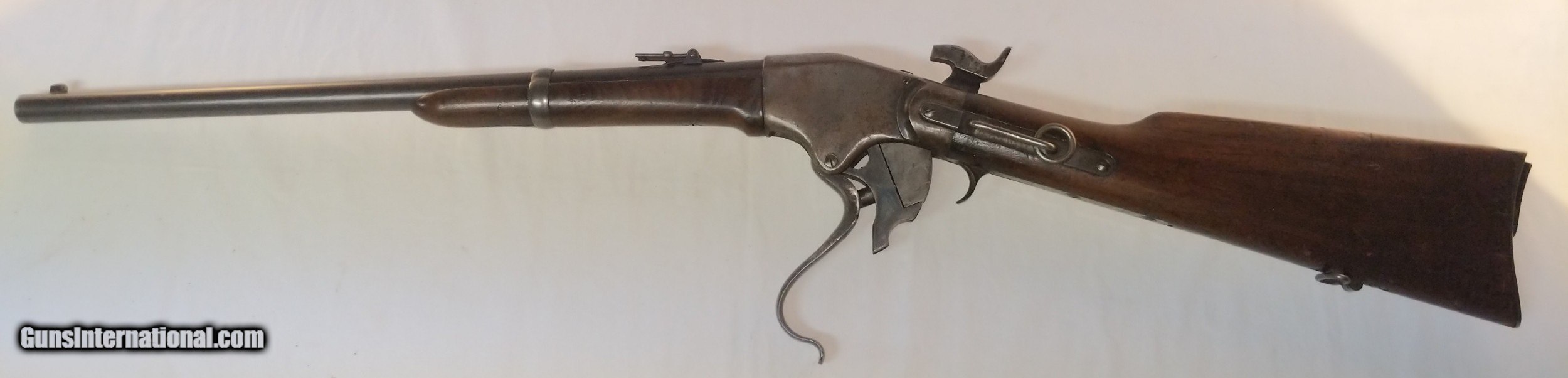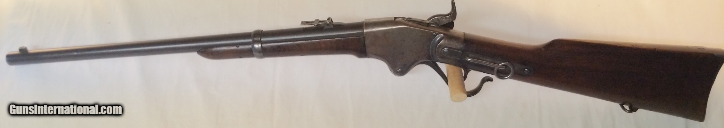 Description: 1860 Spencer Civil War Carbine 56-56 cal. With a spencer magazine cut-off, possible trials system to save ammo. Sn. 44845 Please ask any questions before purchasing item Seller pays shipping both ways SOLD Antique: Yes Manufacturer: Spencer Firearms Company Model: 1860 Serial Number: 44845 Caliber Info: 56-56 Bore: Rifled Condition: Excellent Metal Condition: Excellent Wood Condition: Excellent Bore Condition: Good Barrel Type: 22 inch Action: Lever Finish: Blue |