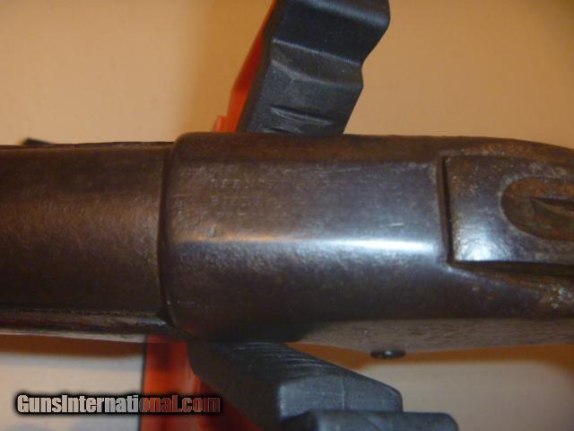 Description: Description: This Spencer Model 1860 Civil War Carbine is a post Civil War alteration in .50 Caliber rim fire with 22” barrel bearing serial number 20336. The model 1860 Civil War model was made between 1863-1865 (the 1865 model had a 20” barrel). After use in the Civil War, in 1867, the government had 11,000 of these carbines restocked and refinished at the factory to government specifications. They were altered by the Springfield Armory between 1867-1874. This .50 caliber rim fire carbine is what was termed as a .56-52/.56-50 caliber. It is three grooved rifling. Condition: The metal is good for the age of the gun. The wood is walnut with a dark finish and has some small hair-line cracks, dents, and dings, but solid and nothing major. The bore is pretty good for its age. The gun works well mechanically. Overall, this is a good Spencer 1860 Civil War Carbine with Stabler cut off device used in the American Civil War and probably Indian Wars. Standard Markings on top of the receiver: Spencer Repeating Rifle Company/Pat March, 1860 Oct./5/1852. Metal markings are faint but readable and distinguishable after factory refinish. The rear sight is missing (these can be purchased at S&S Firearms). The front sling swivel was added by Springfield Armory. (See Flayderman page 633). MORE PICS. SHIPS INSURED DIRECTLY TO BUYER FOR $50. NO FFL. SOLD Antique: Yes Manufacturer: SPENCER Model: 1860 Serial Number: 20366 Caliber Info: .50 Bore: USED Condition: USED Metal Condition: USED Wood Condition: USED Bore Condition: USED Barrels: ONE Barrel Type: ROUND Action: LEVER Triggers: ONE Stock: WOOD Finish: BLUED Sights: FIXED Manufacture Date: 1863 Engraving: NO Extras: NO Case: NO Item Location: MISSOURI |