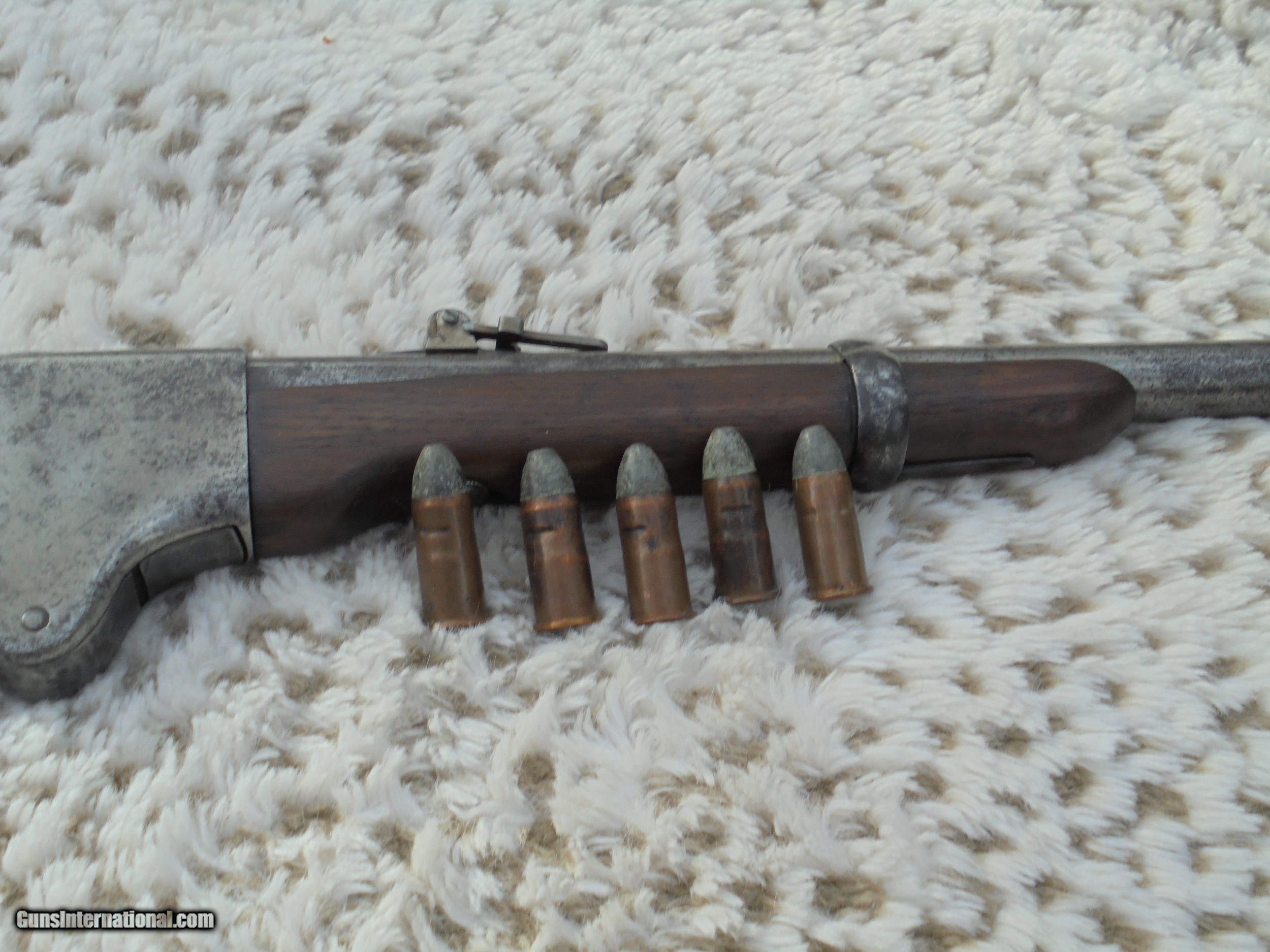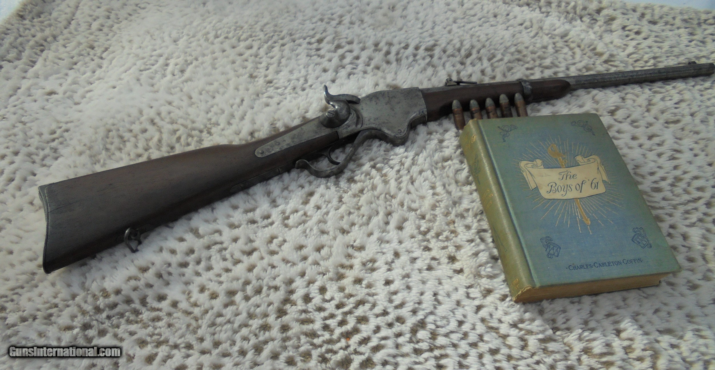 Description: Spencer Model 1865 - Serial Number 17881 - 56-50 caliber carbine (please note the error in title that I can't seem to correct - 56-50 is correct). Bore is bright, very good rifling, one small pit, action is tight and works well, sights are good, feed tube is in good conditon with no cracks. 158 years old. Overall in very good condition. 5 rounds of original ammunition. Has been in family. The Boys of '61 by Charles Carleton Coffin, original copyright 1881, also included. Signed To Clarence (my great, great uncle), Christmas 1897. Ship only to FFL. Certified check or money order only. $2500 includes shipping and insurance. E-mail or call for further information. SOLD Antique: Yes |