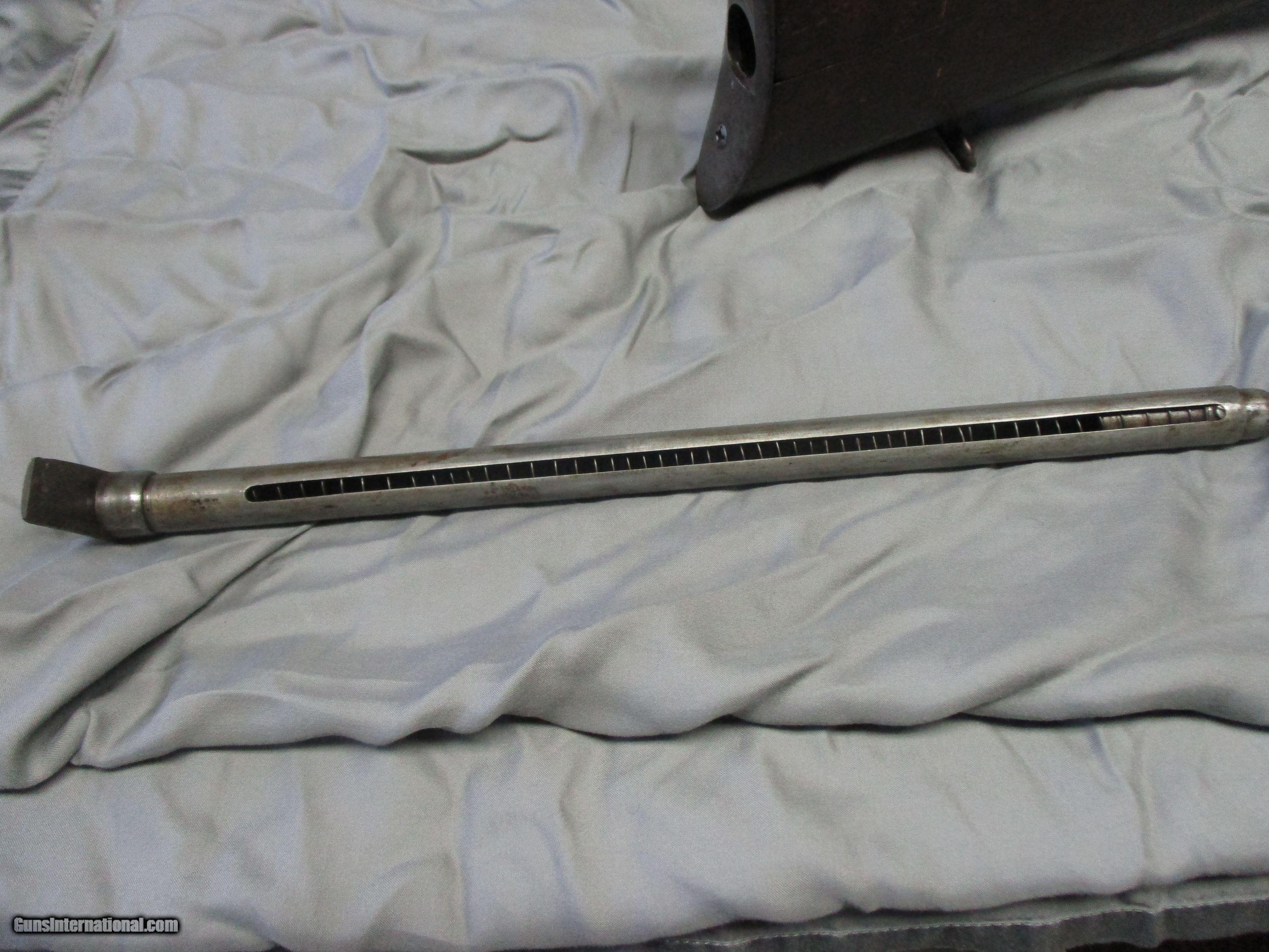 Description: Update 5/21/19 Please Read the Revised Description. Though the Model 1865 Spencer Carbine came to late to be issued for use in the Civil War (1861-65), it is very similar to its predecessor, the Model 1860. Spencer developed his rifle before the Civil War, but the Union Army was not interested in a fast shooting rifle, for fear the soldiers would “waist ammunition.” Primarily, their fear was that the soldiers would kill the enemy at a higher rate than the enemy could. God forbid the Union soldiers be allowed to do their job faster and with fewer casualties on their side. The primary issue was that Union generals at the time were still using Revolutionary War tactics – this despite the fact the army practiced using cover and concealed fire tactics to a limited extent during that war. To overcome this road block, Spencer presented his rifle to President Lincoln personally and allowed him to shoot his new rifle. Lincoln was so impressed with it that he encouraged the Army to quickly adopt the rifle. Unfortunately, many in the Army still opposed the adoption, forcing Lincoln to fire several people (for their stupidity) before the Spencer would be finally issued. The Spencer Carbine became very popular with the troops, particularly with the cavalry. The Spencer held 7 rounds in its tubular magazine and could fire at an average of 14 rounds in a minute (sometimes as high as 20) as opposed to the usual 2-3 rounds. At the Battle of Chickamauga, the famous “Lightning Brigade” with their Spencer rifles held Alexander’s Bridge in the face of two Confederate charges, delaying them from crossing the creek. The Model of 1865 came too late to see service during the war, but it became very popular after the war among those moving out west. The Spencer shown here will likely be chambered for the .56-50 Spencer cartridge, though it could just as easily be chambered for the .56-52 Spencer, which used the same diameter projectile (.512-inches) as the .56-50. Both cartridges were produced by ammo manufacturers until 1919. The rifle is in fair condition considering its age. Originally the rifle was missing three screws, and the buttplate screw had been replaced with a Phillips head screw. The consignor however managed to track down replacements for the forend screw and the front saddle bar screw. The pictures have been update to reflect these changes. All wear is shown above. As of 2018 the carbine is now over 150 years old (153 years assuming it left the factory in 1865)! It is not recommended to fire an original Spencer given its age, assuming one could find ammo for it. The Spencer played an important role in U.S. history. It helped Union forces defeat greater numbers of Confederate soldiers and arguably helped to shorten the war. Alongside the Henry 1860 rifle it proved that lever rifles were a valid form of weaponry, starting the path towards more well-known lever actions such as the Winchester Models 1873, ’76, ’86, ’92, ’94, and ‘95, and the Marlin Models 1894 and 95. SOLD Antique: Yes Manufacturer: Spencer Model: M1865 Caliber Info: .56-52 or .56-50 Spencer Condition: Antique Barrels: 20 inches (508mm) Action: Lever Stock: Wood Fore End: Wood Finish: Case Hardened Sights: Iron Manufacture Date: c. 1865 |