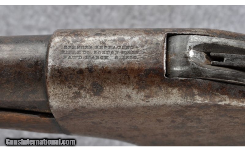 Description: In March of 1860, Christopher Spencer received a patent on a lever action repeating rifle, which fed rimfire cartridges into the chamber through a tubular magazine in the butt stock.This rifle and later carbine models formed quite a demand during the Civil War for their great rate of fire, in excess of 20 rounds per minute, and reliable operation. The Spencer was produced from 1860 to 1869.SOLD AS A NON-OPERATIONAL FIREARM- AS IS, NO RETURNS. SOLD Antique: Yes Manufacturer: 1860 through 1869 Caliber Info: .56-50 Rimfire Metal Condition: Well aged showing rust, pitting, dents and dings Wood Condition: Shows an old revarnish with subsequent layers of handling marks Bore Condition: Actually the bore is not that bad. Rifling is fairly strong but dark and there is some pitting visible Barrels: 30 Stock: Uncheckered straight grip Stock Dimensions: 12 3/4" LOP Fore End: Uncheckered with two barrel bands. Appears to have been cut down Butt Pad: Metal with magazine tube Weight: 9 lbs 12 oz Sights: Blade front, Tangent blade rear Item Location: Grand Junction, CO |