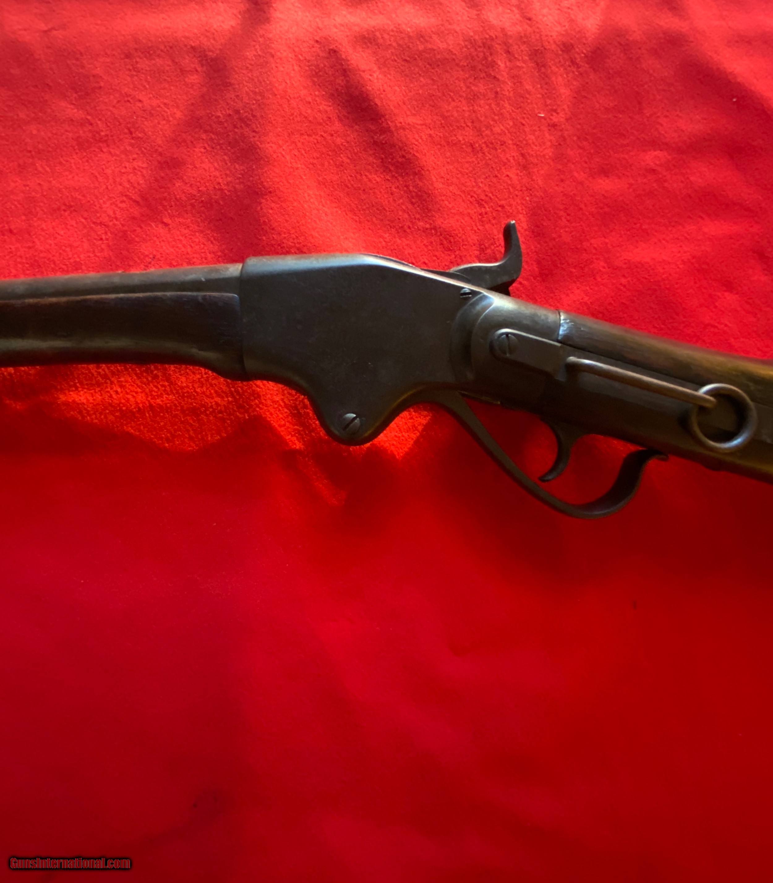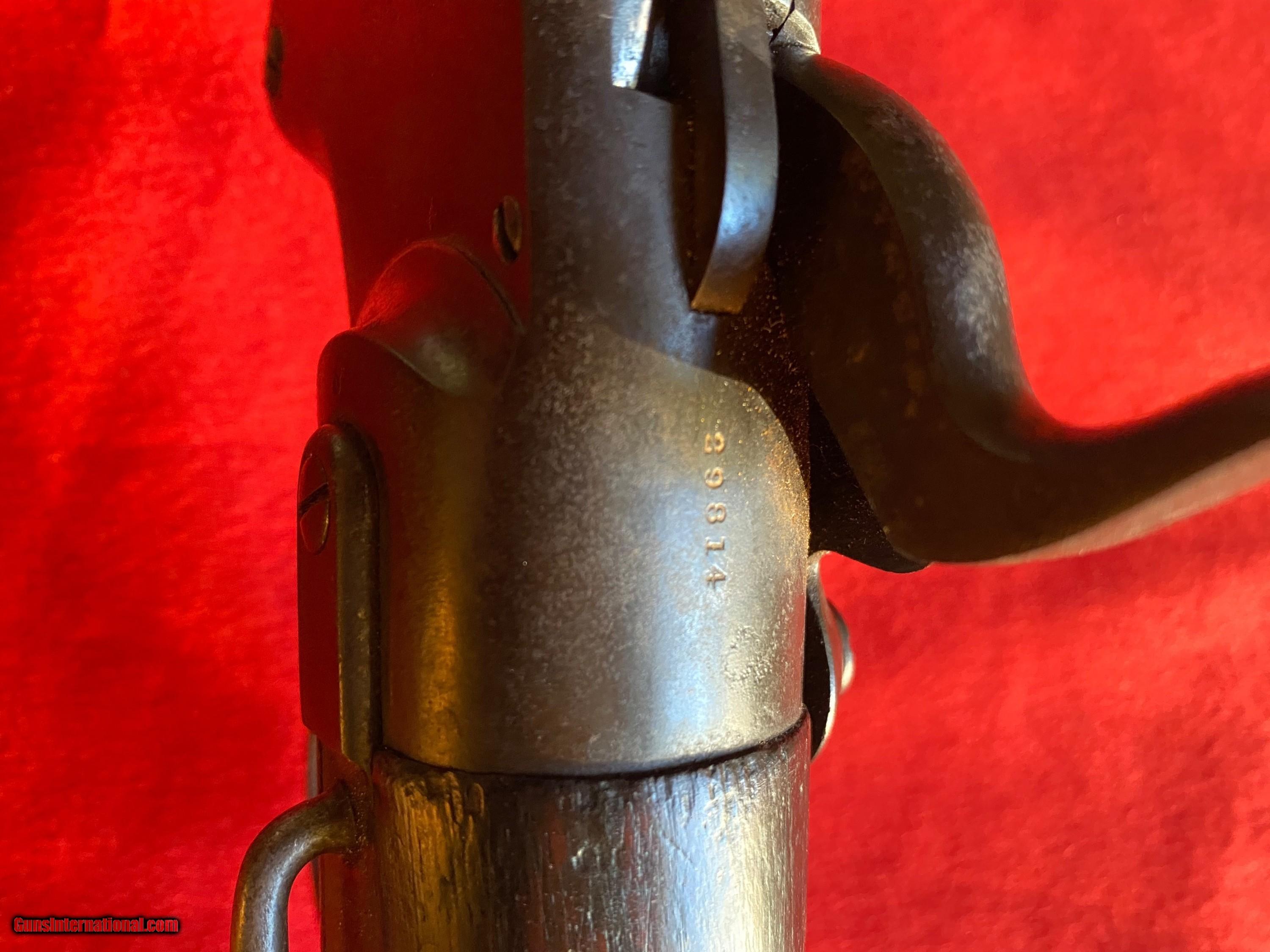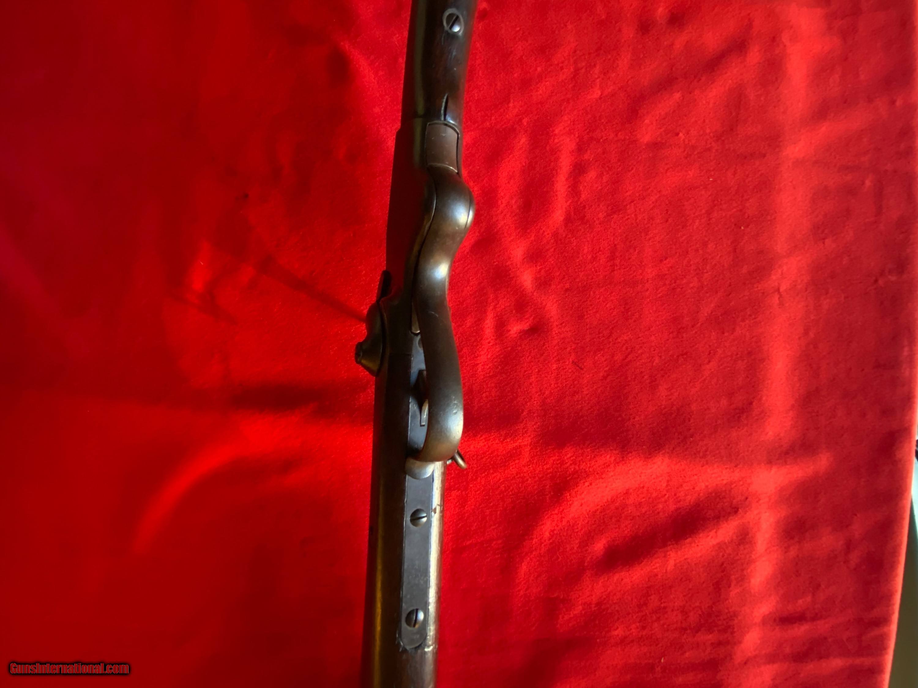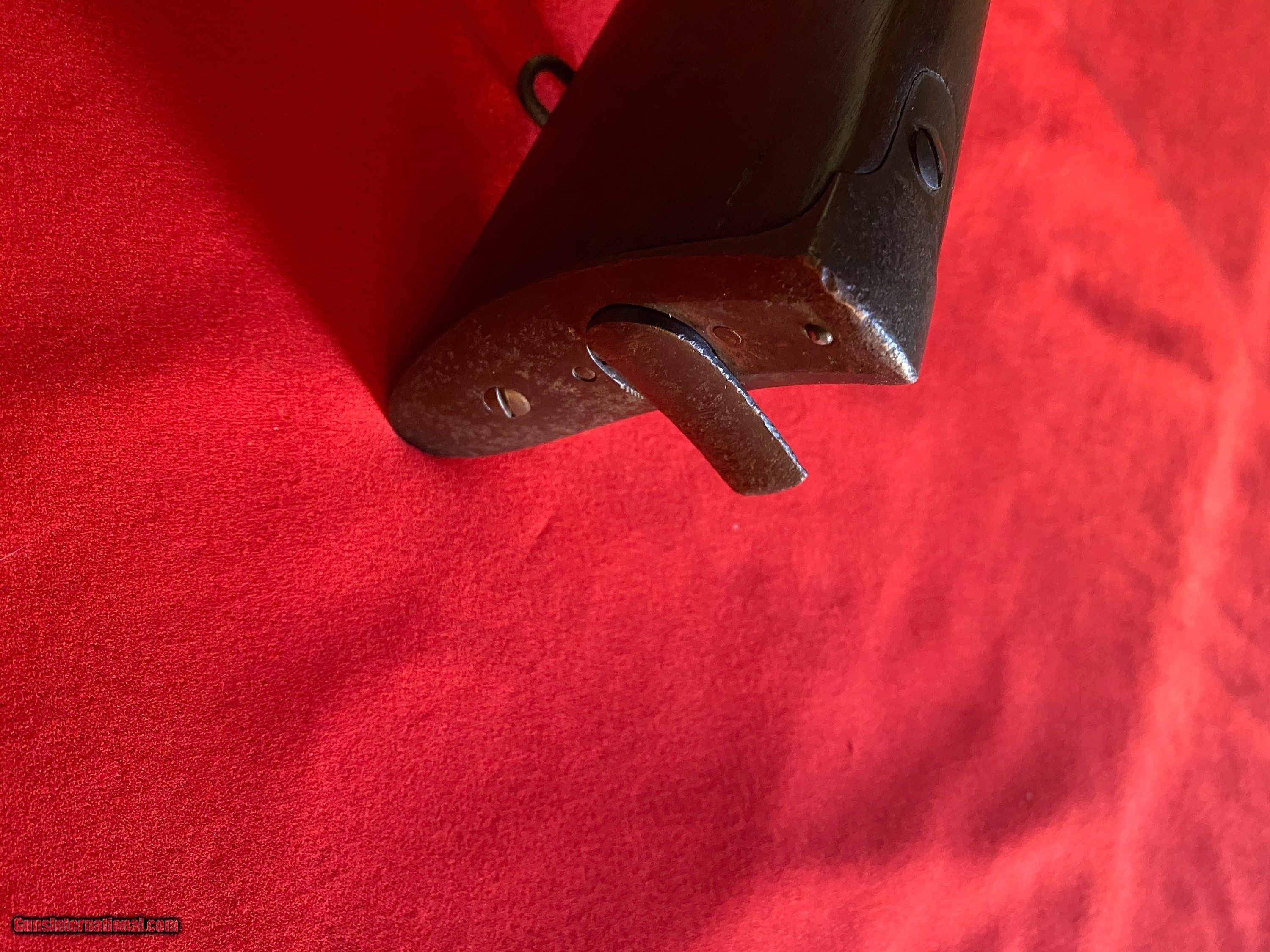 Description: Spencer S.R.C 1860 has good iron surfaces and very nice patina. Markings on the wood are legible. Missing rear sight. $1,900OBO SOLD Manufacturer: Spencer Serial Number: 29814 Condition: Good Metal Condition: Good Wood Condition: Good |