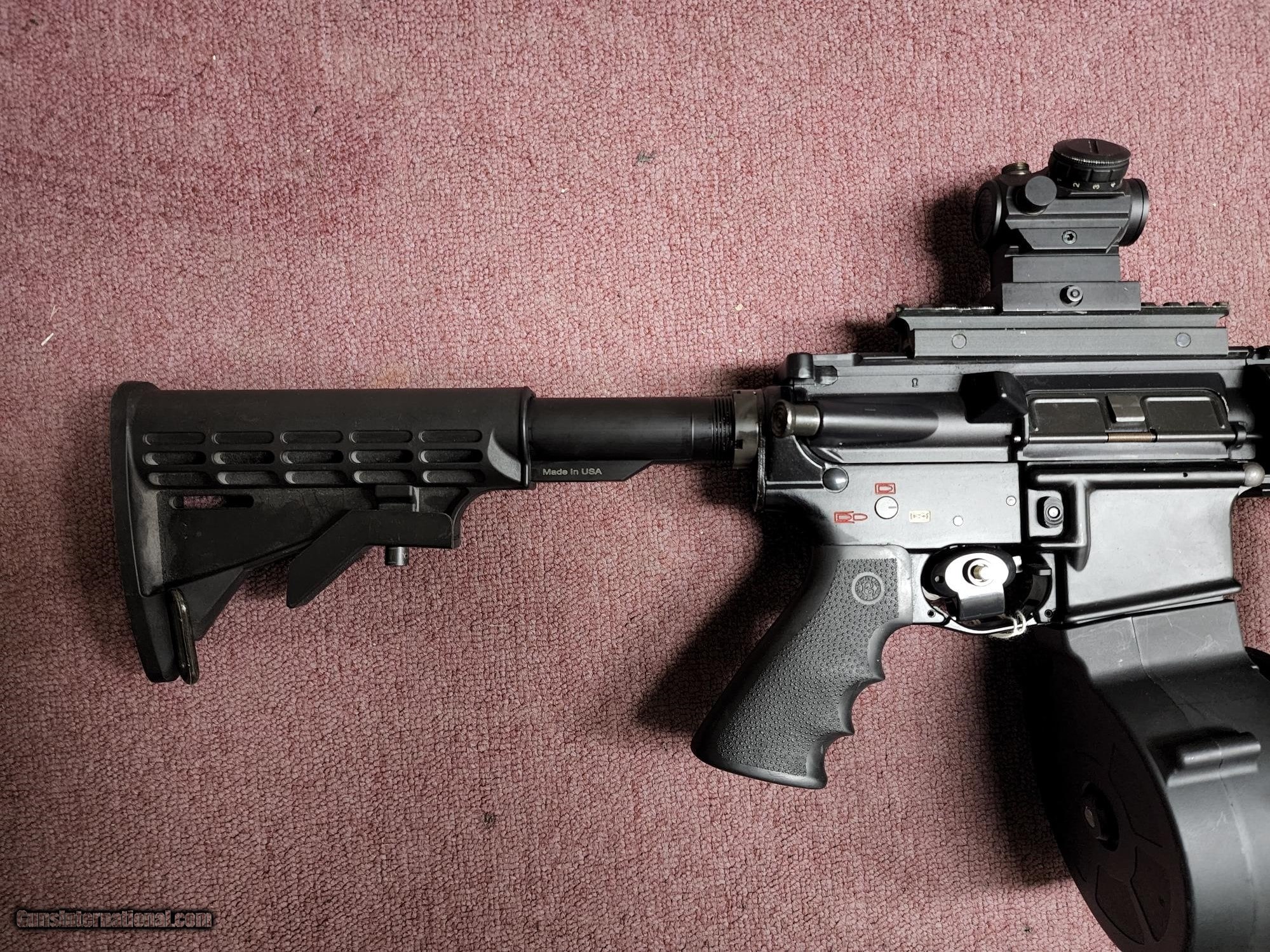 Description: Guns Listing ID: 441870 COLT AR-15A4 - 5.56 NATO - 50 ROUNDS - 18 \" INCLUDES ONE 50 ROUND MAG. RED DOT BUSHNELL SITE. MULTIPLE RAILS. FLASHLIGHT. FORWARD GRIP. SOLD Manufacturer: SPIKE‚‚S TACTICA Model: ST 15 Caliber Info: 556 NATO Condition: Used - Non-Certified Barrels: 18 BARREL Finish: BLACK |