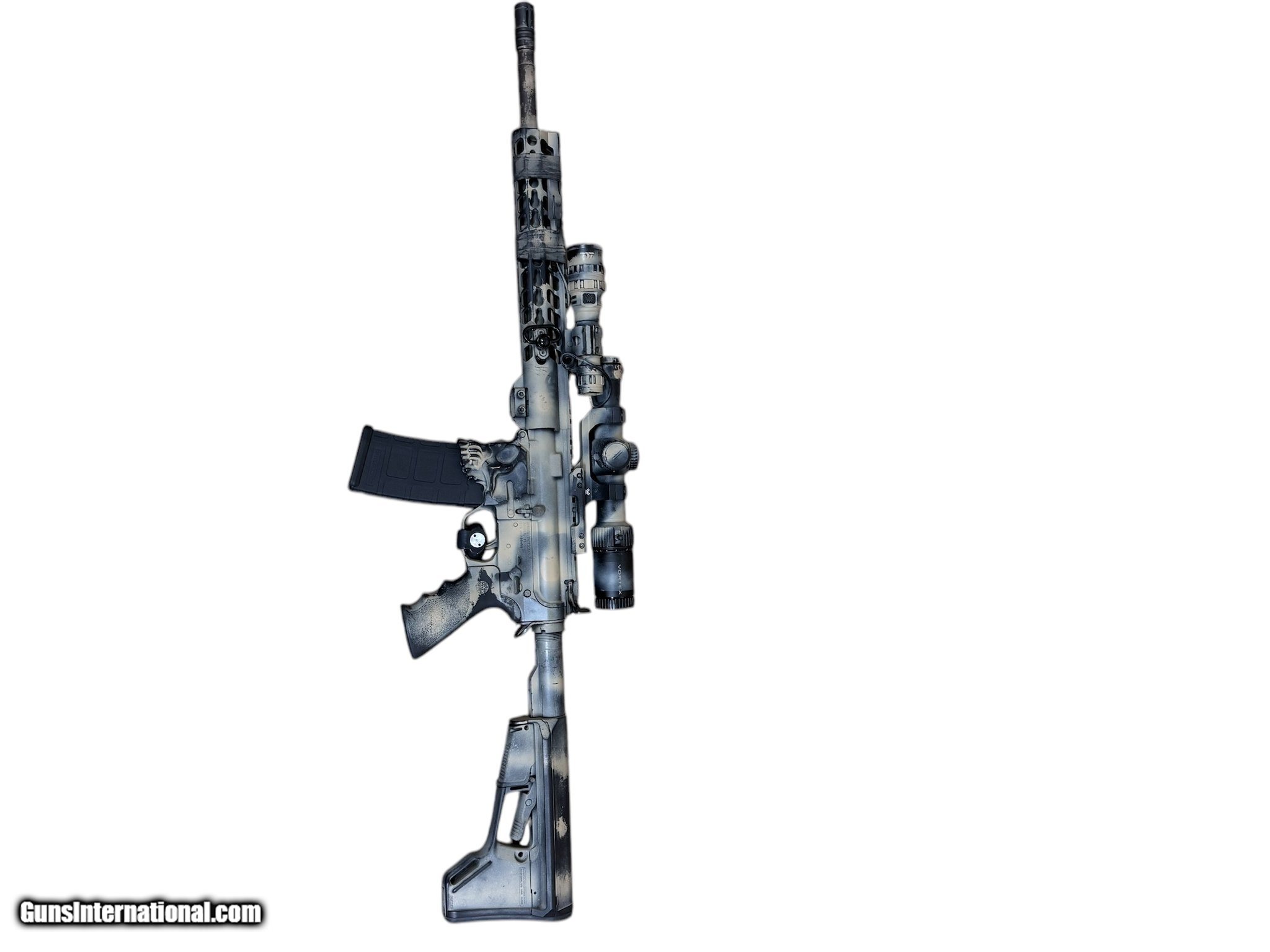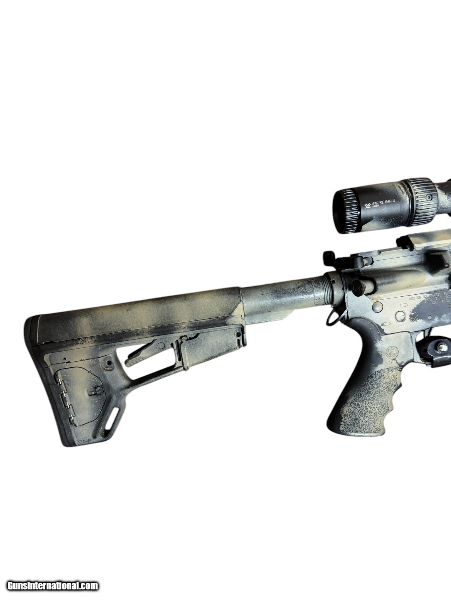 Description: Guns Listing ID: 483038 Chambered in 5.56, .223, barrel length 17”. Finish is close to 80’s camo similar. Vortex scope is a Strike Eagle 8-24 variable, mounted flashlight included with purchase. 1-30 round magazine included with purchase as well. In very good condition. SOLD Manufacturer: SPIKE‚‚S TACTICA Model: THE JACK Caliber Info: 5.56X45MM NATO Condition: Used - Non-Certified Barrels: 17 Finish: 80‚‚S CAM |