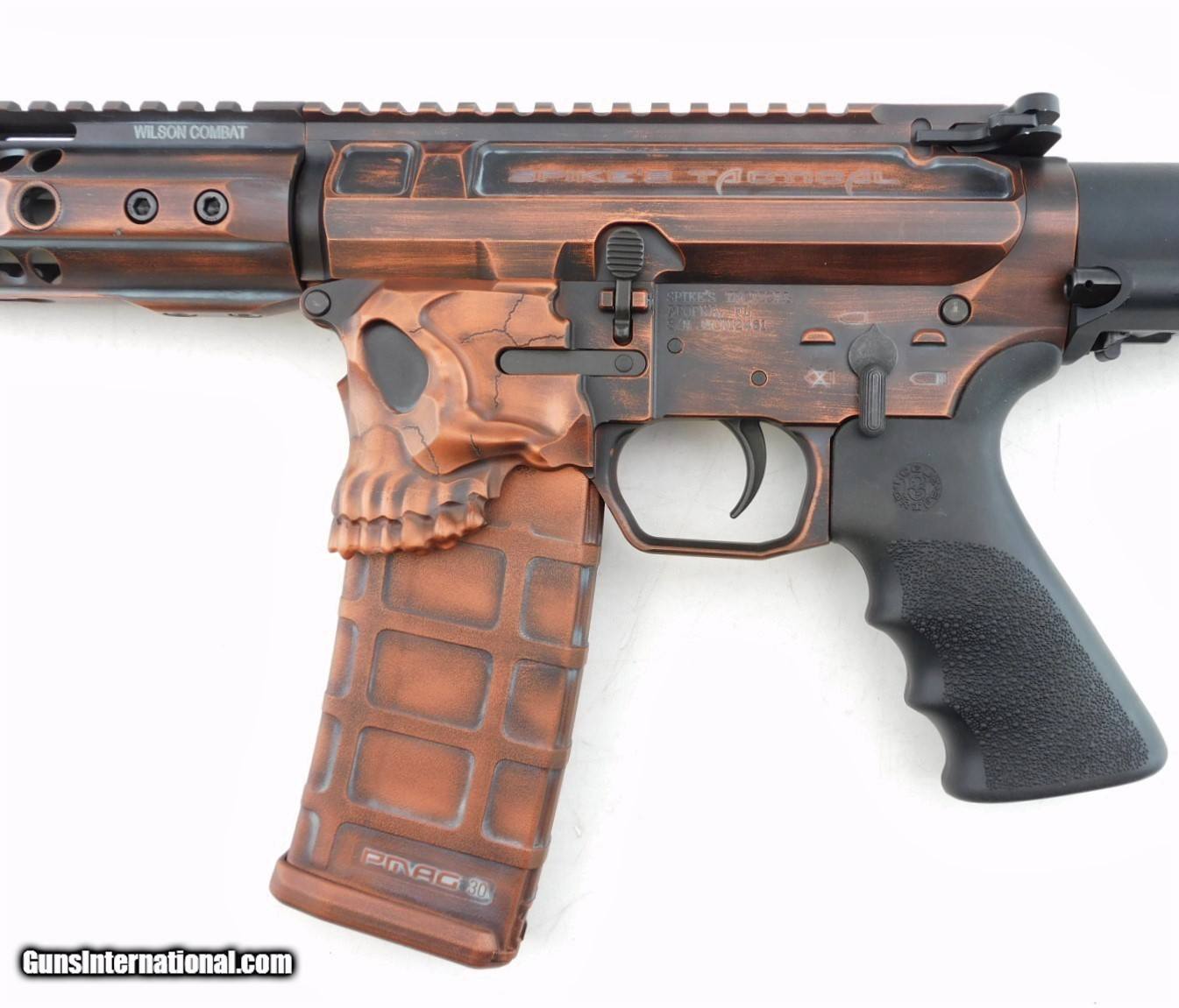 Description: Spikes Tactical The Jack 5.56, 16" bbl with flash hider, bright shiny bore, good rifling, blued finish, bronze finish lower - upper - handguard - 30 round magazine, quad handguard Picatinny top rail - Key Mod at 3 - 6 - 9, black pistol grip and adjustable TROY butt stock. This is a very clean rifle. Add 3% for Credit Card Shipping $35.00 SOLD |