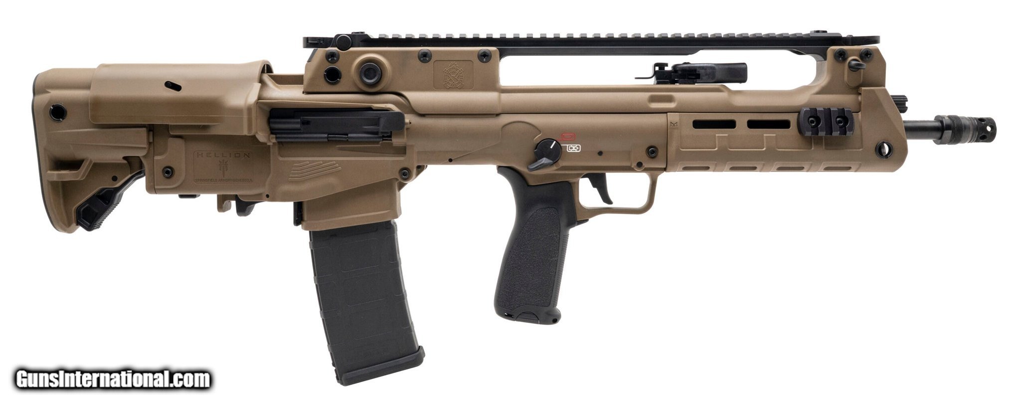 Description: Guns Listing ID: 556692 SN: BFS10848. Modern production, 5.56 NATO with a 16\" threaded barrel w/Hansohn Radial K Brake. Bore is excellent. Semi-auto bullpup rifle with ambidextrous controls, flip-up sights, picatinny optic rail, adjustable stock, black matte finish, and FDE polymer stock. Wear to polymer stock, most notably to the left side ejection port. Overall condition is very good. (R45200) SOLD Manufacturer: SPRINGFIELD ARMORY Model: Hellion Caliber Info: 5.56X45MM NATO Condition: Used - Non-Certified Barrels: 16 BARREL Action: SEMI AUTOMATIC Finish: fde |