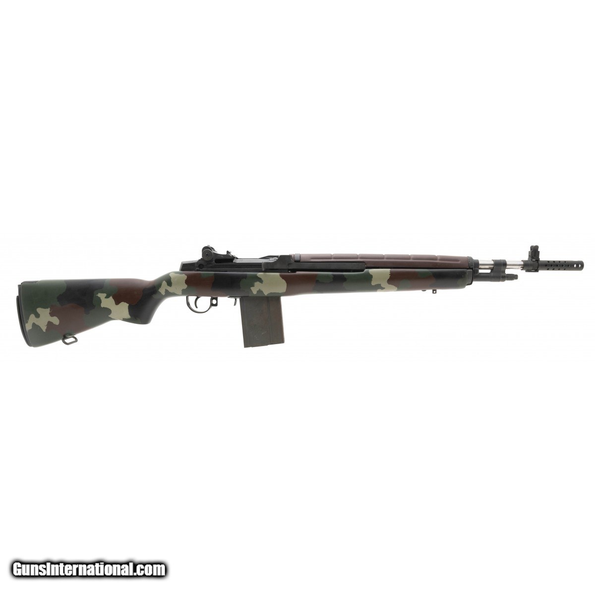 Description: " Modern civilian M14 patterned rifle with stainless Douglas heavy match barrel and glass bedded McMillan stock, patterned after Marine Corps woodland camo. Overall excellent condition. SOLD |