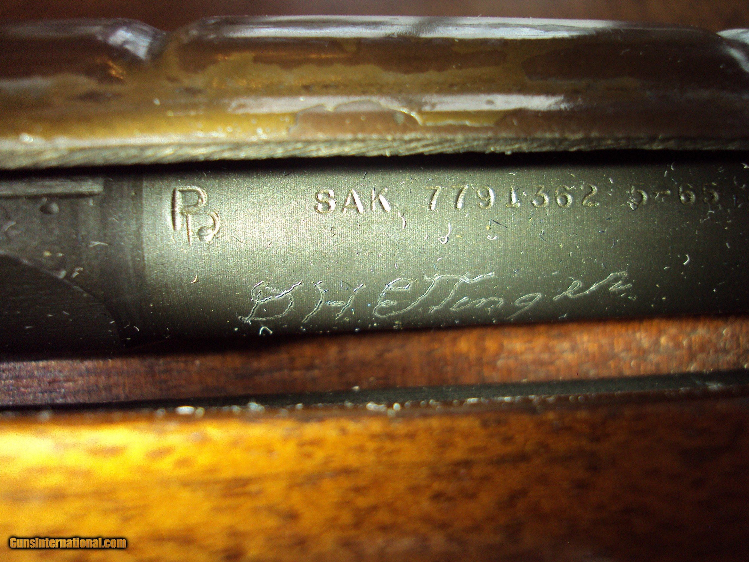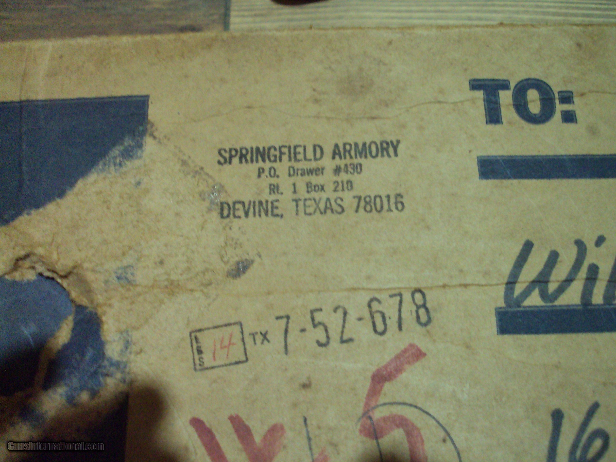 Description: This rifle is a real Devine Texas National Match M1A. I have had this rifle in my personal collection for several years. After purchasing this rifle I called Elmer Balance and he verified it as being authentic. This rifle has an SAK national match barrel. The barrel is engraved RT1 BX 210 DEVINE TEX. The barrel and trigger housing have been signed by the amorer, D H Ettinger. The USGI walnut stock is bedded. The front and rear sights are national match. The flash hider is reamed. Included is the original shipping box from Devine, Texas. Also included is a USGI nylon M14 sling, USGI 20rd magazine and a WMI marked bipod still in the sealed original package. The magazine will not be sent if it is banned in the purchasers location. Please make sure you are not in violation of any local, state or federal laws and of legal age before purchasing. It is your responsibility to know the laws in your area. DO NOTif you are not certain. USPS MO or certified bank checks accepted for payment. Shipping cost is $35.00 without insurance. Insurance can be provided at purchasers expense SOLD Rifle Caliber: .308 Winchester, 7.62x51mm NATO Manufacturer: Springfield Armory - Devine, Tx Model: M1A Serial Number: 0013XX |
