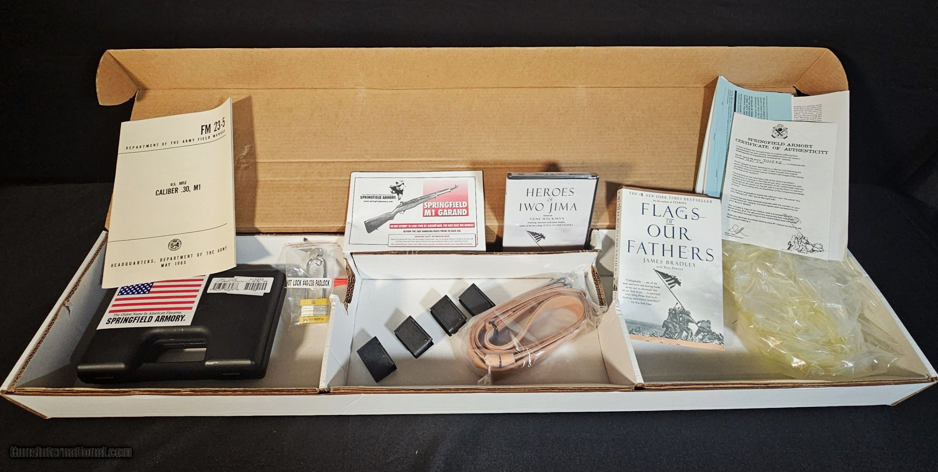 Description: For Sale: Springfield Armory M1 Garand – Iwo Jima Commemorative Edition (.30-06) Limited Edition #1021 of 1945 – New in Box, Complete Presentation Set Offered here is an extraordinary opportunity to acquire a true collector’s treasure: the Springfield Armory M1 Garand Iwo Jima Commemorative Edition, chambered in .30-06 Springfield and crafted as a respectful tribute to one of the most pivotal and heroic moments of World War II. This rifle is more than a commemorative firearm it is a historical artifact honoring the courage and perseverance of the United States Marines who fought on the black sands of Iwo Jima. This example is brand-new, unfired, and preserved exactly as it left the factory. It is Limited Edition #1021 of only 1,945 produced, a number chosen to mark the year of the battle. The rifle is built with an American Walnut stock, beautifully grained and finished to complement the iconic M1 Garand silhouette. In hand or on display, it has the unmistakable presence of a firearm meant to honor history rather than simply replicate it. The 24" barrel and forged steel components maintain the classic Garand proportions, but the artistry applied to this commemorative model elevates it far beyond the ordinary. The engraving work is exceptional, using precise laser etching to create historically significant imagery and text that immediately draws attention: A detailed engraving of the flag raising on Mt. Suribachi, one of the most enduring images of American resolve. The 3rd, 4th, and 5th Marine Division insignias, acknowledging the units that stormed and secured the island A finely rendered Medal of Honor, symbolizing valor and sacrifice. And a solemn, powerful quote from Fleet Admiral Chester Nimitz, encapsulating the extraordinary heroism displayed during the battle These elements are integrated tastefully into the rifle’s wood and metal surfaces, giving it a respectful, commemorative tone without overwhelming the classic Garand lines. This rifle comes with an extensive presentation package, all in new, untouched condition, which further amplifies its collector value: Numbered pine crate presentation case featuring hand-drawn naval artwork, the limited-edition number, and a period photo of the USS Missouri, where Japan formally surrendered Leather sling, ready for display or preservation Four enbloc clips, still sealed and pristine M1 Garand cleaning kit, complete and unused Certificate of Authenticity, verifying its limited-edition status Heroes of Iwo Jima DVD, offering historical context and documentary footage Flags of Our Fathers book, bridging the story of the battle with the iconic photograph that inspired this edition The crate itself is impressive solid pine with historical artwork, hinged and fitted to securely cradle the rifle. When displayed open, it looks like something you’d expect to find in a curated museum exhibit. When closed, it protects the rifle with a sense of reverence and respect befitting the history it represents. From its untouched factory grease to the crispness of the engravings, every part of this set reminds you that it was built to preserve memory, honor service, and celebrate American craftsmanship. This Iwo Jima Commemorative Garand stands tall among limited-edition firearms historically significant, visually stunning, and complete in every way. Whether you collect M1 Garands, WWII commemoratives, Marine Corps memorabilia, or heirloom-quality arms, this example belongs at the center of a serious collection. A pristine, museum-worthy tribute to American heroism complete, untouched, and ready to become a legacy piece for the next generation. Price: $4,000.00 Shipping: $250.00 Buy Now Contact Seller |