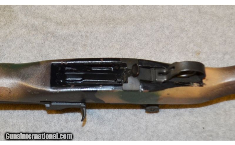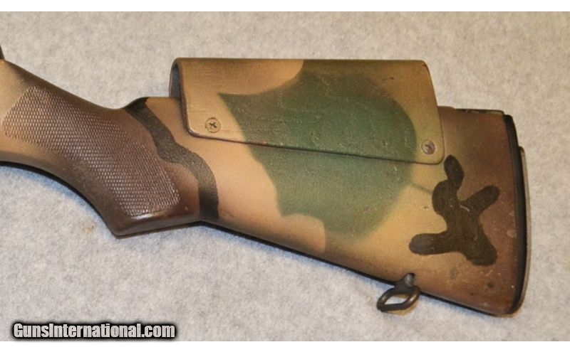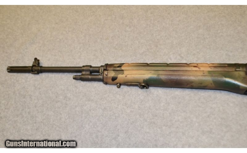Description: This is a Springfield Armory M1A on a painted camo synthetic stock. The stock has a custom cheek riser attached to the stock. The receiver dates to 2003 and the barrel is a Winchester 1963. The bore and rifling look good. Some rust on the butt plate. Comes with box, sling and 1-20 round magazine. SOLD Manufacturer: Circa : 2003 Caliber Info: .308 Win / 7.62x51mm Chambers: Semi auto. Metal Condition: Good. Wood Condition: Good. Bore Condition: Good. Barrels: 22" 1963 Winchester with break. Triggers: Single trigger. Stock: Synthetic camo painted stock. Fore End: Synthetic camo painted stock. Butt Pad: Steel military. Weight: 10 Lbs. Sights: Adjustable rear peep and adjustable post front. Extras: Comes with box, sling, and 1- 20 round magazine. Item Location: Acworth, GA |