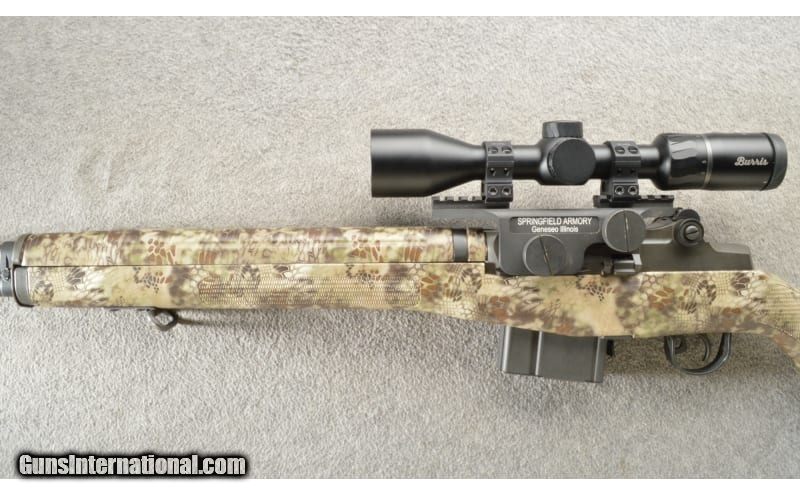Description: Springfield Armory M1A standard chambered in .308 Winchester with a 22" barrel. The M1A features a military front post and an aperture rear sight adjustable for windage and elevation, Burris Fullfield IV 2.5x10x42 with Vortex rings, 2 stage military trigger, Standard flash hider, Hilander camo composite stock, rubber butt pad. Comes in a Springfield soft case with one 10 round magazine and paper work. 7.62 x 51 NATO SOLD Chambers: 10+1 semi auto. Metal Condition: "90%-95%, wear from normal use. Bore Condition: Bright strong bore. Barrels: 22" barrel. Triggers: Single. Stock Dimensions: LOp 13 5/8". Fore End: Synthetic. Butt Pad: Rubber. Weight: 10.5 lbs Sights: "Standard, scope. Item Location: Owatonna, MN |