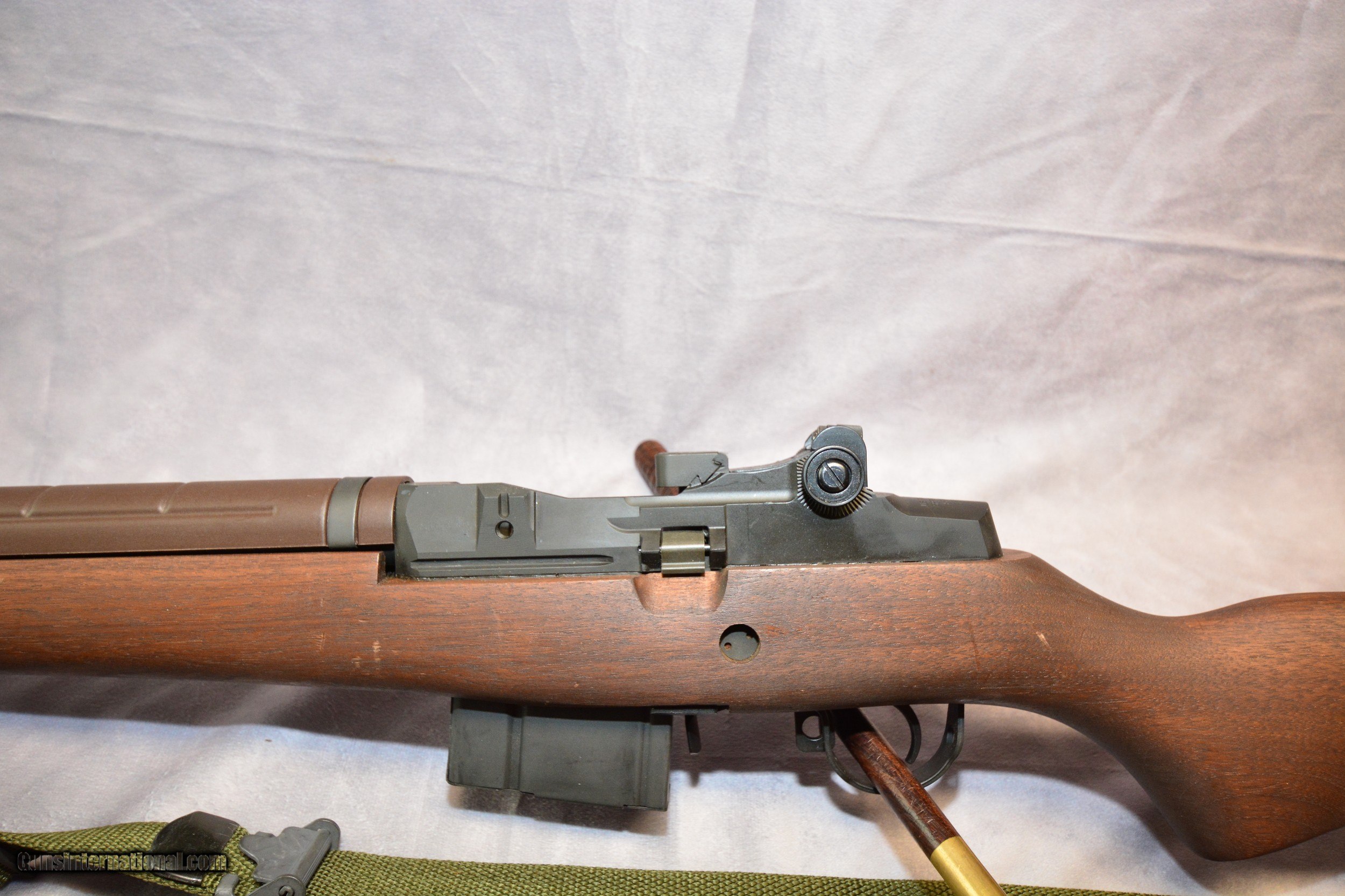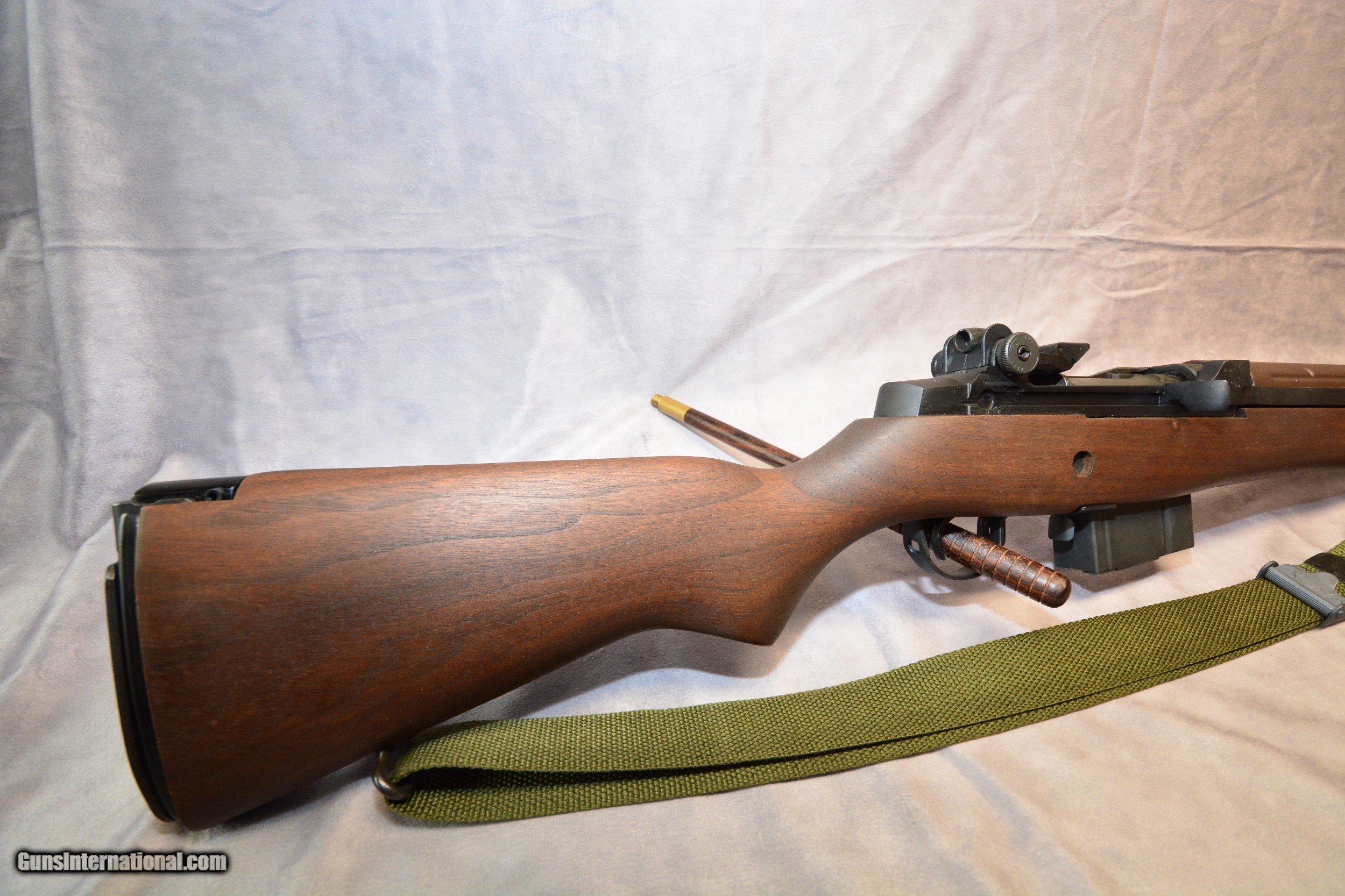 Description: The Springfield M1A is the classic semi-auto only version of the famed M14 rifle used by the U.S. military before the introduction of the M16. The M1A was considered one of the big three along with the HK91 (semi-auto G3) and semi-auto variants of the FAL. The three were popular and in widespread use long before the AR10 rifle came into common use. The original M14 was built as a replacement for the M1 Garand and chambered for the new 7.62 NATO round which was intended to allow the rifle to be more controllable in full-auto fire than the .30-06-chambered T20E2 prototype built during World War 2. That rifle was based on an M1 Garand modified to use BAR Model 1918 20-round magazines. In the end, the M14 still had poor controllability in full-auto fire and was replaced by the M16 beginning in 1968. However, Springfield Armory saw the potential for a semi-auto-only version to become a popular civilian hunting rifle and they began production of the M1A in 1974. It has been a popular rifle ever since, even with the recent surge in AR10 sales. This particular M1A is preowned but has seen little if any use. The action is very clean as is the bore. The wood furniture exhibits light wear. The serial number is 388,355 so it’s a relatively recent production rifle. The features this rifle exhibits indicate this is the M1A National Match model. MSRP for this model is $2485.00 according to the Springfield . The National Match model features a 22” carbon steel NM medium-weight barrel with a 1-in-11” right-hand twist. The front sight is based on the National Match 0.062” blade used in the original National Match M1 Garand rifles used in the ‘60s. The rear sight is a Match-Grade Hooded .0595 Aperture. The rifle comes with a 10-round magazine. This rifle comes with the Springfield-label soft case, as well as the Springfield manual and other factory paperwork. Finally, a copy of the Department of the Army Technical Manual TM 9-1005-223-12 for the M14 rifle is included as well. SOLD Rifle Caliber: .308 Winchester, 7.62x51mm NATO Manufacturer: Springfield Armory Model: M1A National Match Serial Number: 388355 Bore: Rifled Condition: Excellent Barrel Type: National Match Medium Weight Action: Semi-auto, gas piston Triggers: Two-stage NM Stock: Walnut, pistol grip Fore End: Walnut Butt Pad: Metal plate LOP: 13.25 inches (336.55mm) Finish: Matte black Weight: 9 lbs. 8 oz. Sights: Rear – Match-Grade Hooded .0595 Aperture, 1/2 MOA Adj. for Windage and Elevation; Front – National Match 0.62” blade; Sight Radius 27.125 inches (688.975mm) Case: Springfield Armory soft case |