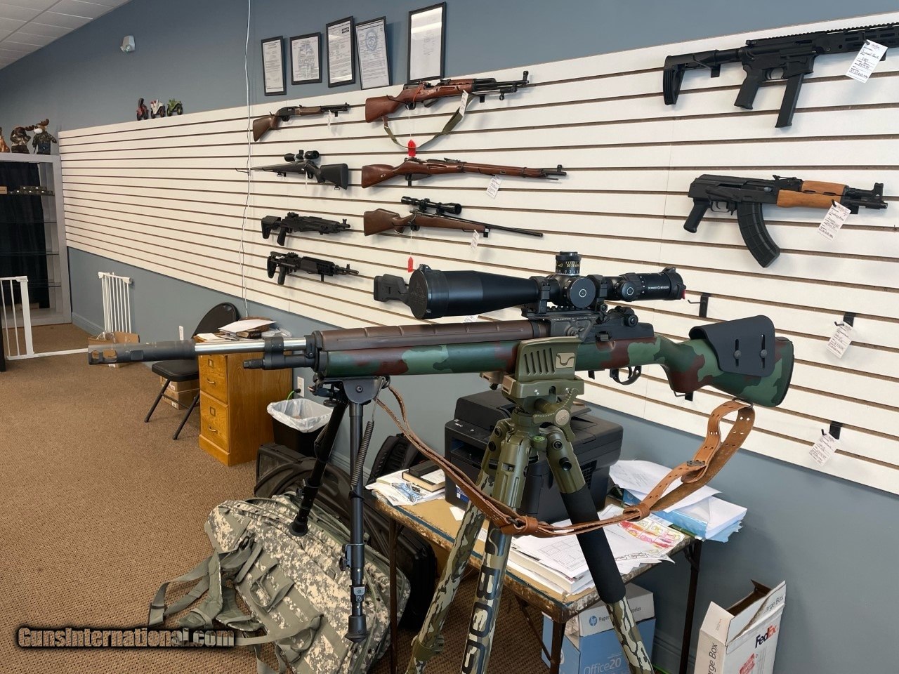 Description: Guns Listing ID: 714284 Caliber: 7.62x51mm NATO (.308WIN) Length: 44.33? Front Sight: National Match .062? Blade Barrel: 22?; Twist 1 In 10?; RH; 6-Groove Douglas Heavy Match; Stainless Steel Weight (with Empty Magazine): 12.2 lbs. Rear Sight: Match Grade Hooded Aperture .0595 w/ 1/2 MOA Adjustment For Both Windage and Elevation Magazines: 1 – 10 Round Parkerized Steel Stock: McMillan Marine Corps Green Camo Schmidt & Bender 5-25x56 PM II Scope, titanium scope mount, bipod, leather sling, SureFire titanium suppressor adapter, case, (15) ten round magazines. (tripod not included) SOLD Manufacturer: SPRINGFIELD ARMORY Model: M1A SUPER MATCH Caliber Info: 7.62X51MM NATO Condition: Used - Non-Certified Barrels: 22 BARREL Finish: CAMOUFLAGE |