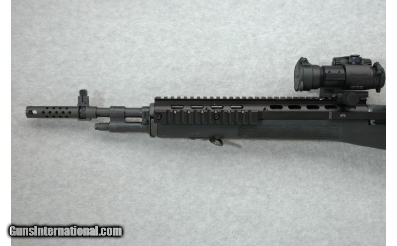 Description: SOLD Caliber Info: .308 Cal. Metal Condition: Good Wood Condition: Black polymer has some light handling marks. Bore Condition: Very good. Barrels: 21 inches with muzzle break. Stock: Checkered black polymer pistol grip. Stock Dimensions: LOP 13 1/2 inches. Fore End: Checkered black polymer. Butt Pad: Black rubber recoil pad. Weight: 9 lbs. 7 oz. with Aimpoint Optic mounted. Sights: Aimpoint Patrol Rifle Optic. Blade front with protective ears. Adjustable peep rear. Top and side accessory rails. Extras: With Hard Case Item Location: Noblesville, IN |