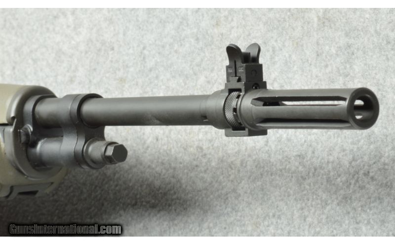 Description: The Springfield Armory M1A is a civilian version of the M14 rifle designed and manufactured by Springfield Armory, Inc., beginning in 1974. The term "M1A" is a proprietary title for Springfield Armory's M14-pattern rifle. SOLD Manufacturer: Modern Manufacture. Caliber Info: .308 Win. Chambers: Semi auto with one five round detachable magazine. Metal Condition: Excellent. Wood Condition: Excellent. Bore Condition: Excellent. Barrels: 22 inch round rifled barrel with flash hider. Triggers: Two stage trigger. Stock: Two synthetic stocks included one is green, one is black. the green stock is a J. Allen Enterprises JAE-100 stock. Stock Dimensions: 13 7/8 inch length of pull. Fore End: Part of the synthetic stock, has an adjustable Picatinny rail on the bottom of the fore-end. Butt Pad: Black rubber recoil pad. Weight: 13 pounds. Sights: Winged blade sight at the muzzle, standard peep sight at the receiver adjustable for elevation and windage. Scope base obscures the peep sight picture. Extras: One five round magazine, the original black synthetic Springfield stock, soft case and box are also included. Item Location: Berlin, MA |