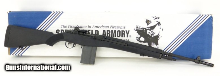 Springfield M1A .308 Win caliber rifle. Loaded model with 22” barrel, National Match sights, and one 20 round magazine.