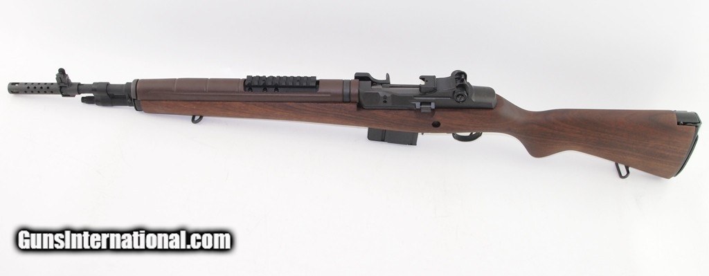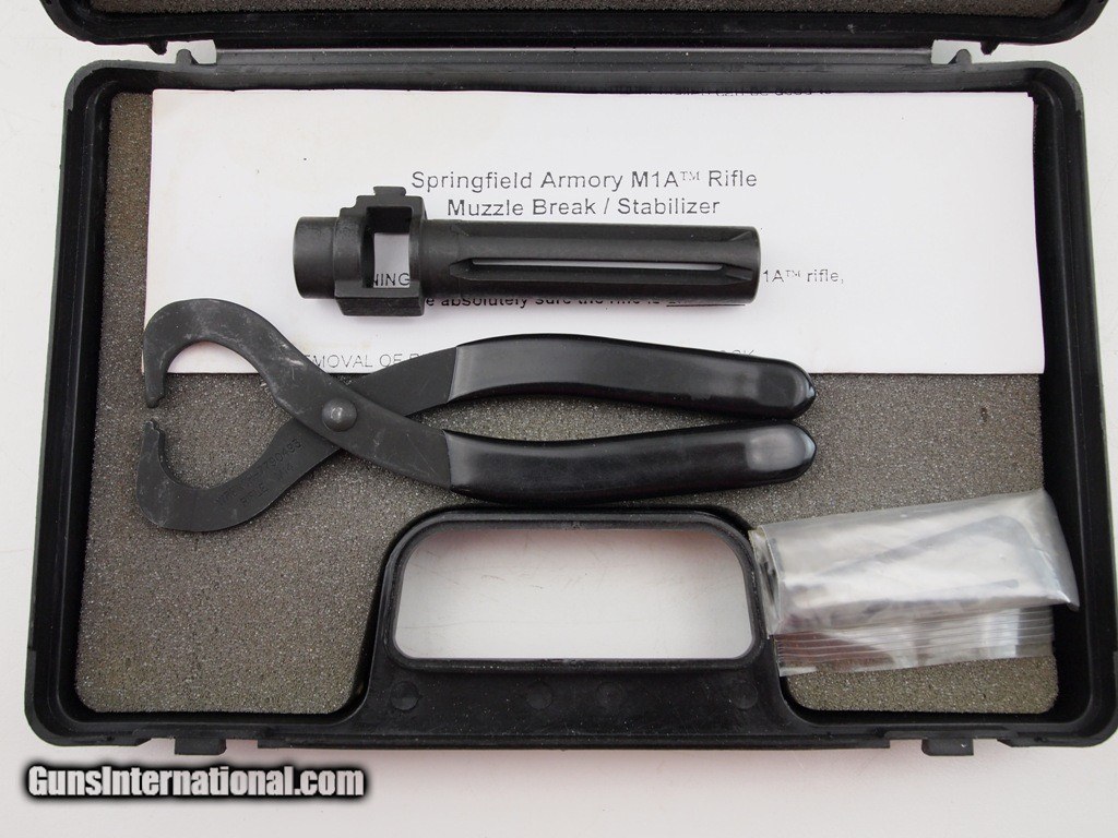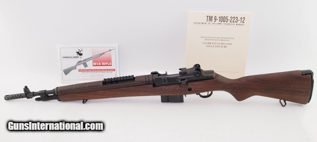 Description: Pristine Springfield M1A Scout .308 WSoftCase, 18" bbl, bright shiny bore, good rifling, black finish, adjustable rear peep sight, blade in wings front sight, flash hiders (1 - standard 1 - CA compliant), smooth hardwood grip stock, brown synthetic cover, mid barrel rail, sling loops, black metal compartment butt plate, and one 10 round magazine. Add 3% for Credit Card Shipping $35.00 SOLD |