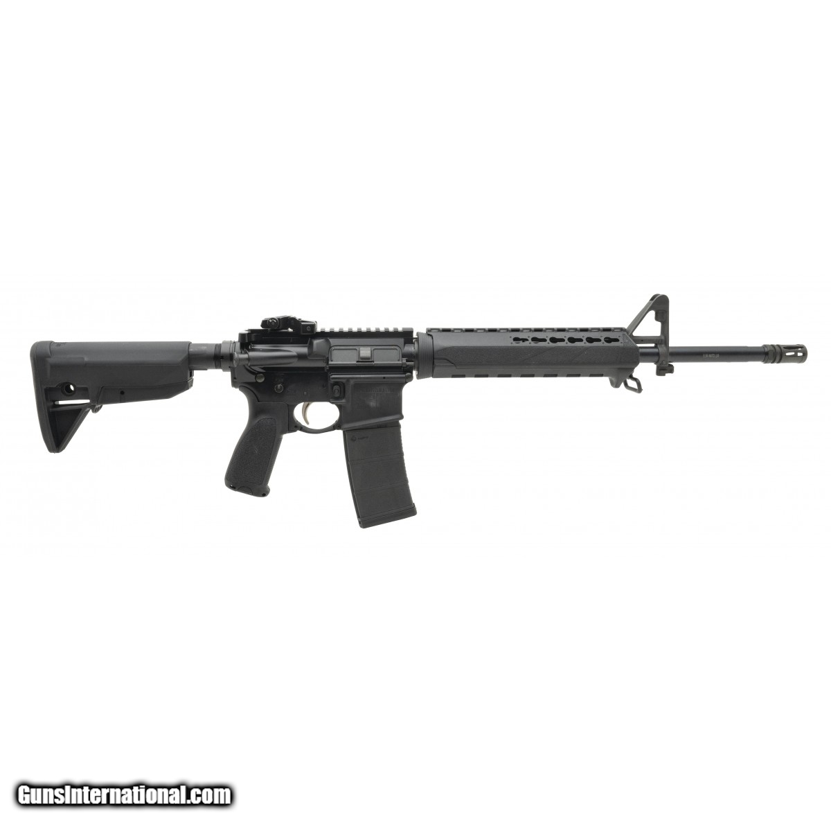 Description: " SN: ST205948. Modern Production. .556 NATO with an 16"" barrel. Bore is excellent. Black rifle with BCM stock, pistol grip and hand guard, with flip up rear sights. Overall excellent condition. Consignment. SOLD |