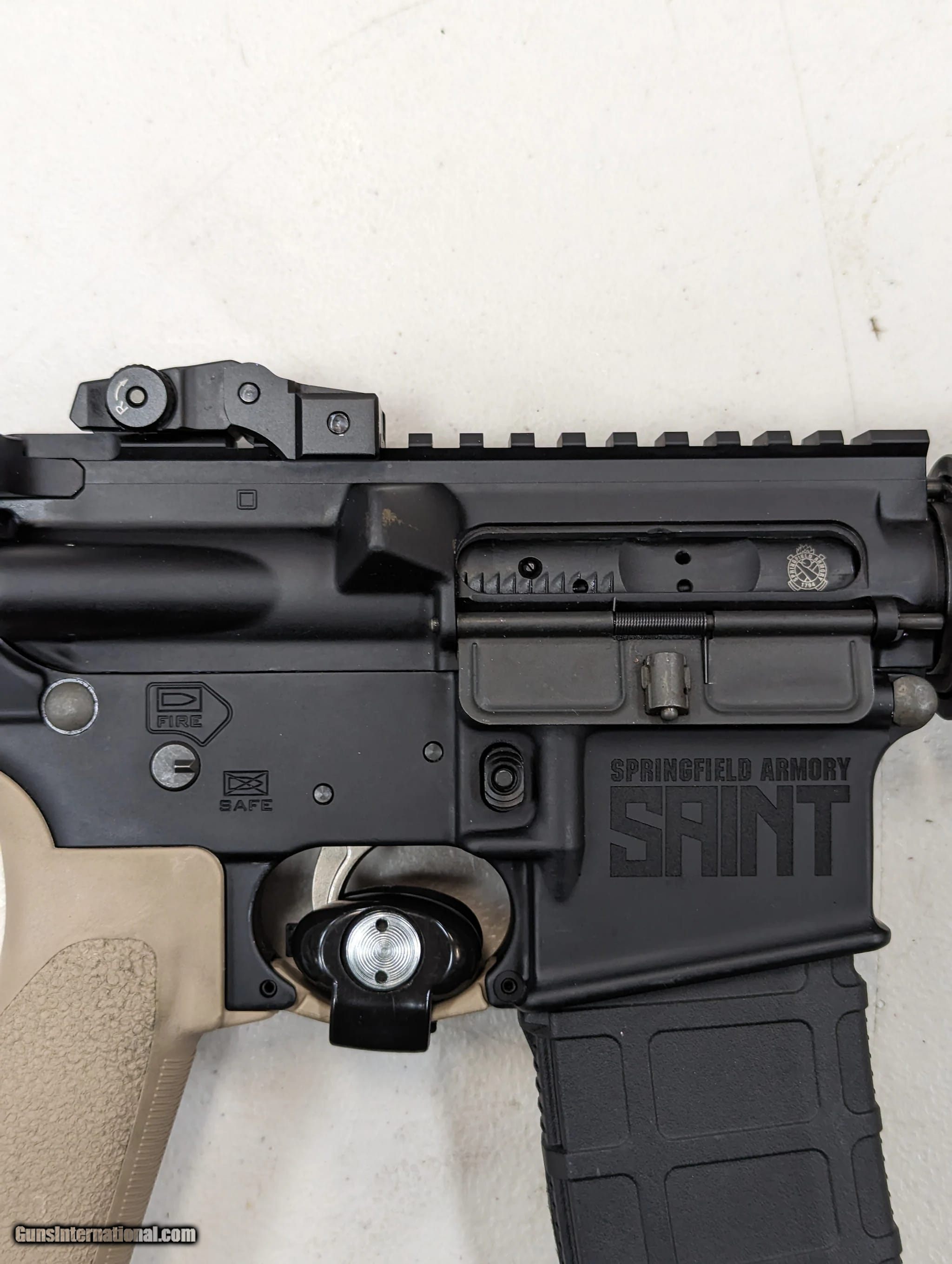 Description: Guns Listing ID: 887509 Two tone AR from Springfield Armory in the US. Comes with one magazine and stock(detached but still included). 8/10 condition as it shows moderate wear to the finish. (A11007107) SOLD Manufacturer: SPRINGFIELD ARMORY Model: SAINT Caliber Info: 5.56X45MM NATO Condition: Used - Non-Certified Barrels: 16 BARREL Finish: BLACK/FDE |