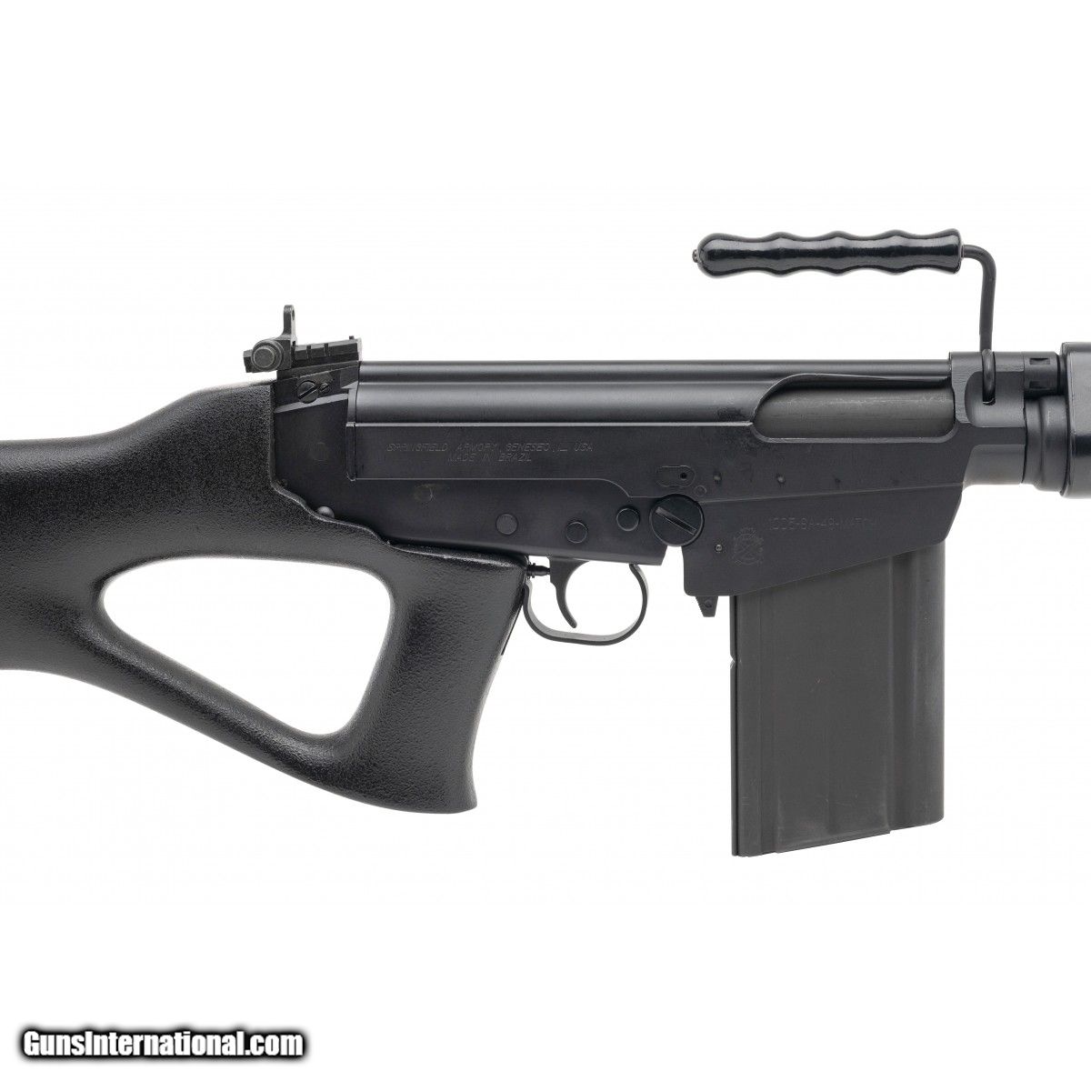 Description: " SN: SA-15700. Semi-automatic rifle made by Springfield c. 2000. 20"" barrel chambered for 7.62 NATO. Ban-era model with faux muzzle device and thumbhole stock. Excellent condition overall with typical finish wear at the ejection port. Features elevation adjustable rear diopter sight and integrated carry handle. Bore is excellent. Action functions correctly including safety. Austin location. SOLD |