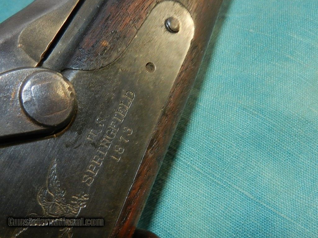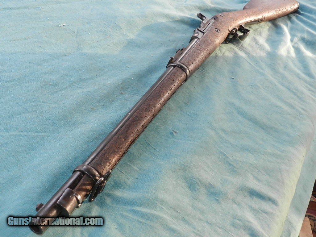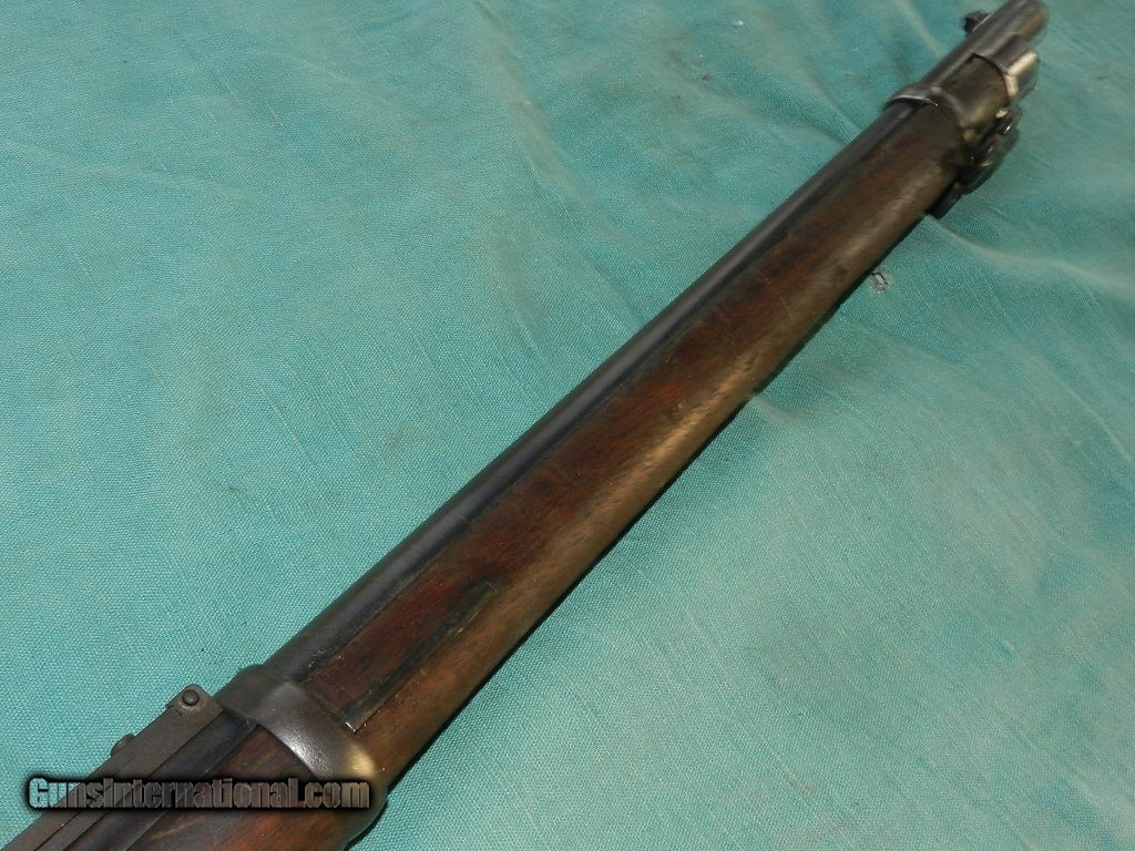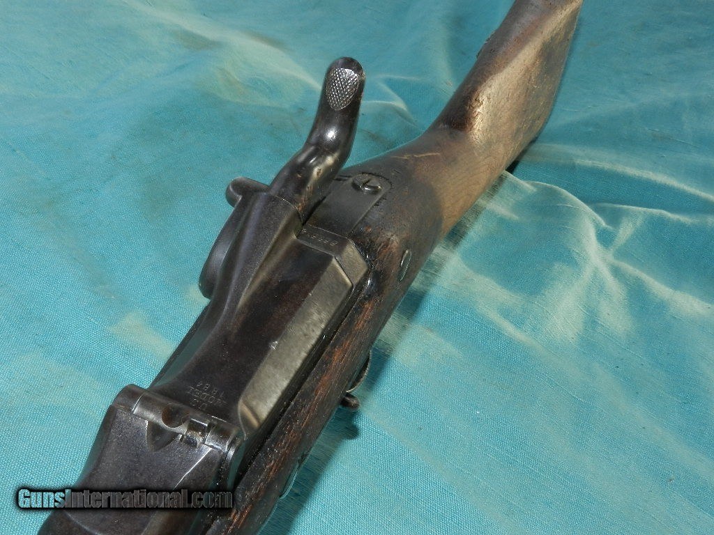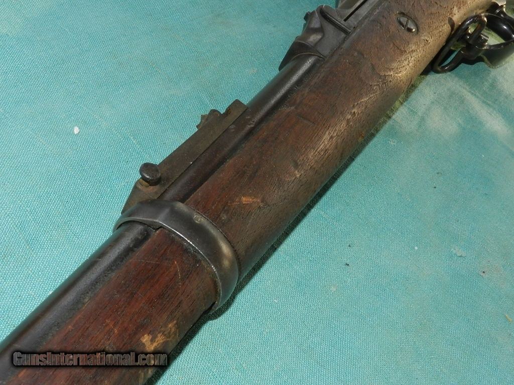 Description: SOLD Intriguing guns seem to come my way often and this gun is no exception with an 1873 lockplate and 1884 breech. This carbine may have hung in a GAR hall as the raised butt-stock letters are common for display purposes. The barrel is 24" long and the bore is clean, shiny, and rifled. Much armory blue on the lock and lesser on the action, and the action works well. The walnut stock has dryness and several field handling dings. Has an 1884 rear sight base but the ladder is missing, and the rear barrel band has the 1884 sight groove. Looks like the nose cao got dinged as it's off center slightly and the sliver of wood is missing on the left side behind the nose cap. The buttplate at the top has rust pitting where the buttplate had sit someplace with dampness. Front barrel band is the 1884 stacking type. Overall a very colorful trapdoor. When buying a gun always have it examined by a competent gunsmith before shooting. To buy a gun from me you must get a direct email for me, with details, and shipping cost. We don’t have a web site .I prefer money orders or a check. Item ships when funds come in. I try to keep guns affordable, which means I make less money than most dealers. You won’t get altitude sickness, or nose bleed, with my prices! I consistently have the best selection of older guns If you attempt to buy, you must still contact us for details . Best to email to buy. Sometimes a local person can stop buy and purchase before the gun is removed. Sometimes not home to get calls. Some guns are required shipment to a gun dealer near you for a transfer to you when it arrives. Otherwise many older or black powder guns ship to your door. With the widest selection of older guns at great prices, We don’t have a store, and sell on the internet only. I’m easy to get along with. Thank You[JB1] [JB1] SOLD Antique: Yes |
