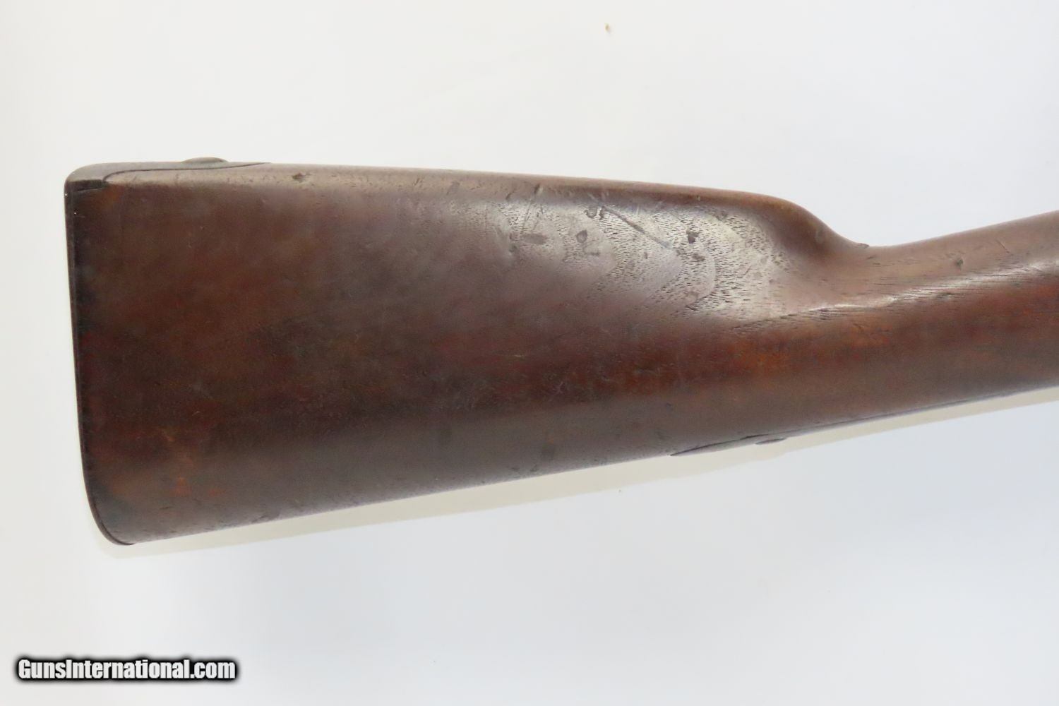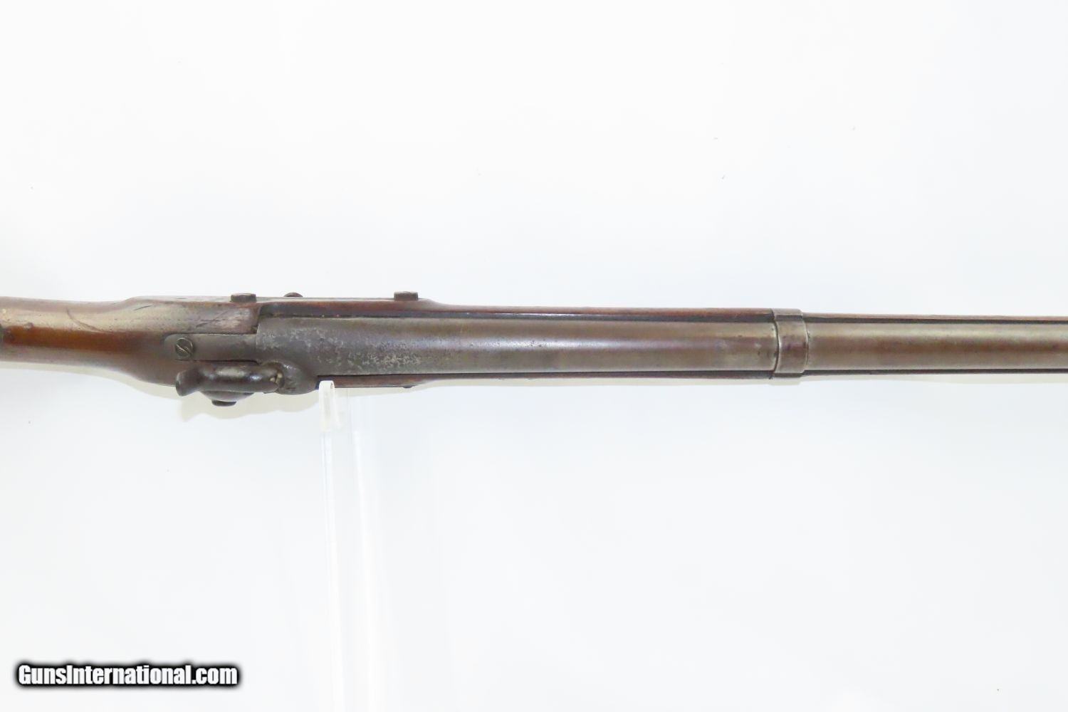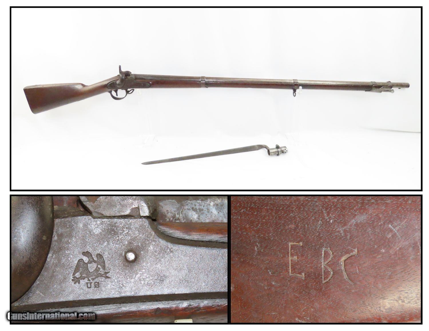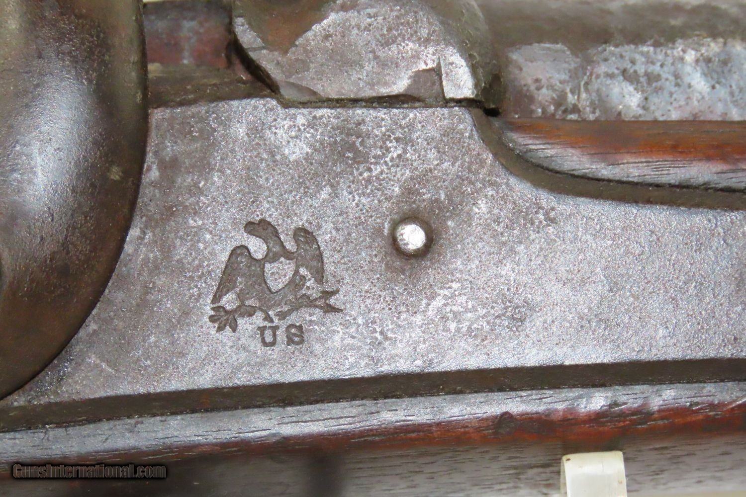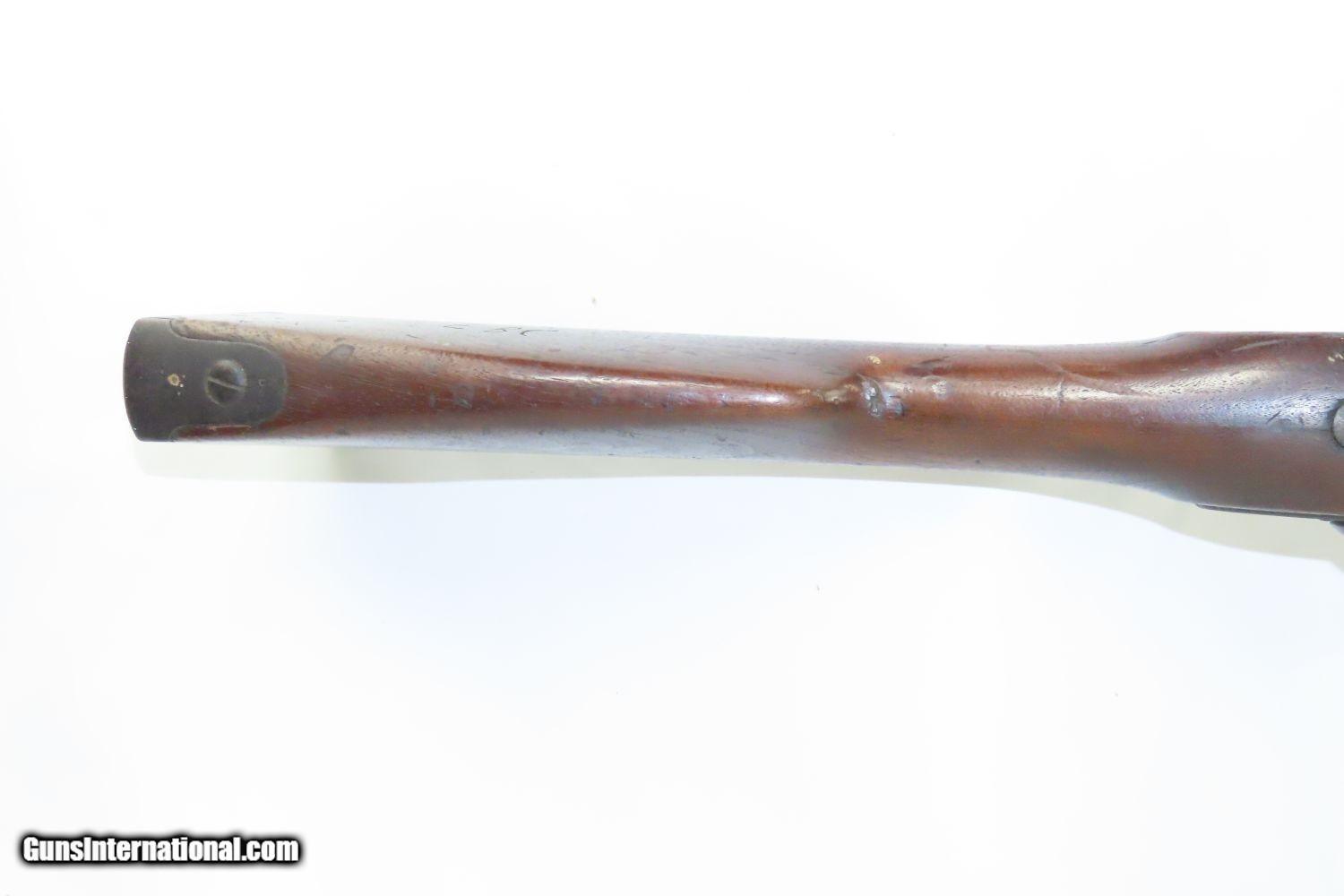 Description: Antique SPRINGFIELD ARMORY Model 1842 Percussion .69 Cal. Smoothbore MUSKET Civil War Musket with BAYONET! Here we present a Springfield Armory U.S. Model 1842 Percussion Musket, manufactured circa 1854 in Springfield, Massachusetts. From the period of 1844 until 1855, about 275,000 Model 1842 muskets were manufactured at the Springfield and Harpers Ferry Armories, along with some being made by private providers commissioned to assist in production. Along with usage during the Mexican-American War in 1846 through 1848, these would have been in the hands of local militia all over the antebellum United States and used by both combatants at the outbreak of the American Civil War. Sights were not included in the smoothbore’s design, but arrived later as the muskets were rifled later in its life. The Model 1842 was the first regulation percussion musket to be manufactured at both Springfield and Harpers Ferry Armories, as well as the first to be produced by both national armories with fully-interchangeable parts. These were also the last .69 caliber smoothbore arms to be produced by the U.S. government. The overall condition is good. Robust action. Good bore. The stock is solid throughout, despite a small chip missing from the right side of the barrel tang. “EBC” is hand carved on the left side of the buttstock. The bayonet is in good shape. “1854” dated lock. “711RC” is stamped on the left side plate. Here is a wonderful example for the American Civil War collection. Own the original! This is a legitimate antique and not a reproduction. Barrel is 42 inches. Caliber: .69 Percussion Overall condition as seen in photos. Very Fast. Very Safe. FREE SHIPPING WORLDWIDE. Delivered directly to your door by express mail! Guaranteed AUTHENTIC & Includes CERTIFICATE OF AUTHENTICITY. ancestryguns $1865 #210392 SOLD Antique: Yes |