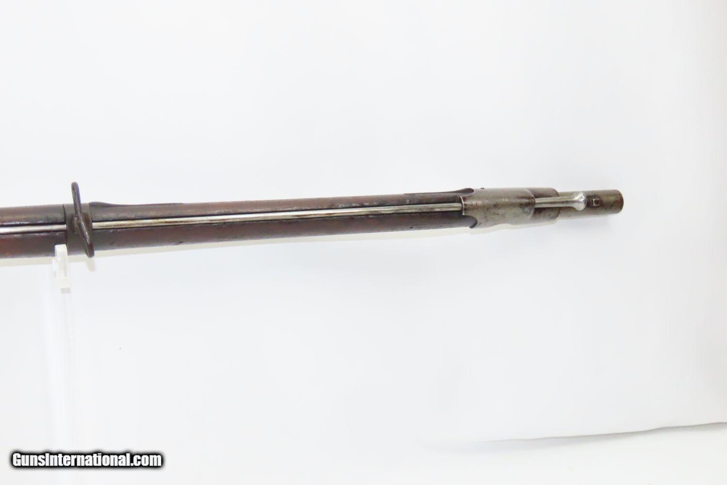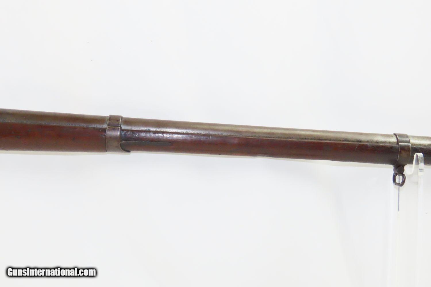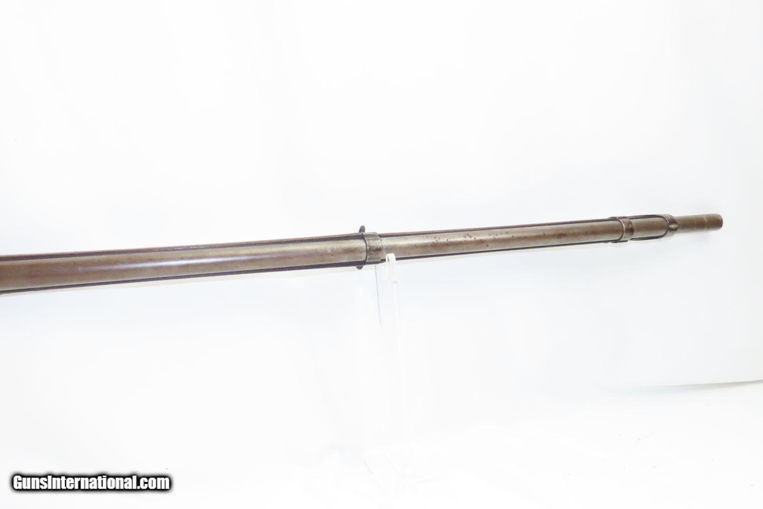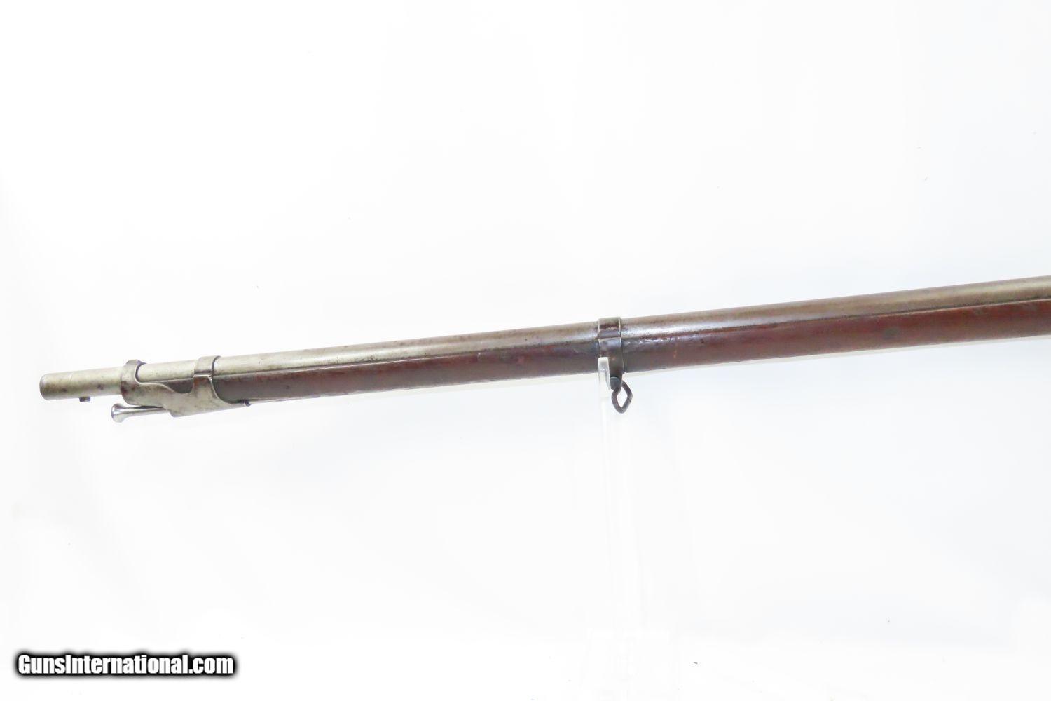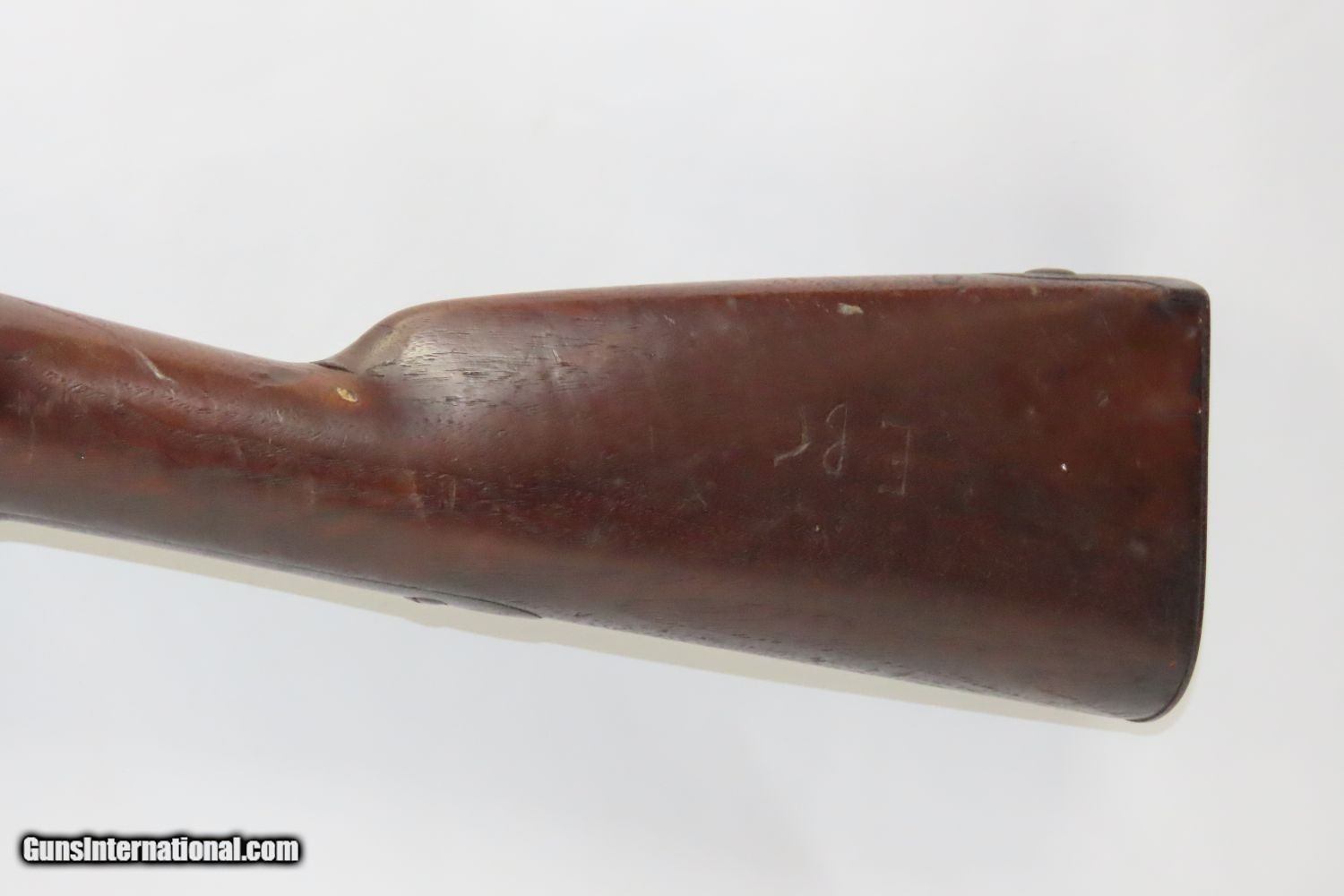 Description: Antique SPRINGFIELD ARMORY Model 1842 Percussion .69 Cal. Smoothbore MUSKET Civil War Musket with BAYONET! Here we present a Springfield Armory U.S. Model 1842 Percussion Musket, manufactured circa 1854 in Springfield, Massachusetts. From the period of 1844 until 1855, about 275,000 Model 1842 muskets were manufactured at the Springfield and Harpers Ferry Armories, along with some being made by private providers commissioned to assist in production. Along with usage during the Mexican-American War in 1846 through 1848, these would have been in the hands of local militia all over the antebellum United States and used by both combatants at the outbreak of the American Civil War. Sights were not included in the smoothbore’s design, but arrived later as the muskets were rifled later in its life. The Model 1842 was the first regulation percussion musket to be manufactured at both Springfield and Harpers Ferry Armories, as well as the first to be produced by both national armories with fully-interchangeable parts. These were also the last .69 caliber smoothbore arms to be produced by the U.S. government. The overall condition is good. Robust action. Good bore. The stock is solid throughout, despite a small chip missing from the right side of the barrel tang. “EBC” is hand carved on the left side of the buttstock. The bayonet is in good shape. “1854” dated lock. “711RC” is stamped on the left side plate. Here is a wonderful example for the American Civil War collection. Own the original! This is a legitimate antique and not a reproduction. Barrel is 42 inches. Caliber: .69 Percussion Overall condition as seen in photos. Very Fast. Very Safe. FREE SHIPPING WORLDWIDE. Delivered directly to your door by express mail! Guaranteed AUTHENTIC & Includes CERTIFICATE OF AUTHENTICITY. ancestryguns $1865 #210392 SOLD Antique: Yes |