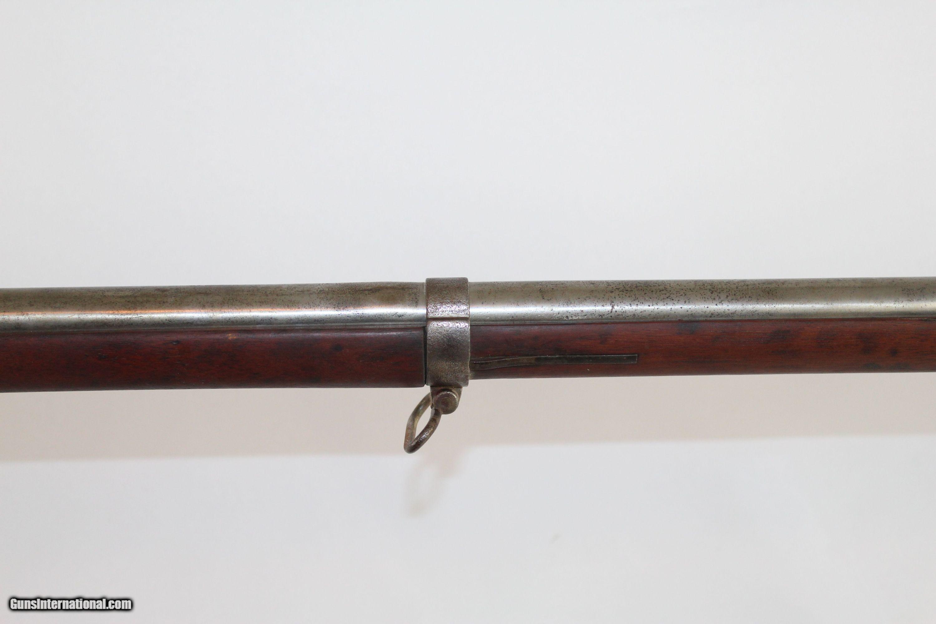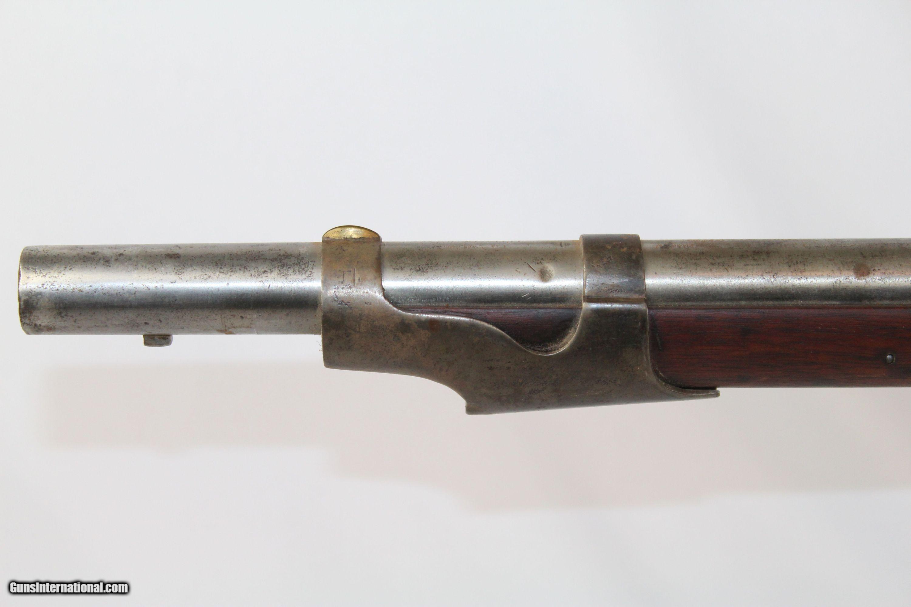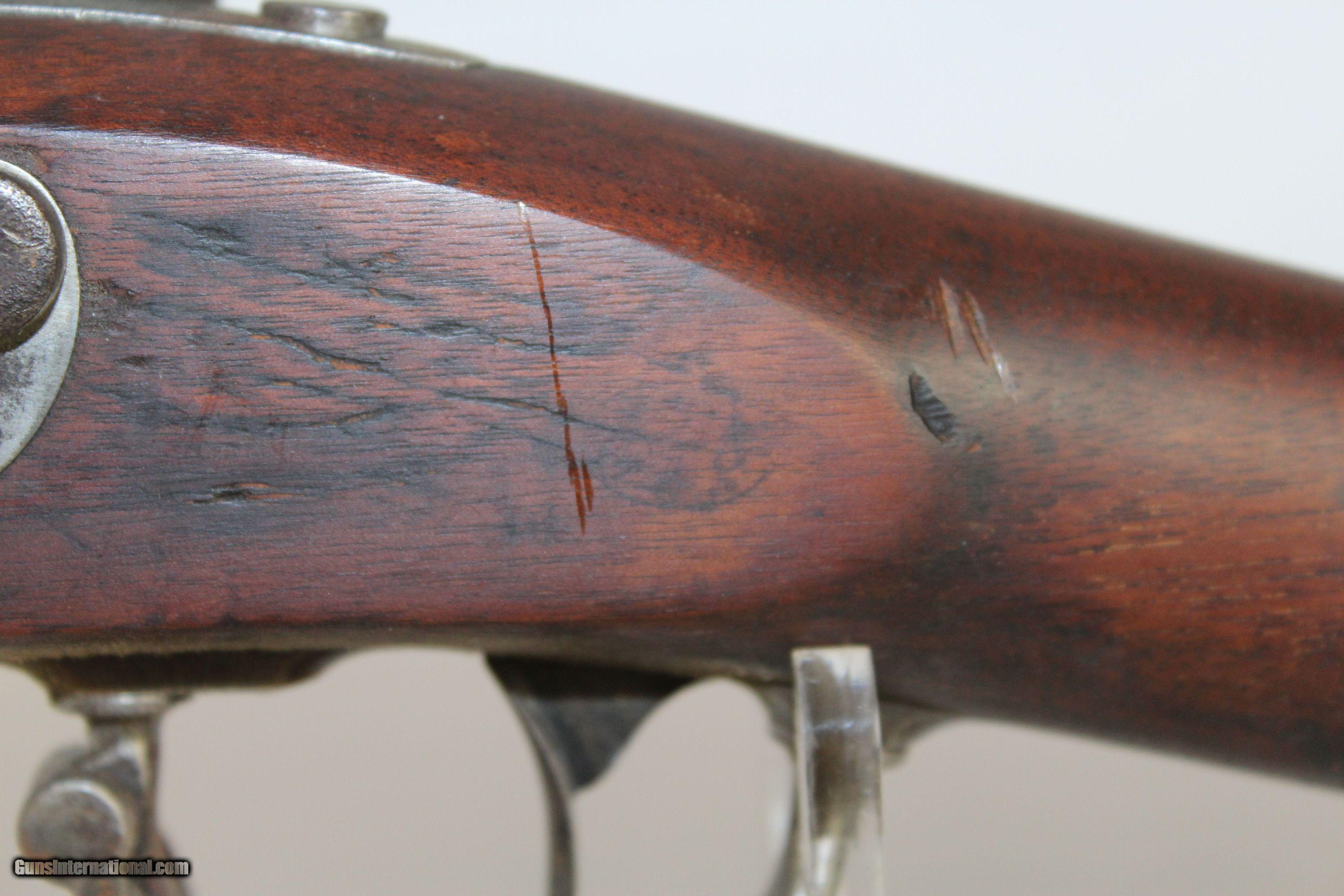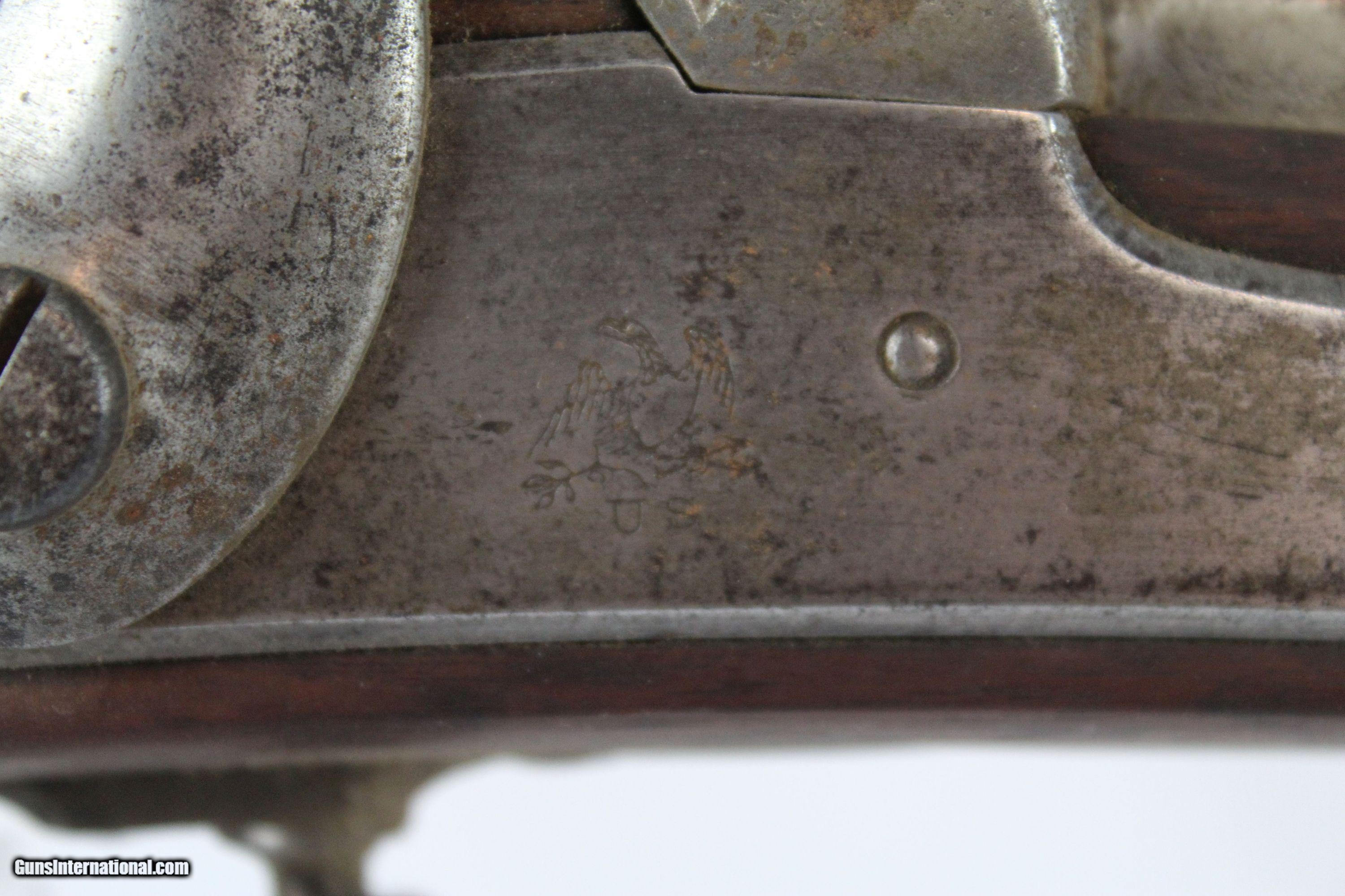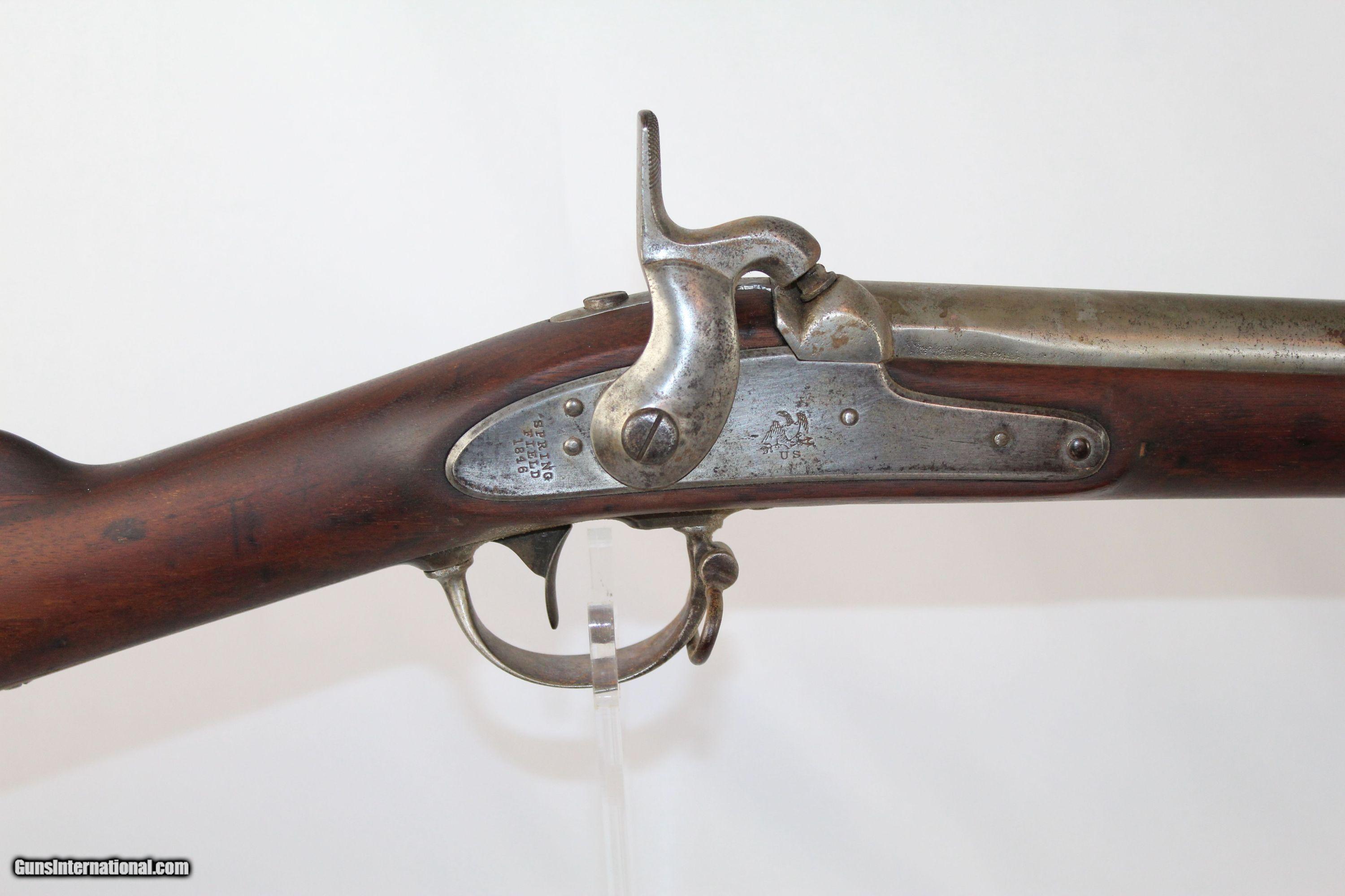 Description: Antique U.S. Springfield Model 1842 Percussion Musket Mex-Am War Dated 1846 Last .69 American Smoothbore Here we present an antique U.S. Springfield Model 1842 Percussion Musket, made at Springfield Armory in 1846. The Model 1842 was a crossroads in U.S. firearms history. This was the last .69 caliber smoothbore produced by the U.S. It was also the first regulation model musket to be made in the percussion system and the first U.S. musket made at both Springfield and Harpers Ferry national arsenals. By no means were these out of service during the American Civil War. Soldiers from North & South would have carried these into battle. This example is Mexican-American War dated. The lock is marked “SPRING/FIELD/1846” with a federal eagle over “U.S.” The left side of the barrel is marked with view and proof marks. The remnants of an inspector cartouche is on the left side of the stock. A little bit of graffiti on the stock. Comes with the bayonet. The overall condition is good. The metal surfaces have been cleaned to bright. The markings are clear and legible. The walnut stock is refinished and solid. The bore is untouched and should clean up. The action is strong. Own the original! This is a legitimate antique and not a reproduction. Barrel is 42 inches. Caliber: .69 Percussion Overall condition as seen in photos. Very Fast. Very Safe. FREE SHIPPING WORLDWIDE. Delivered directly to your door by express mail! Guaranteed AUTHENTIC & Includes CERTIFICATE OF AUTHENTICITY. ancestryguns $875 #5069 SOLD Antique: Yes |