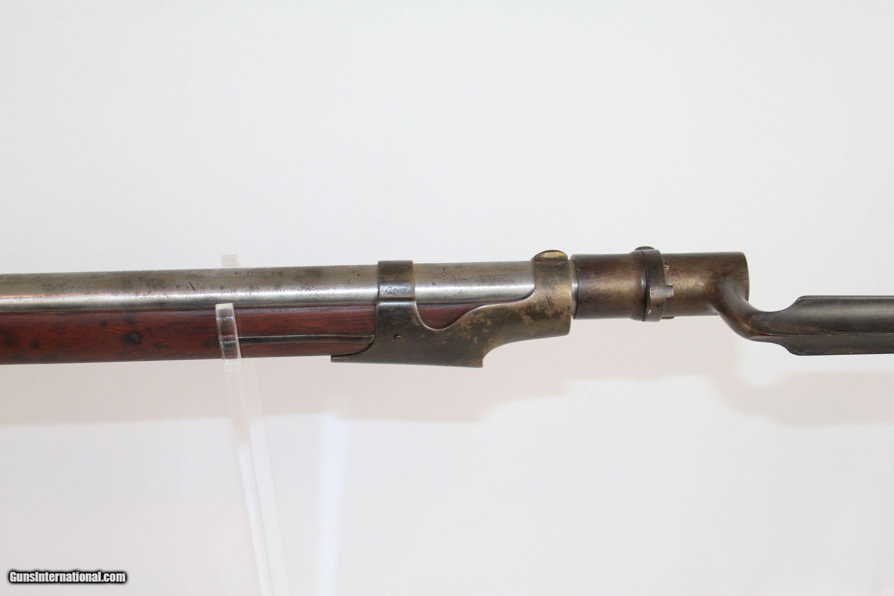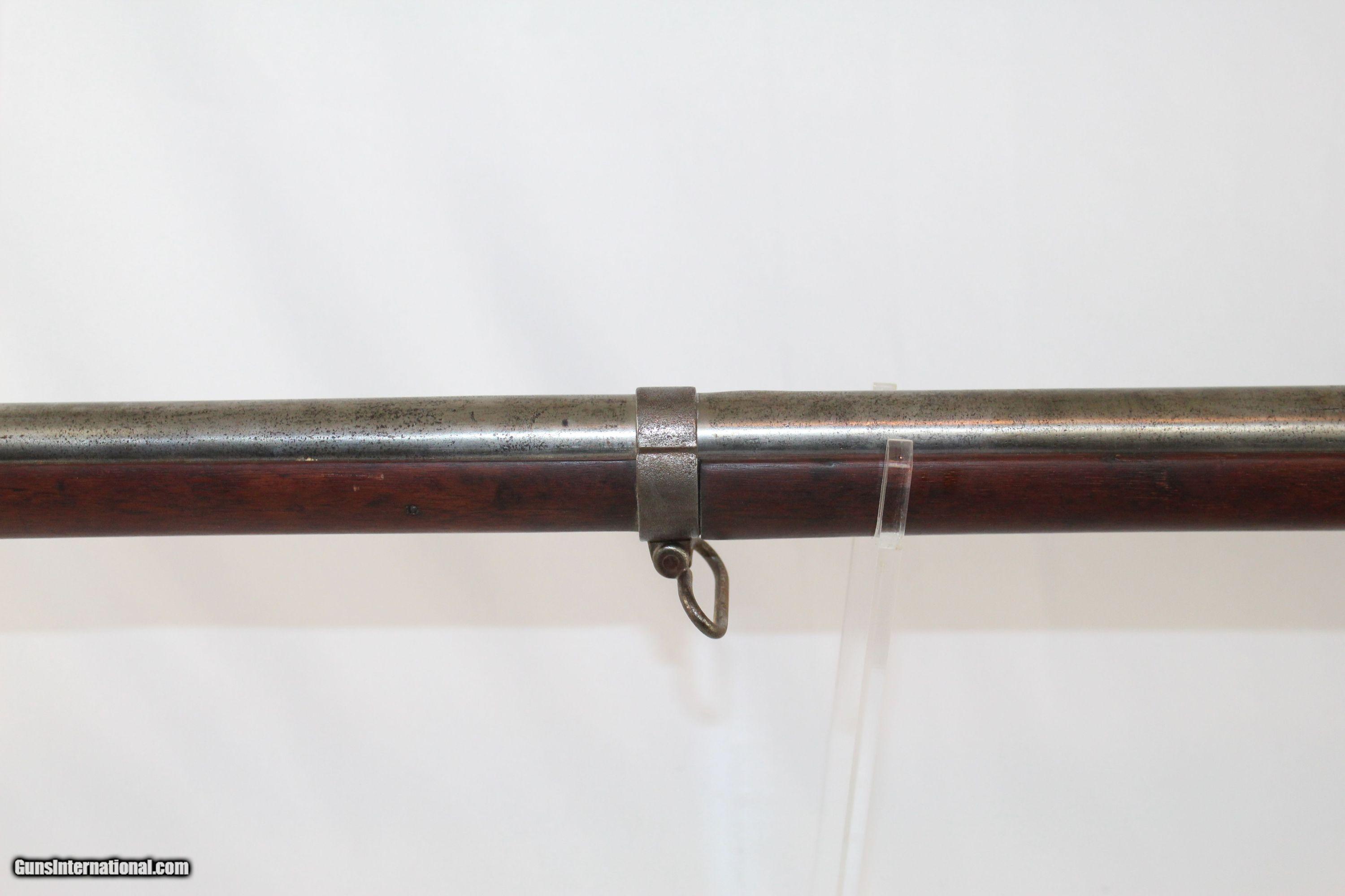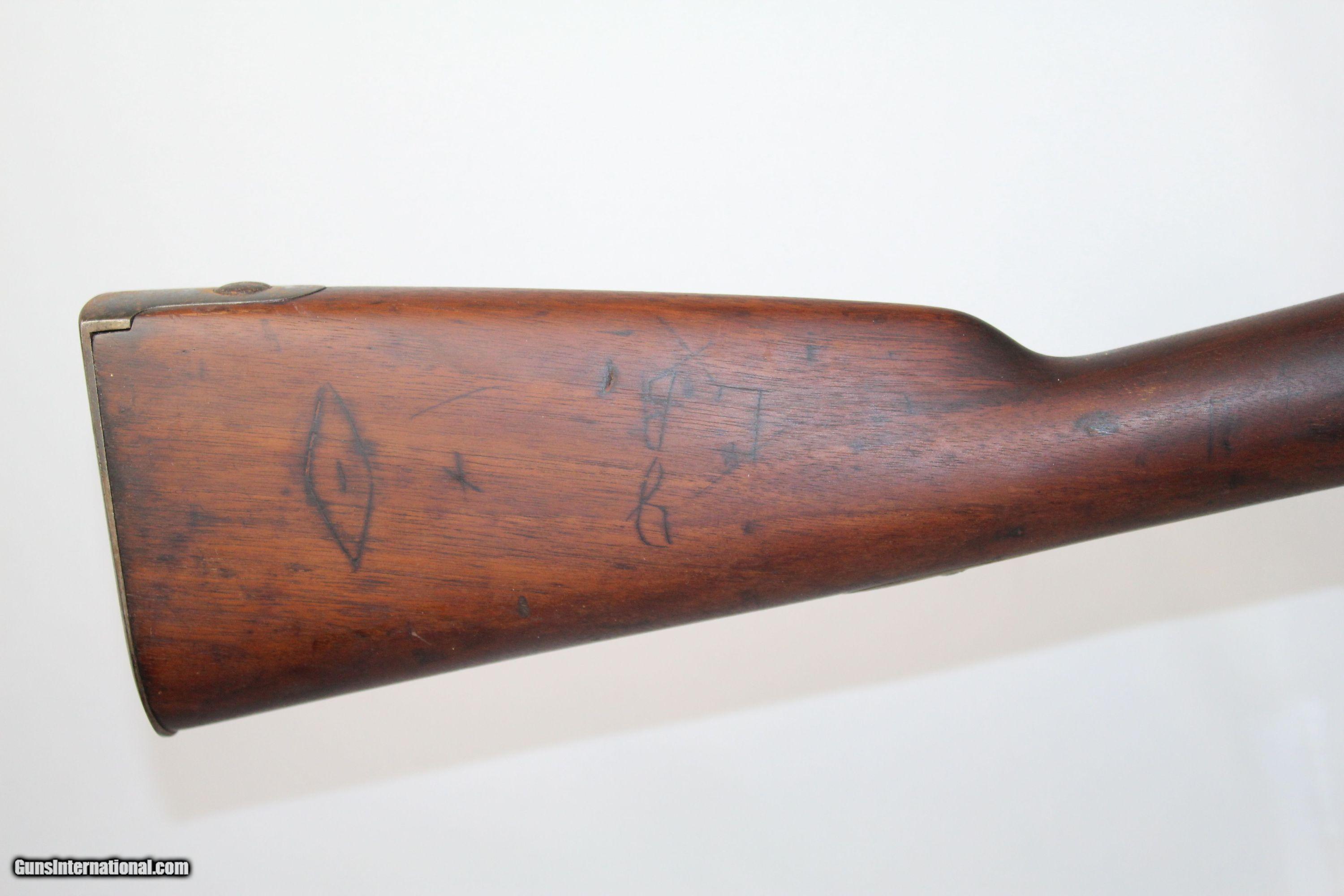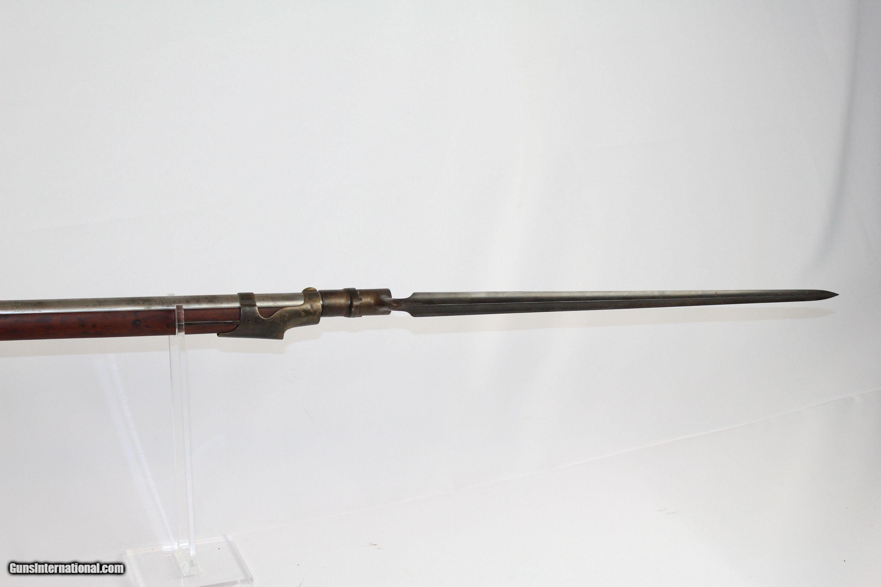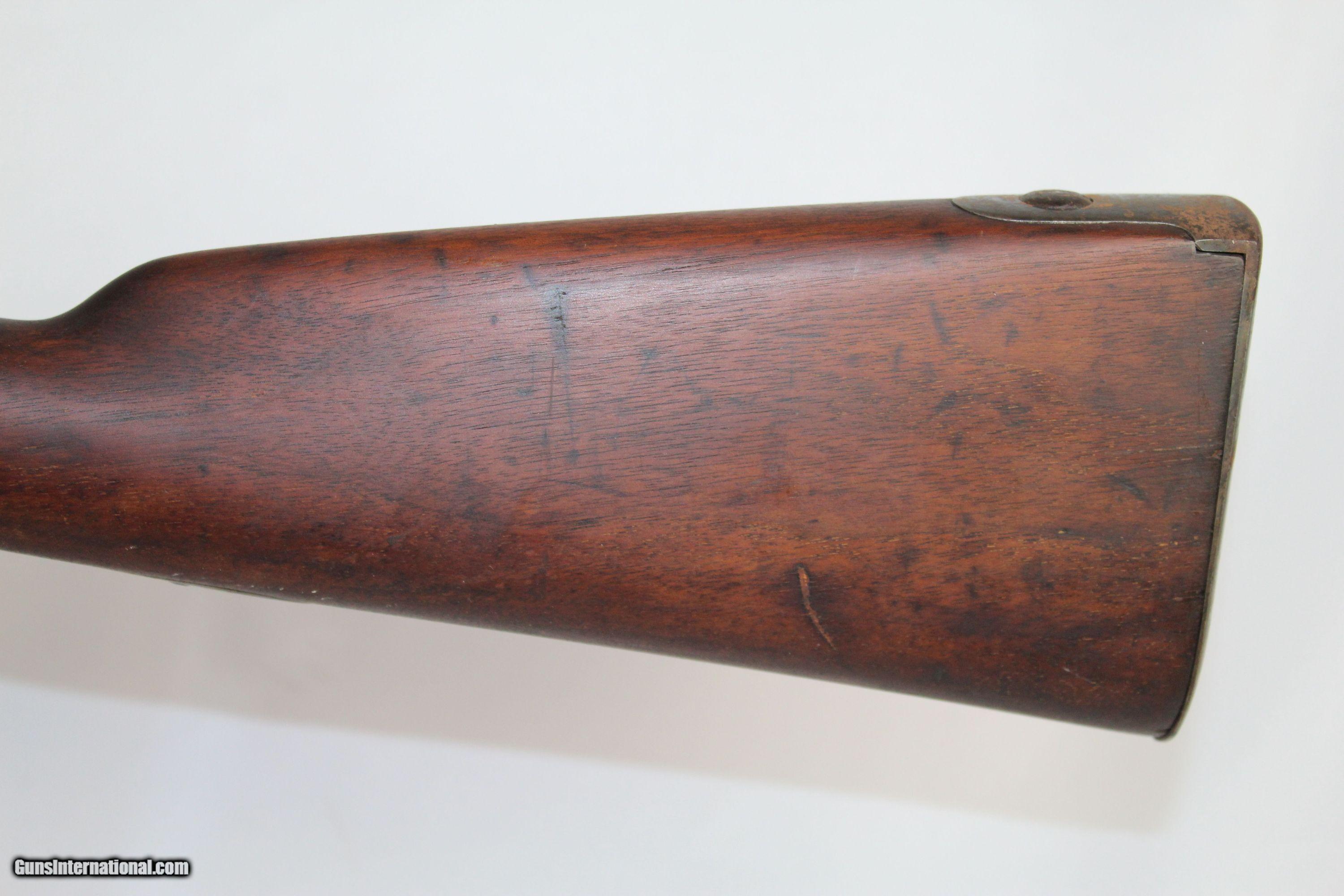 Description: Antique U.S. Springfield Model 1842 Percussion Musket Mex-Am War Dated 1846 Last .69 American Smoothbore Here we present an antique U.S. Springfield Model 1842 Percussion Musket, made at Springfield Armory in 1846. The Model 1842 was a crossroads in U.S. firearms history. This was the last .69 caliber smoothbore produced by the U.S. It was also the first regulation model musket to be made in the percussion system and the first U.S. musket made at both Springfield and Harpers Ferry national arsenals. By no means were these out of service during the American Civil War. Soldiers from North & South would have carried these into battle. This example is Mexican-American War dated. The lock is marked “SPRING/FIELD/1846” with a federal eagle over “U.S.” The left side of the barrel is marked with view and proof marks. The remnants of an inspector cartouche is on the left side of the stock. A little bit of graffiti on the stock. Comes with the bayonet. The overall condition is good. The metal surfaces have been cleaned to bright. The markings are clear and legible. The walnut stock is refinished and solid. The bore is untouched and should clean up. The action is strong. Own the original! This is a legitimate antique and not a reproduction. Barrel is 42 inches. Caliber: .69 Percussion Overall condition as seen in photos. Very Fast. Very Safe. FREE SHIPPING WORLDWIDE. Delivered directly to your door by express mail! Guaranteed AUTHENTIC & Includes CERTIFICATE OF AUTHENTICITY. ancestryguns $875 #5069 SOLD Antique: Yes |