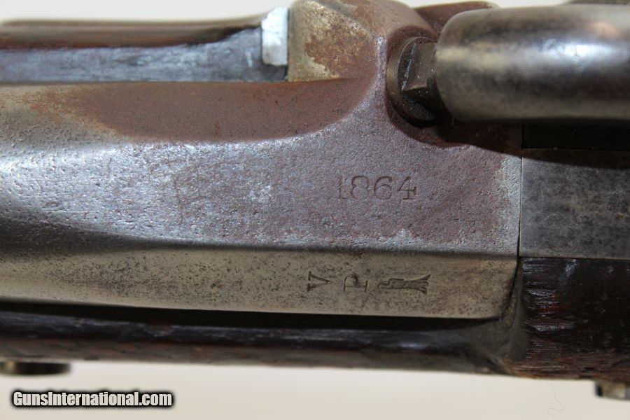Description: CIVIL WAR Antique SPRINGFIELD 1861 Rifle-Musket Primary Infantry Weapon of the Union Here we present an antique Springfield Armory Model 1861 Civil War Rifle-Musket, made in 1864 in Springfield, Massachusetts. The M1861 is representative of the “everyman’s” rifle during the war. About 1.5 million rifle-muskets were made in the U.S., over 800,000 of which were made by the Springfield Armory. This was the last hurrah of the rifle-musket as arms development and tactics rapidly advanced during the short period of the American Civil War. Nevertheless, the 1861 represented new technology as it was made for use with the Minié ball, a hollow based, conical projectile that was small enough to quickly push down the muzzle of a rifled barrel and expanded to create a good gas seal unlike a solid, round ball. Almost immediately after the war, the US military switched from the old muzzle loading type weapons to the newer breech loading rifles, bringing an end to the musket as a standard frontline firearm in American history. The lock is marked “U.S./SPRINGFIELD” and dated “1864” on the tail of the lock. The left side of the barrel is marked “V/P” and Eagle Head. The overall condition is near fine. The colors are dark with age on the steel. The markings are clear. The walnut stock shows the handling marks you would expect from an issued Civil War musket and the whole remains smooth and solid. The bore is in great shape with nice rifling. The action is excellent. Here is a fantastic piece of American history from the Civil War! Own the original! This is a legitimate antique and not a reproduction. Barrel is 40 inches. Caliber: .58 Percussion Overall condition as seen in photos. Very Fast. Very Safe. FREE SHIPPING WORLDWIDE. Delivered directly to your door by express mail! Guaranteed AUTHENTIC & Includes CERTIFICATE OF AUTHENTICITY. ancestryguns $1950 #8620 SOLD Antique: Yes |