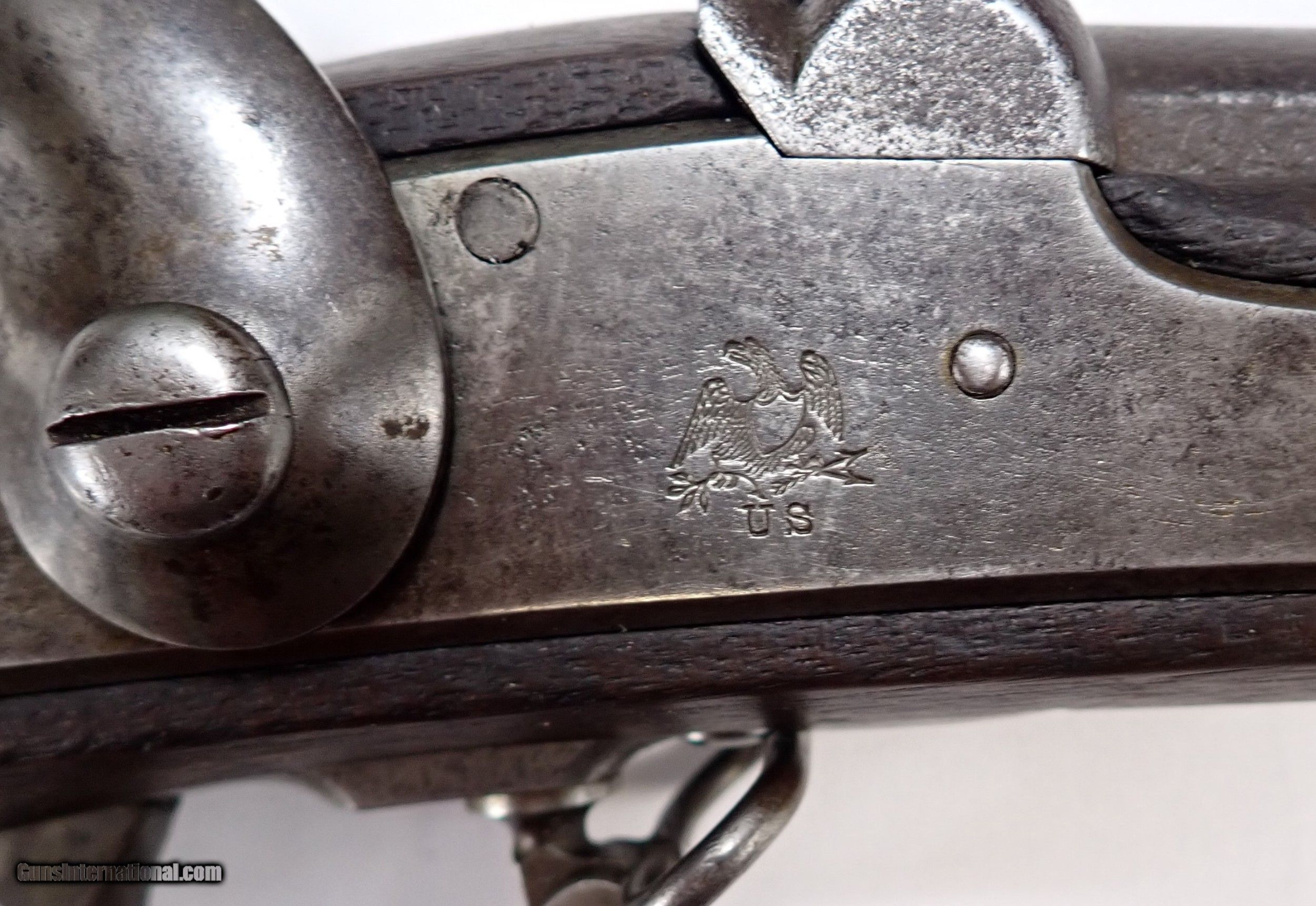 Description: The US Model 1842 Musket was a .69 caliber musket manufactured and used in the United States during the 19th Century. The Model 1842 was the last U.S. smoothbore and the first rifled musket. The Model 1842 has a .69 caliber smoothbore barrel and rifled barrel twas 42 inches (110 cm) in length. The Model 1842 had an overall length of 58 inches (150 cm) and a weight of ten pounds (4,5 kg). A great emphasis was placed on manufacturing processes for the Model 1842. It was the first small arm produced in the U.S. with fully interchangeable (machine-made) parts. Approximately 275,000 Model 1842 muskets were produced at manufactured at the Springfield and Harper's Ferry armories between 1844 and 1855. Both the original smoothbore version and the modified rifled version of the Model 1842 were used in the American Civil War. The smoothbore version was produced without sights (except for a cast one on the barrel band). When Model 1842 muskets were modified to have rifled barrels, sights were usually added at the same time as the rifling. This is one on the last 1842 produced and marked the advent of the rifled muskets. The Model 1842 was used in both the Mexican War and the Civil War. The introduction of rifling combined with the invention of the Minnie Ball change the face of war across the globe. $1475 + Shipping SOLD Antique: Yes Rifle Caliber: .69 Manufacturer: Springfield Armory Model: M1842 Barrel Length: 42 Bore: Well defined rifling Condition: Very Good Metal Condition: Worn appropriately Wood Condition: Very Good Bore Condition: Moderate corrosion Action: Percussion Manufacture Date: 1855 Item Location: MD |