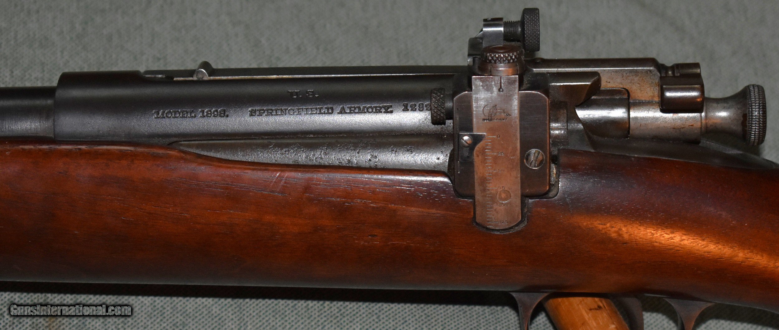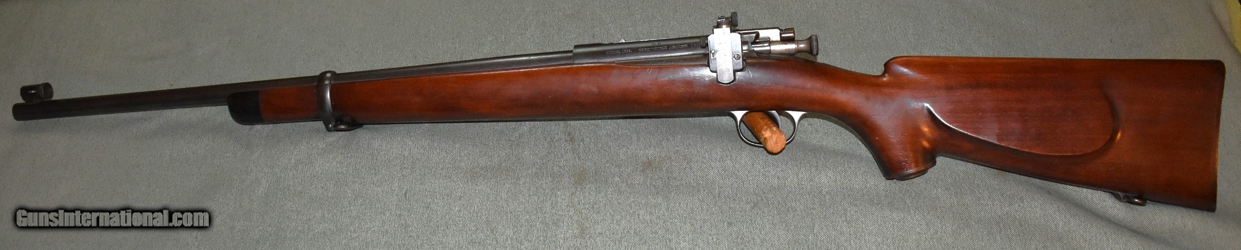 Description: Extremely rare Springfield Arsenal built 22 gallery or target rifle built in 1905. According to the 1998 Flayderman catalog,these rifles were built using the 22 practice Krag Jorgenson actions and Stevens Pope barrels purchased directly from Stevens and were shipped to shooting teams and individual shooters. This was not a military rifle but a separate commercial venture.This rifle has Lyman rear peep sight and a Lyman target front sight. The bore is mint and the rifle retains 98% of the original blue and wood finishes. A really rare addition to any Krag collection. C&R eligible. SOLD Rifle Caliber: .22 Long Rifle Manufacturer: Springfield Armory Model: Gallery Practice/target Serial Number: 12321 Barrel Length: 22 Condition: excellent Metal Condition: excellent Wood Condition: excellent Bore Condition: mint Barrel Type: Stevens-Pope Action: Single shot bolt action Butt Pad: factory steel butt Manufacture Date: 1905 |