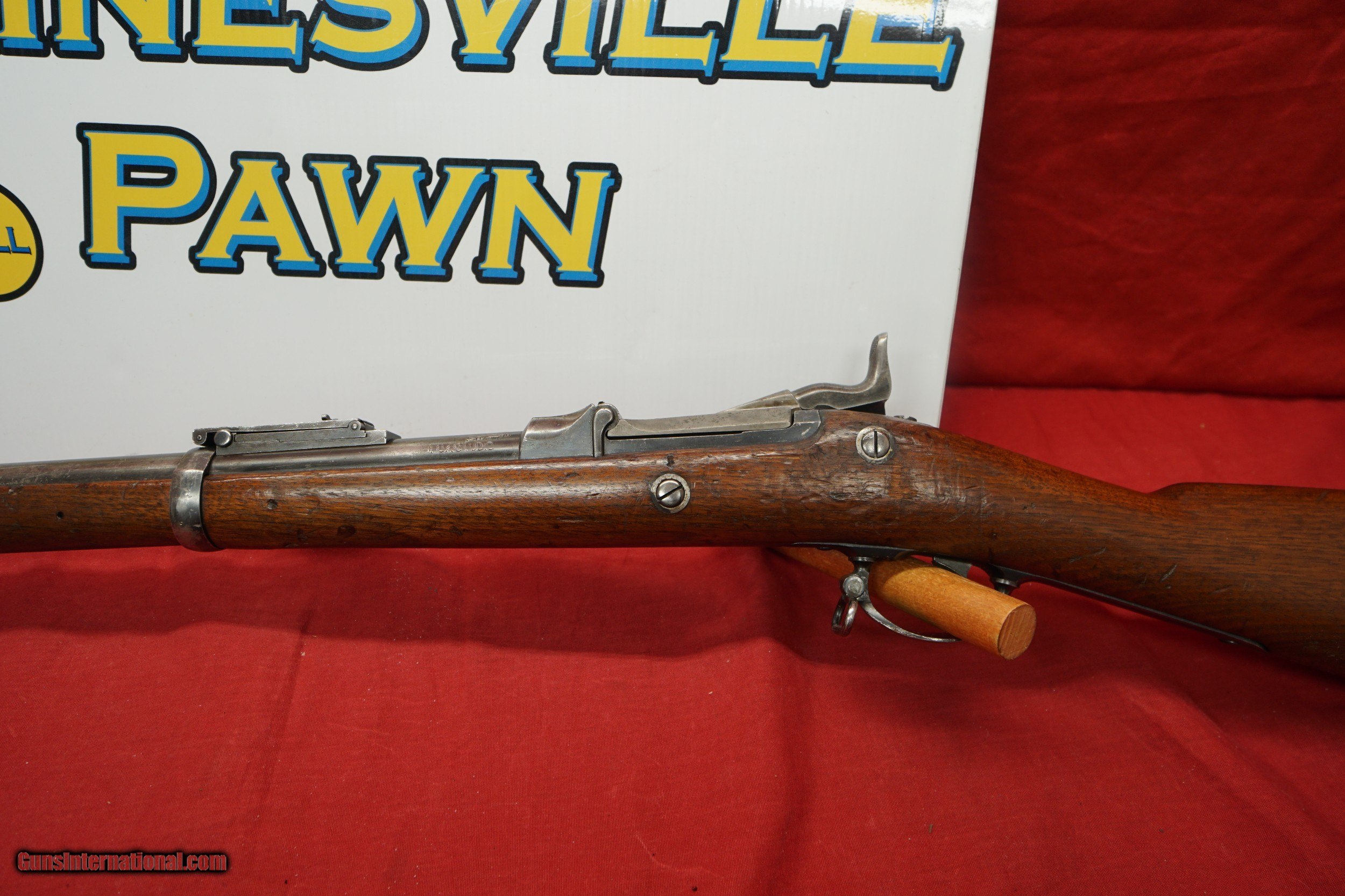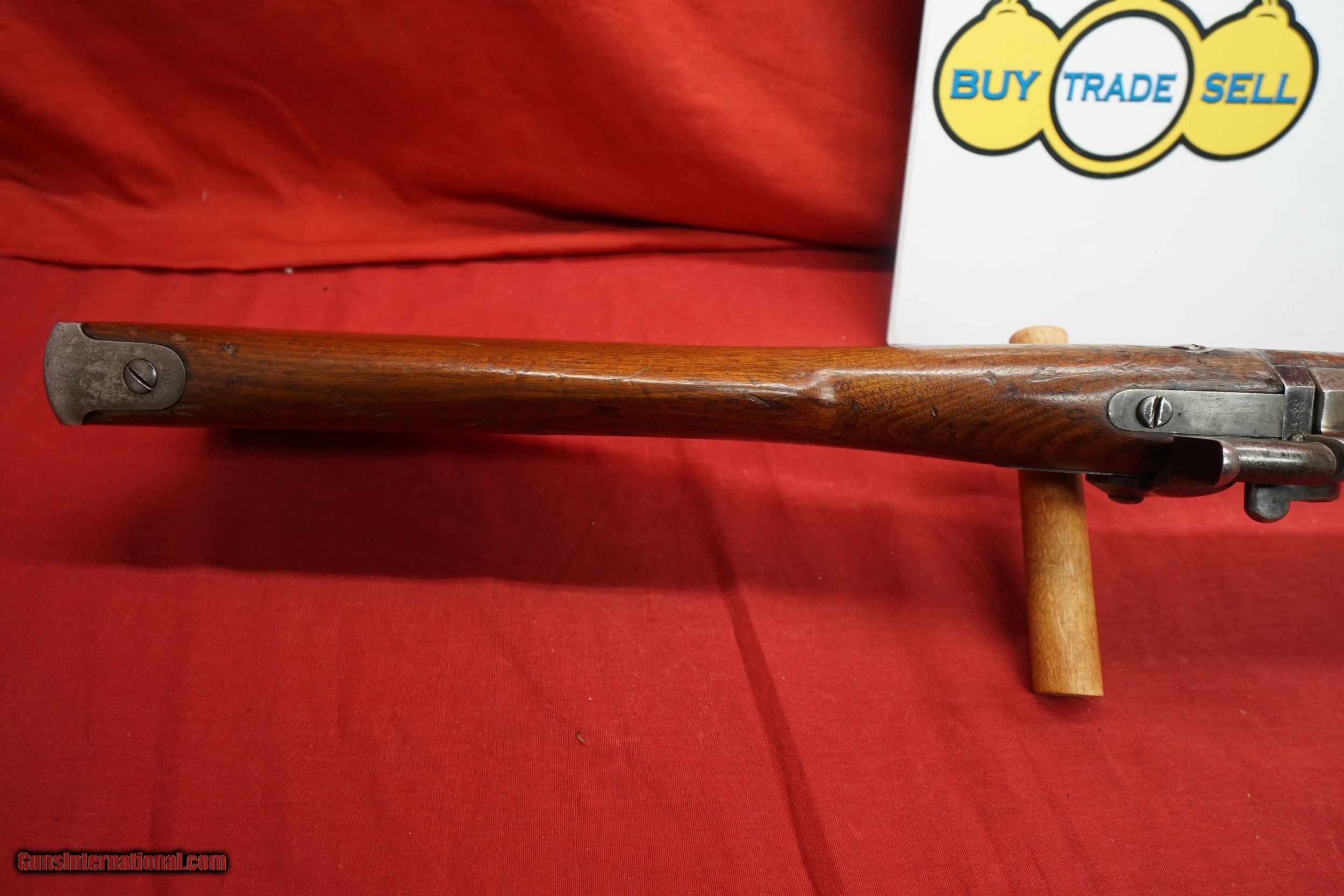 Description: Another great item from Gainesville Pawn! Up for sale is a Springfield 1884 Trapdoor. This rifle was produced in 1886. This rifle is chambered in 45-70Govt. This rifle is in Very good condition with some signs of wear present. The bore of this rifle is semi-bright and the rifling is dull. This gun belonged to Fox Studios and was probally used in Movies and or TV. *Please be aware that all items are sold “AS IS”. Ask questions BEFORE buying. Feel free to call us at our store (352) 240-6452 or email us at Gainesvillepawn(at)gmail(dot)com with ANY questions. We do not accept trades or offers through through Guns International We only entertain trades and offers through our store. $65 shipping and handling. Insurance extra. We only accept USPS money orders and major credit cards for payment. 3% convenience fee for credit cards. WE collect Florida state sales tax for in state sales. Please be aware that this item is for sale in our store as well as the occasional gun show so it may be sold there at any time. We will not ship the item until you have your dealer/receiving store email us a signed copy of their FFL to gainesvillepawn(at)gmail(dot)com SOLD Curio/Relic: Yes Antique: Yes Rifle Caliber: .45-70 Government Manufacturer: Springfield Model: 1884 Serial Number: 328471 Barrel Length: 32 inches Condition: Very good Metal Condition: Very good Wood Condition: Very good Bore Condition: Very good |