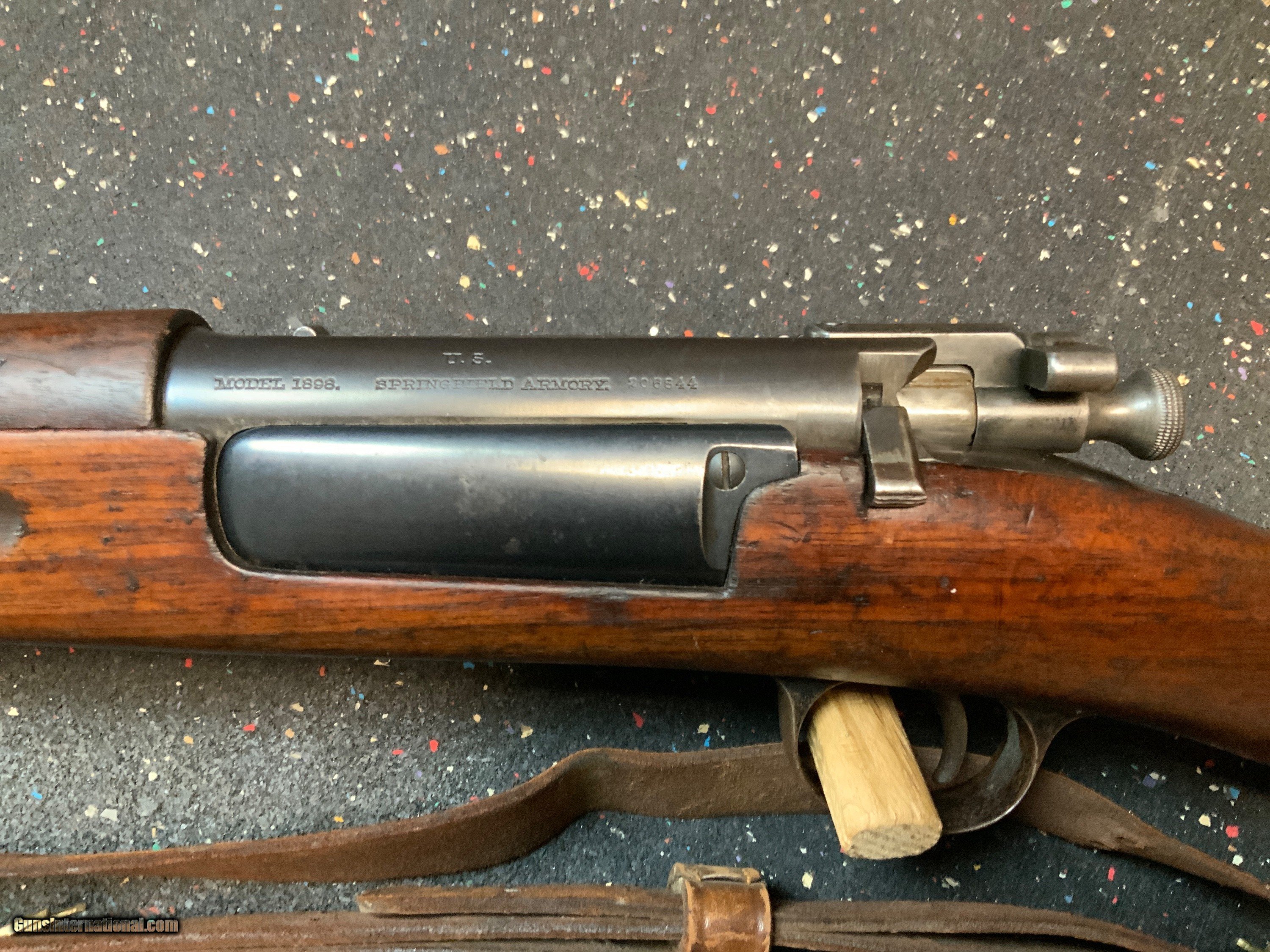 Description: Very nice what appears to be all original Springfield model 1898 30-40 Krag. Made in 1899 this gun is in amazing condition. I had it looked at by a knowledgeable military arms collector and he felt it was all original with the exception of the sling. He said it might be a later version but wasn't sure. I know little about these but of all I saw doing research this is one of the nicest. Bore is great. Pictures show what you get. Feel free to ask for more if needed. Please add $65 for shipping and insurance to your FFL or C&R. if your dealer will not accept from a private party, please add $20 to the cost of shipping to cover my dealers transfer fees. SOLD Rifle Caliber: .30-40 Krag Manufacturer: Springfield Model: 1898 Condition: Very Good Metal Condition: Very Good Wood Condition: Good Bore Condition: Excellent Manufacture Date: 1899 |