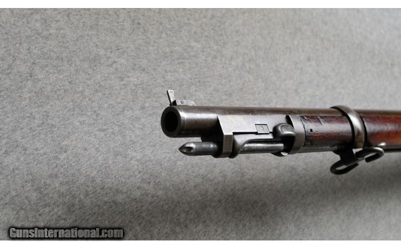 Description: This is a great example of a model 1884 Trapdoor manufactured in 1892. Typical of the 1884, it has the integratedrod bayonet/cleaning rod that can be pulled out or retracted with release springs near the muzzle. What a wonderful piece of history, these rifles saw use during the "Indian Wars" of the late 1800s and early 1900s. Don't miss your chance to have your very own. .45-70 SOLD Chambers: Single shot trapdoor action. Metal Condition: "Good, heavy patina. Wood Condition: "Good, typical dings, dents, scratches. Barrels: 32" blued. Triggers: Single blued trigger. Stock Dimensions: 13 1/2" LOP Fore End: Nearly full length stock. Butt Pad: Factory crescent butt with accessory compartment. Sights: Blade front and Buffington rear sight. Item Location: Dundee, MI |