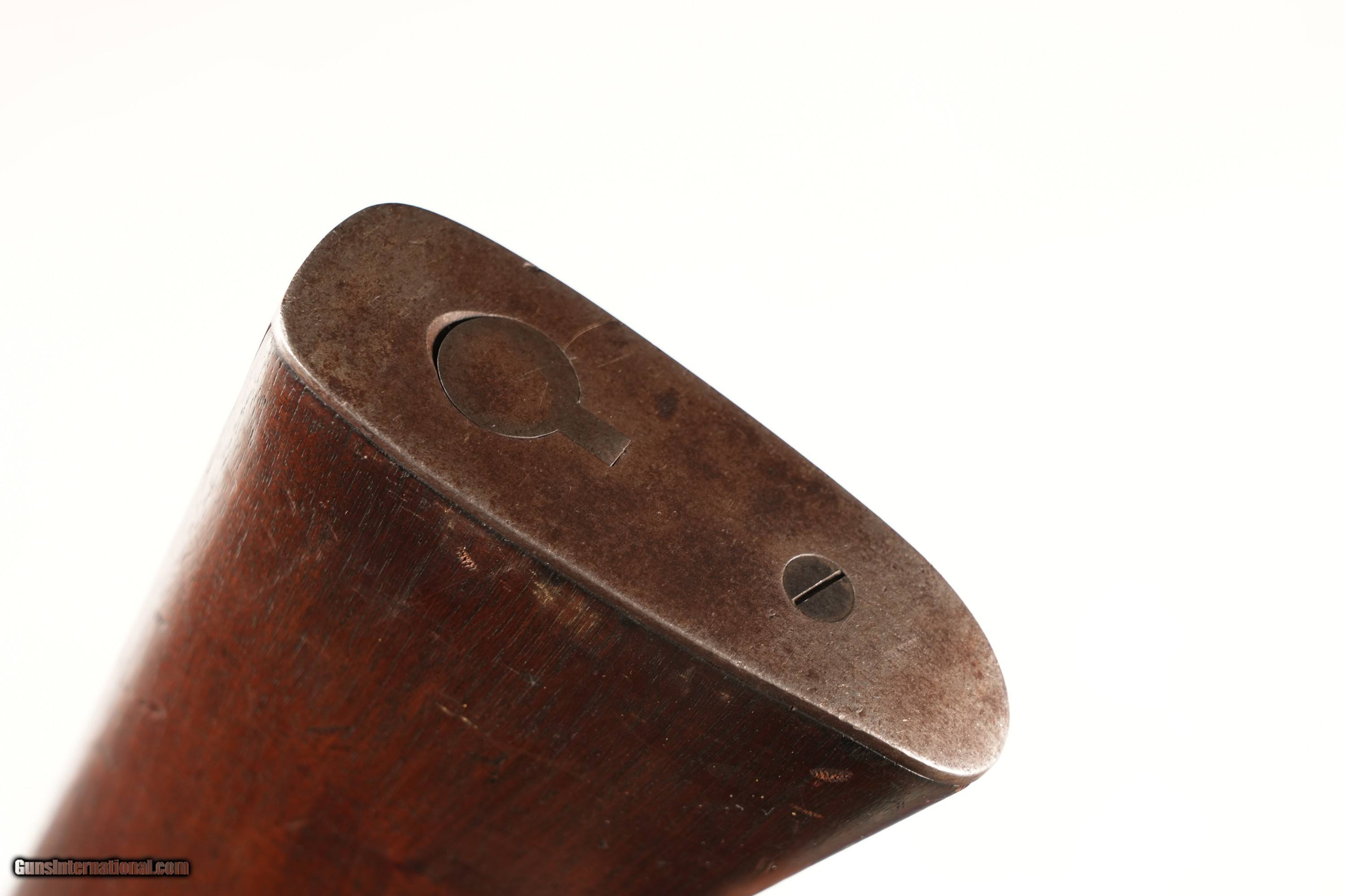 Description: Springfield Model 1898 Krag Rifle Mfd 1899 with varnished walnut stock, JSA 1899 cartouche in stock. 1901 pattern rear sight. Pattern 1905 leather sling. Brass detachable muzzle cover. condition, Very fine and bright bore. Most all blue on exterior metal. Excellent stocks with some bruises. Mechanically excellent • Free Shipping, No Credit Card Fees. • Lay-a-way available for this firearm. • 1/3 Down, a 1/3 in 30 Days, 1/3 in 60 Days. SOLD Curio/Relic: Yes Manufacturer: Springfield Armory Model: 1898 Serial Number: 232994 Barrel Length: 30 |
