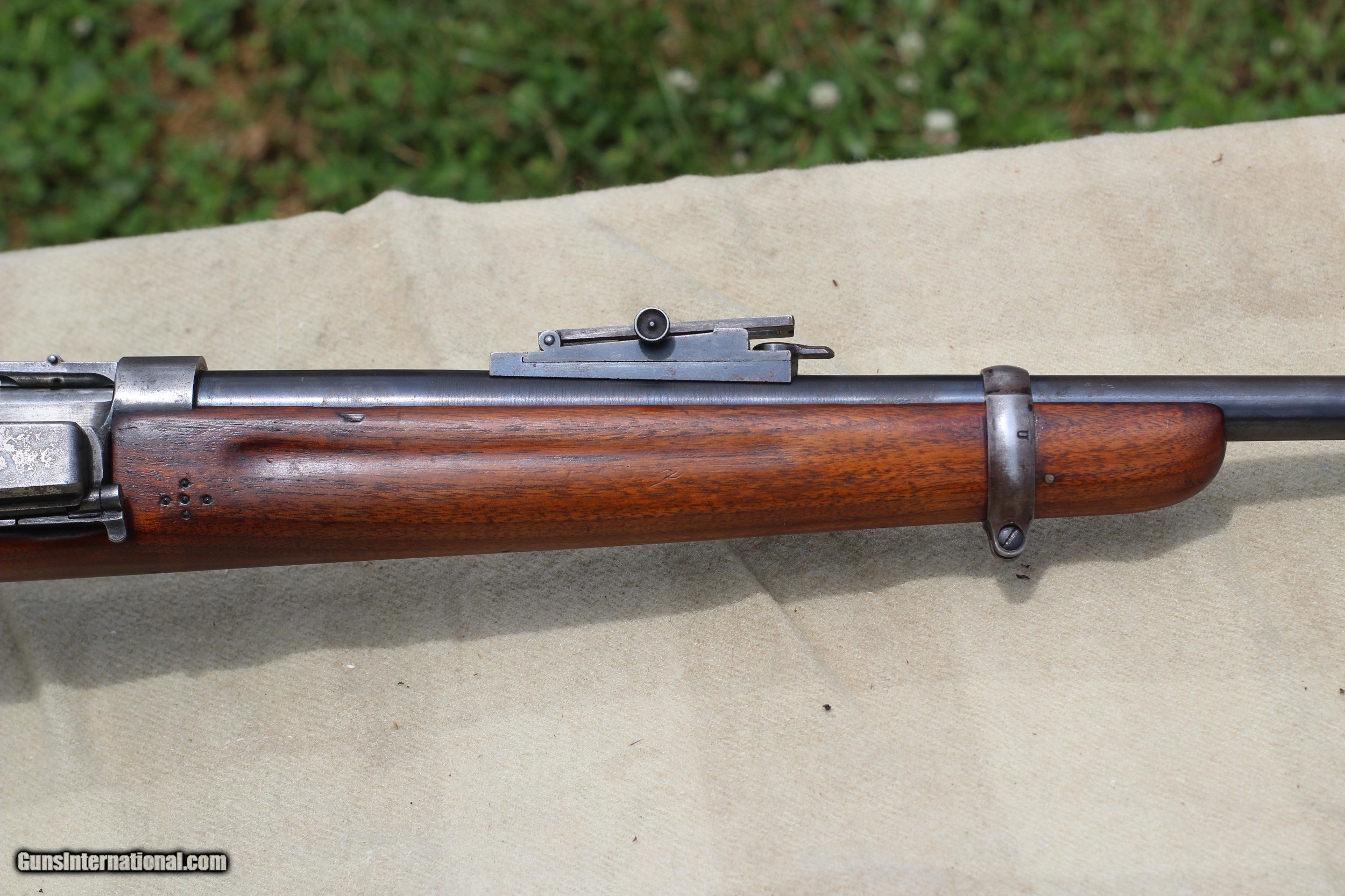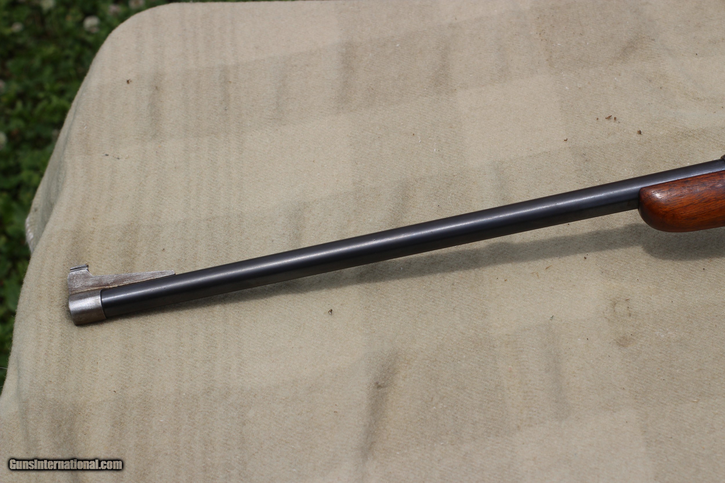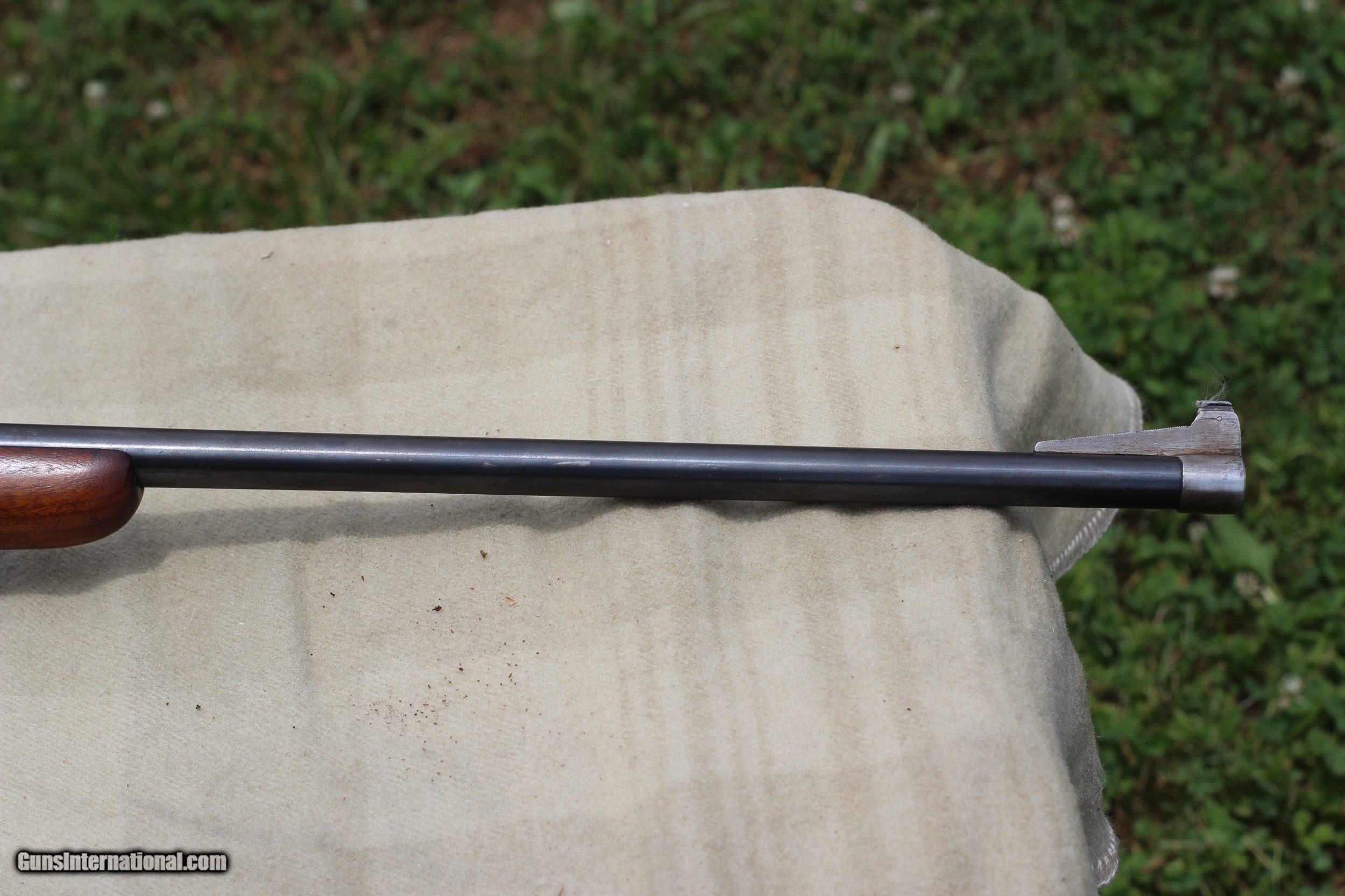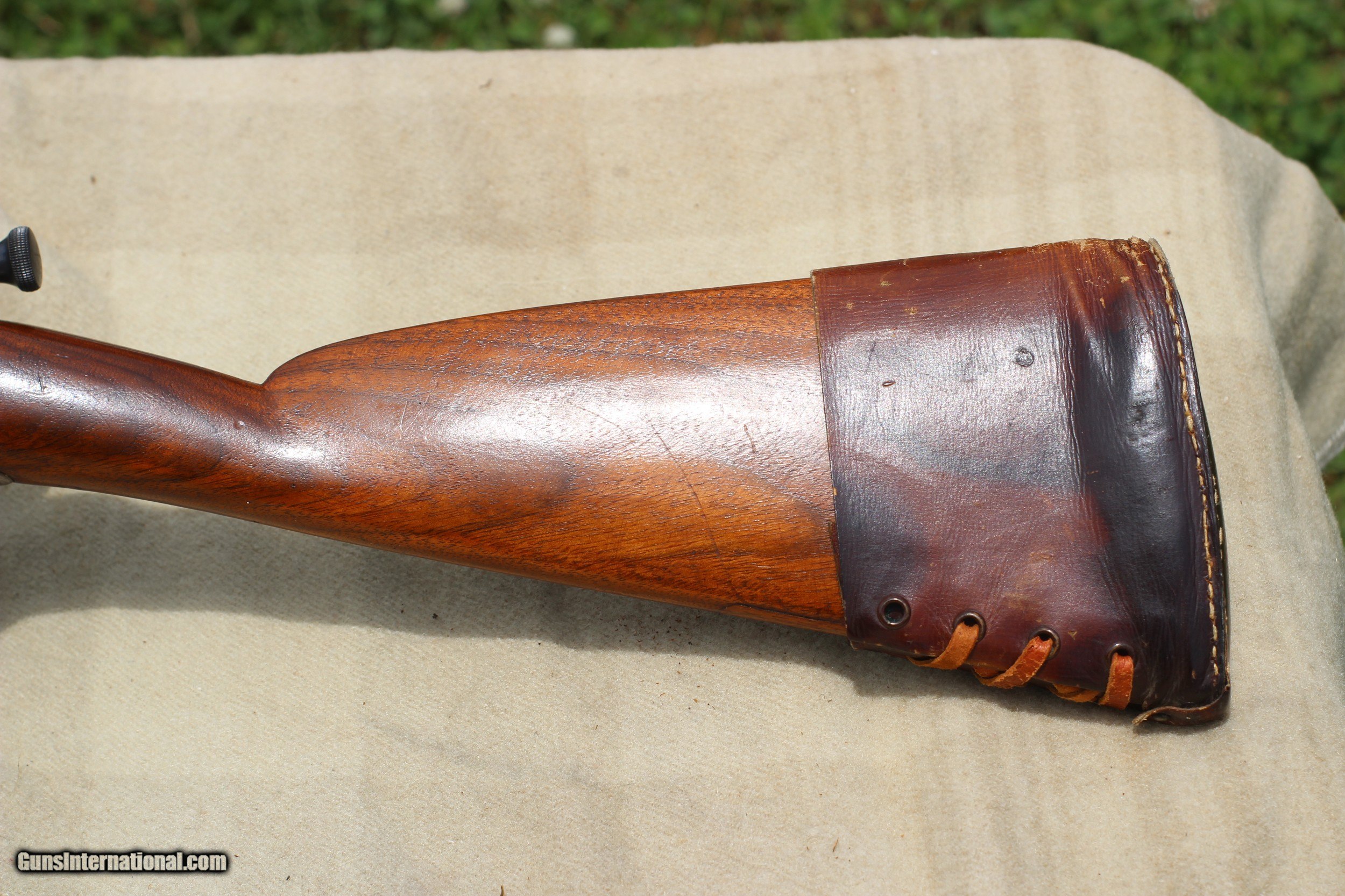 Description: Serial # 395xxx 25 " cut down barrel with original rear sight , & custom front sight Excellent bore Shortened factory stock Period peepsight added to rear of receiver 85 % barrel blue Oxidized silver receiver $ 479 + Shipping SOLD |