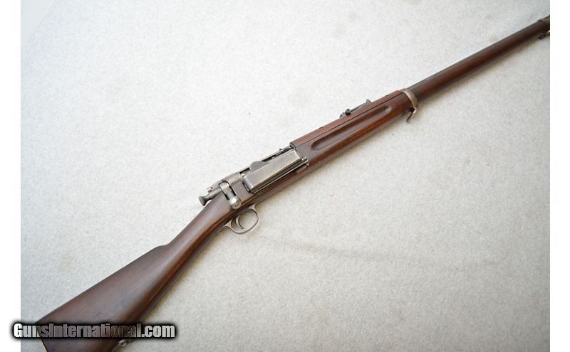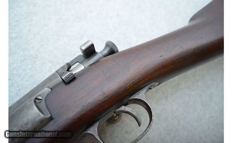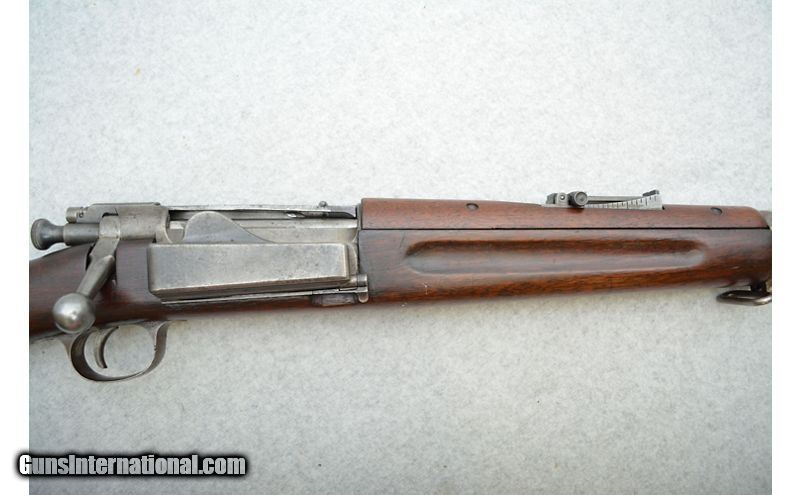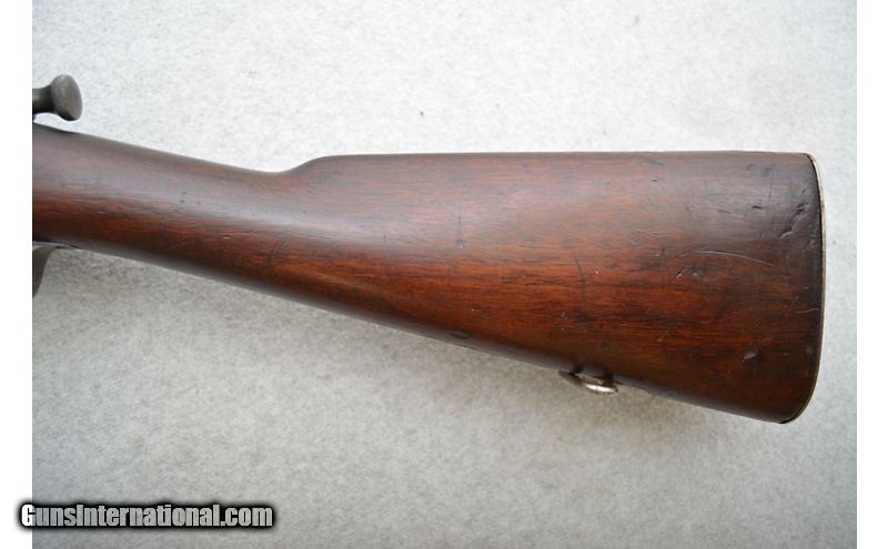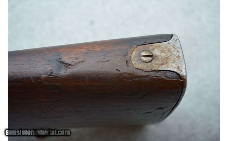 Description: Rifle is in good condition for its age. A large amount of the finish on the receiver is gone and the metal has some areas that feel a bit rough. Bluing on the barrel looks to have been replaced with a dark patina. Metal has a few rough spots but no apparent active rust. The stock has fared less well but is still in decent shape. The entirety of the furniture is adorned with nicks, scratches, and dents of all levels of severity. While there do not appear to be any cracks, the comb of the stock near the rear has a large patch or repair work (see pictures). Sources seem to indicate 1902 as the year of manufacture. The stock cartouche is a little hard to make out but seems to collaborate the date. .30-40 Krag SOLD Curio/Relic: Yes Chambers: Bolt action fed from a side loading internal magazine. Metal Condition: Fair to good. Wood Condition: Fair to good. Bore Condition: Good for its age. Bore is dark but the rifling still has decent definition. Barrels: 30" Blued. Triggers: Narrow metal with smooth surface. Stock Dimensions: Smooth hardwood with 13½" LOP. Fore End: Hardwood with finger grooves. Butt Pad: Metal plate with cleaning kit door. Weight: 9lbs Sights: Fixed front blade with elevation adjustable rear ladder. Chokes: N/A Item Location: Green Bay |